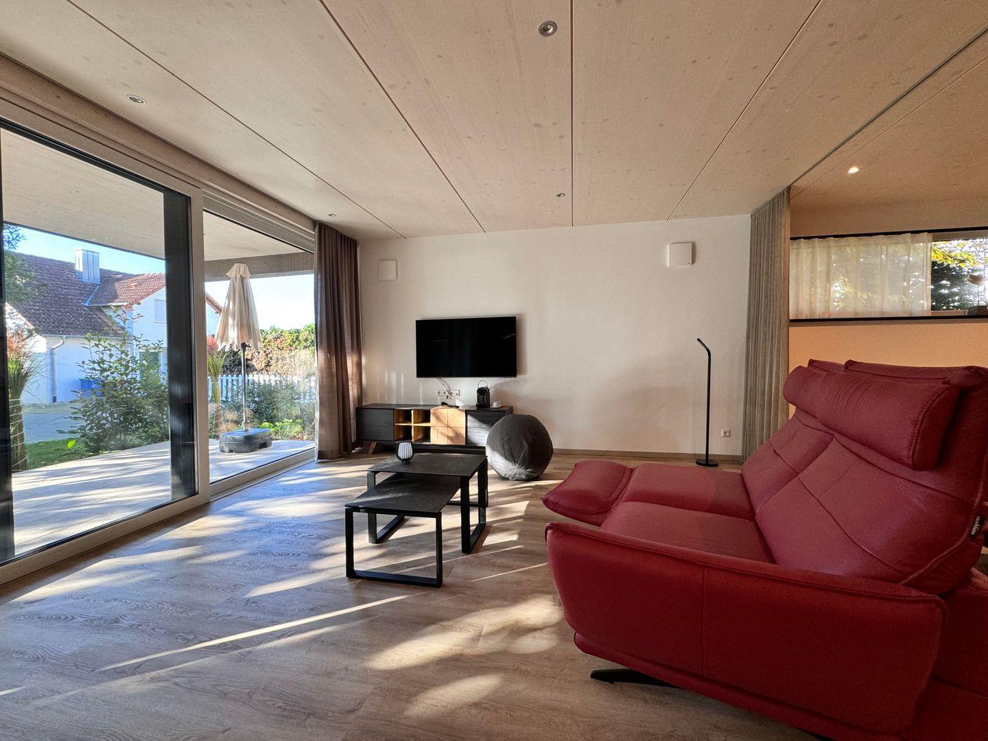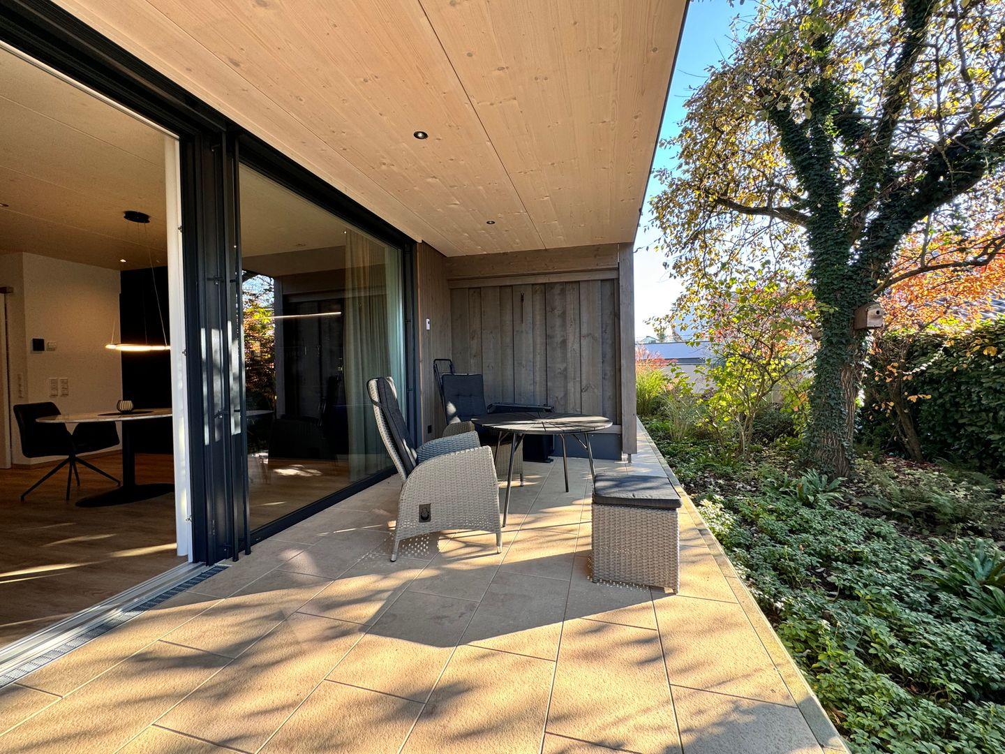 Das offene 1-Zimmer-Appartement überzeugt durch geradliniges schlichtes Design. Ausgesuchte Möbel und Textilien sorgen für eine harmonische Atmosphäre zum Wohlfühlen. Die Ausstattung lässt keine Wünsche offen. Unmittelbar in der Nähe verläuft der Bodensee-Radrund- sowie Wanderweg. Nach einem erlebnisreichen Tag haben Sie die Wahl zwischen einem Picknick zum Sonnenuntergang am traumhaften Naturstrand (300 m) oder einem gemütlichen Abend auf Ihrer großzügigen Terrasse/Balkon. Ihr PKW und E-Bike parkt überdacht im Carport.