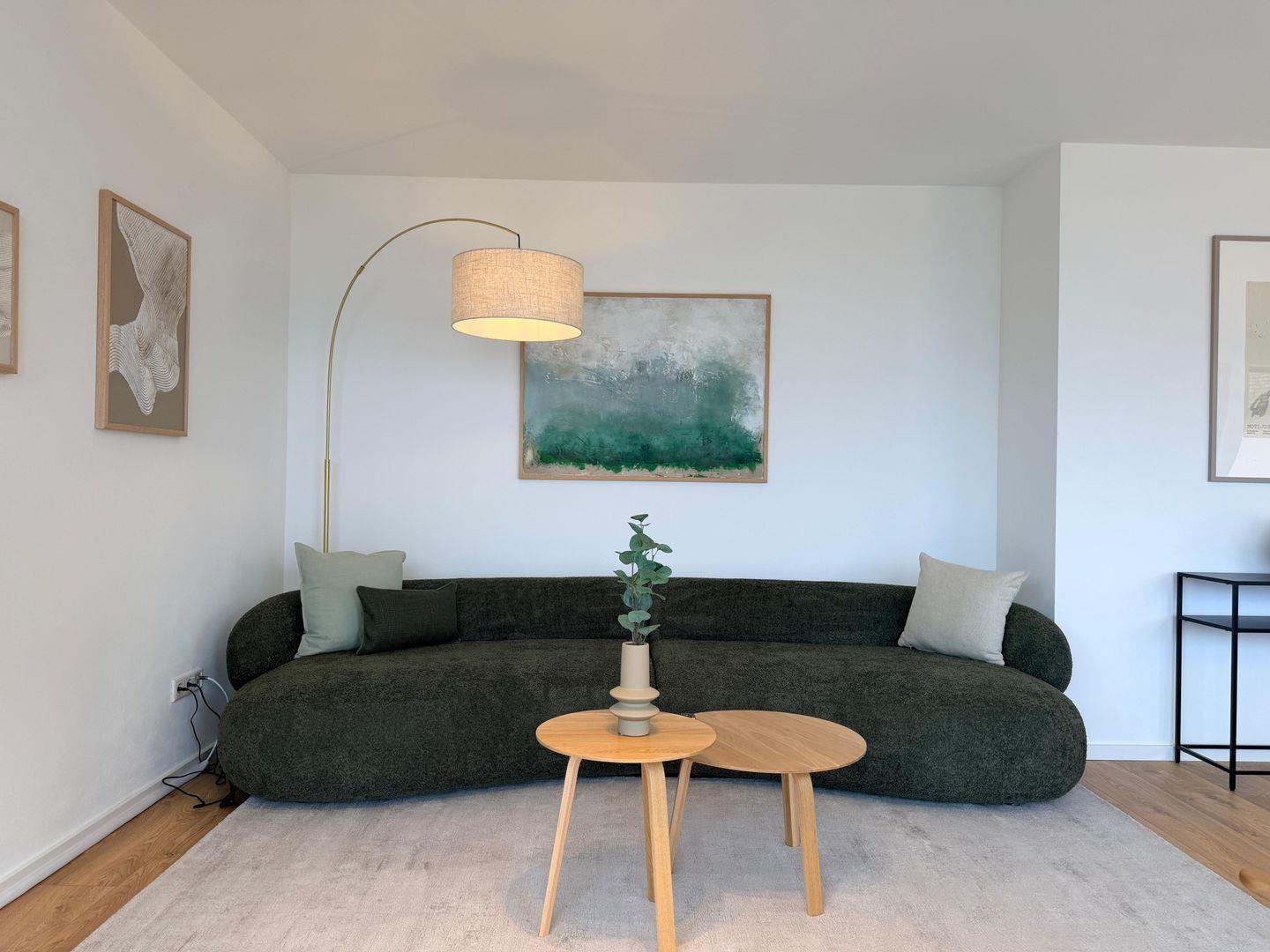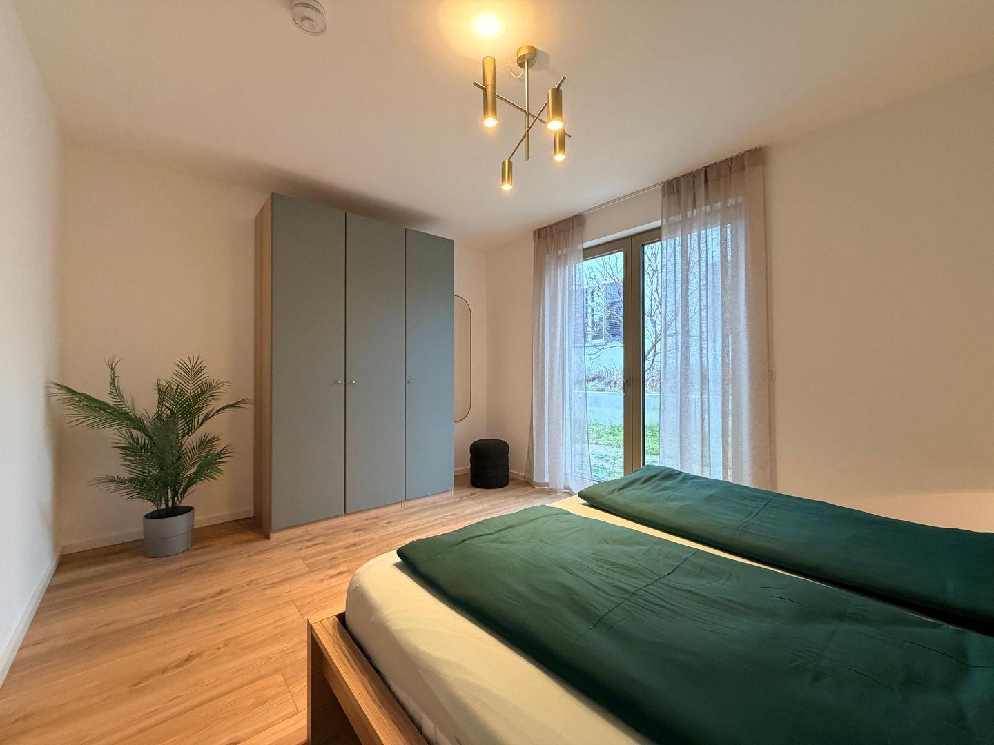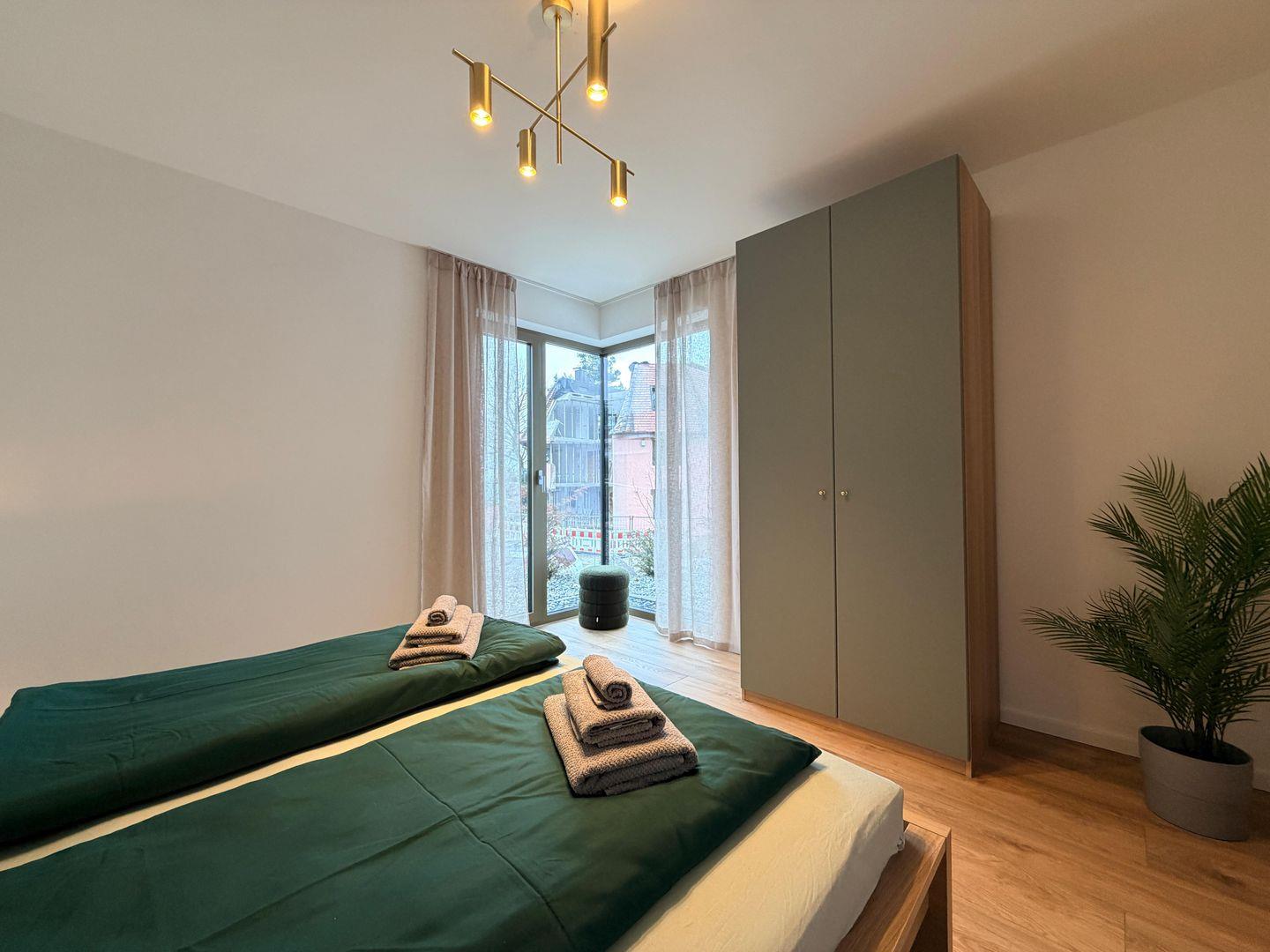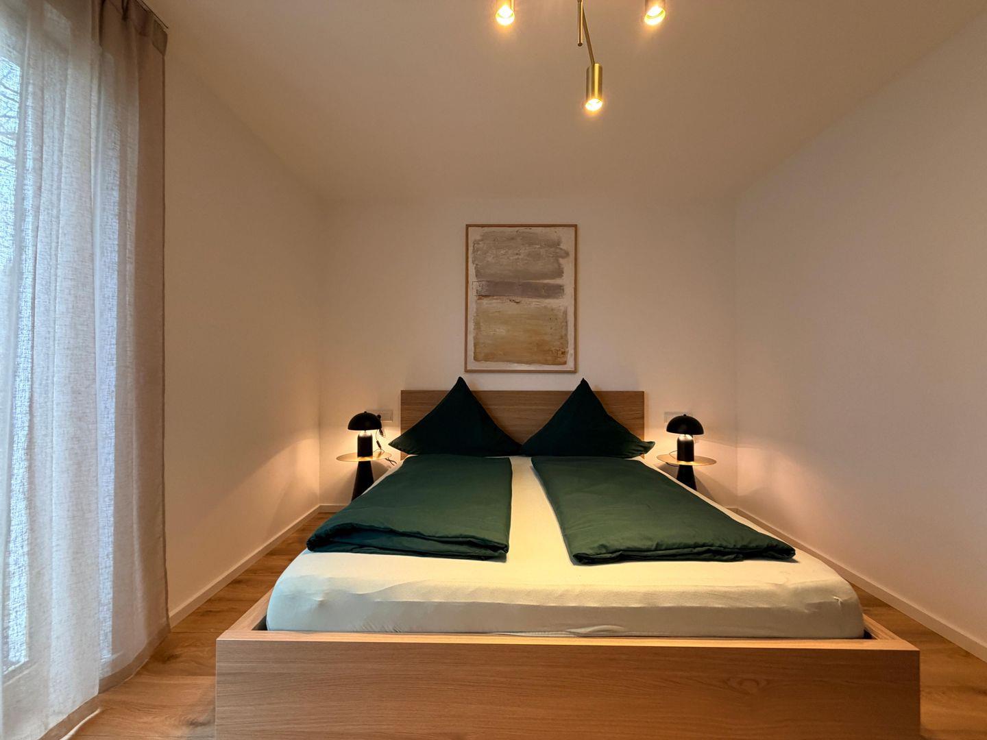 Die Wohnung verfügt über zwei komfortable Schlafzimmer sowie ein stilvolles Badezimmer mit bodengleicher Dusche. Hochwertige Materialien, Fußbodenheizung und ein durchdachtes Einrichtungskonzept sorgen für ein luxuriöses und gleichzeitig entspanntes Wohngefühl.