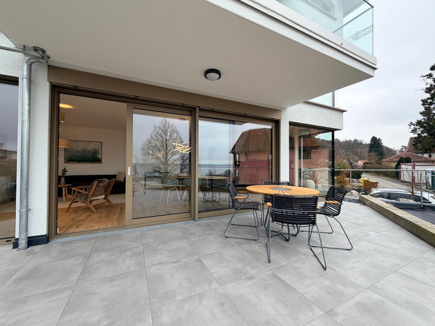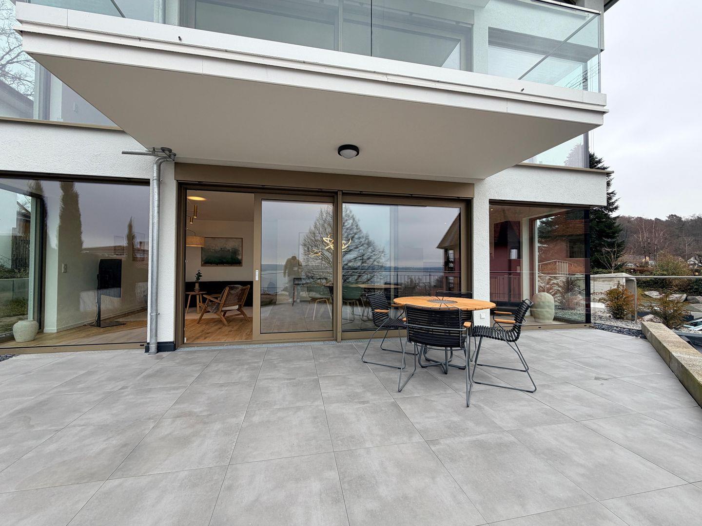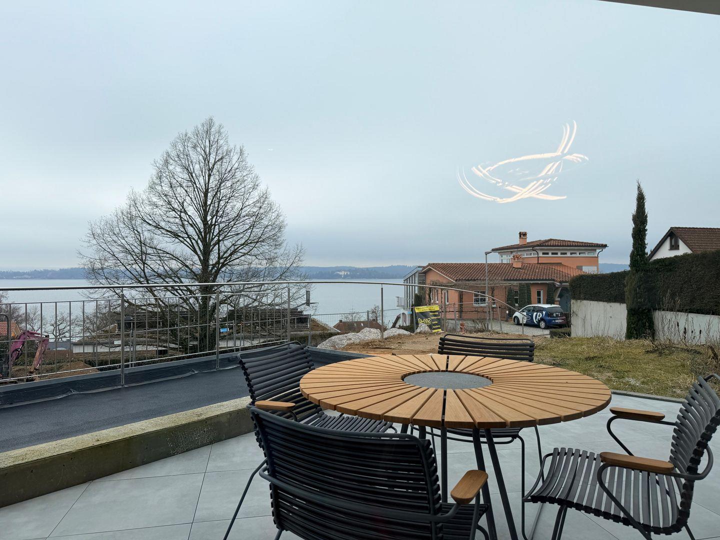 Ein echtes Highlight ist die große Terrasse mit wunderschönem Blick auf den Bodensee. Hier können Sie den Tag bei einem Frühstück im Freien beginnen oder den Abend bei einem Glas Wein ausklingen lassen.