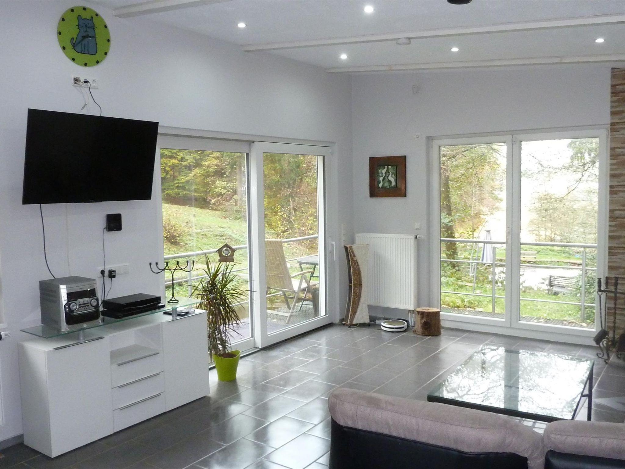 2016 erbautes Naturhäuschen, barrierefrei, mit Wohn-/Essbereich, Einbauküche mit Cerankochfeld, Backofen, Spülmaschine, WLAN, Drucker für Laptop, TV, Stereoanlage, Tresor, Schlafzimmer mit Boxspringbett, Bad mit Dusche + Fußbodenheizung, Gäste WC, Abstellraum mit Waschmaschine und zusätzlichem Gefrierschrank, Holzofen, CO-Warner, Rauchmelder, Alarmanlage, umlaufender Balkon über dem Wasser.
