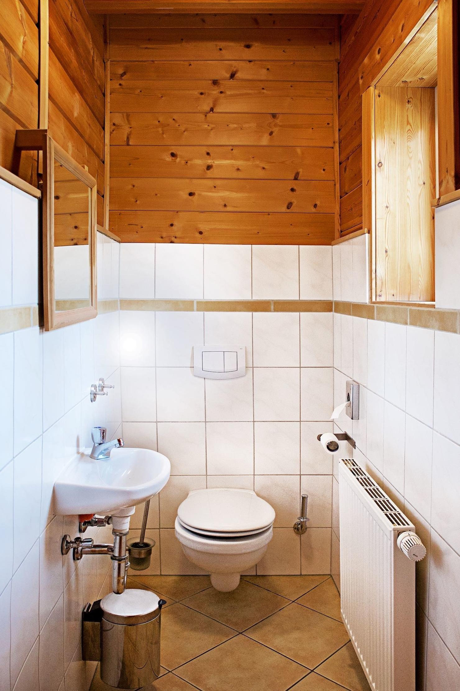 Unten schlafen meist die Kinder, oben die Erwachsenen. Praktisch ist das separate WC. Auch die Terrasse ist sehr großzügig und führt direkt auf unsere beliebte, große Spielwiese.