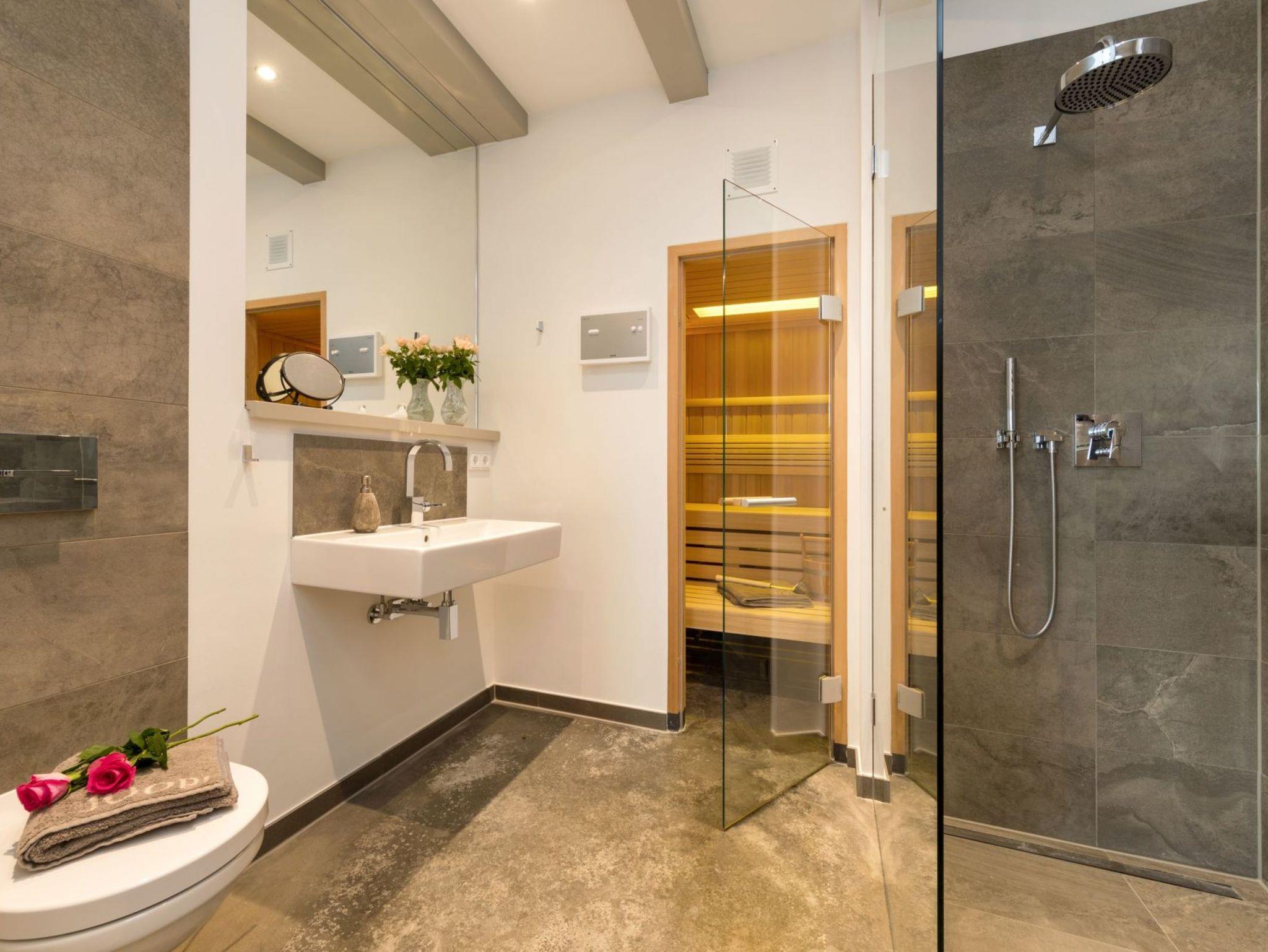 2 Bäder mit schwellenlosem Duscheinstieg und Rainshower-Kopfbrause, Sauna,