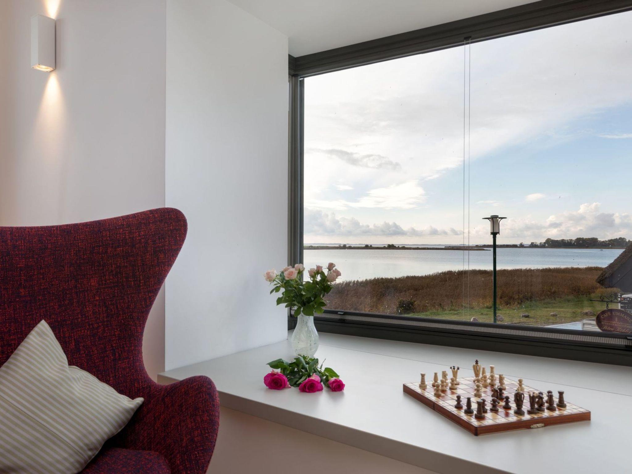 Vor allem aber hat die Aussicht vom Wohnzimmer aus ihren Reiz, denn dort kann man seinen Blick über den Ausläufer der Ostsee schweifen lassen. Der Balkon auf der Westseite lädt darüber hinaus dazu ein, die Sonnenstrahlen ganz entspannt zu genießen.