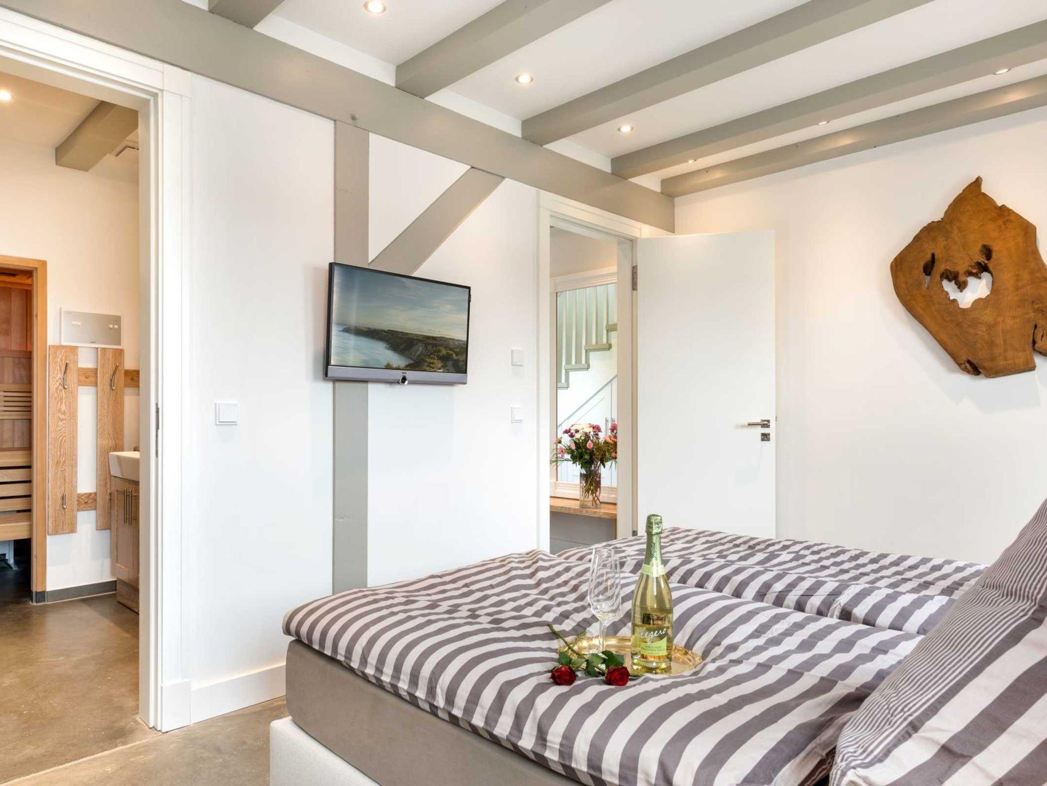 Doch auch auf die „inneren Werte“ kommt es an und diese vier Ferienhäuser mit 110 bis 130 Quadratmeter haben auf zwei Etagen eine ganze Menge zu bieten: Angefangen von den zwei Schlafzimmern und zwei Bädern mit bodentiefen Duschen bis hin zu einer Sauna und einem Kamin, womit der Aufenthalt auf Ummanz zu jeder Jahreszeit seinen Reiz bekommt. Im Sommer genießt man die sanfte Brise, im Winter macht man es sich abends kuschelig und gemütlich.