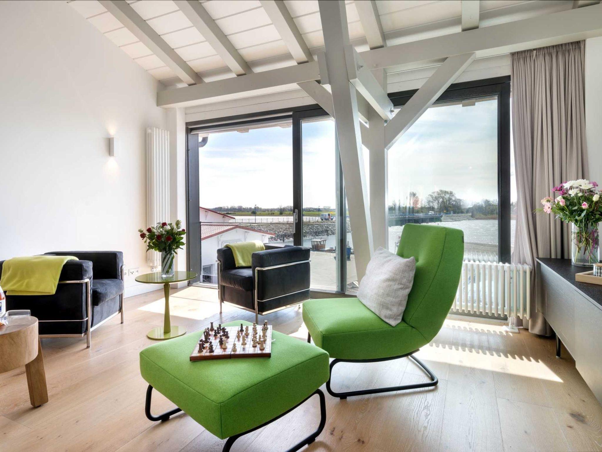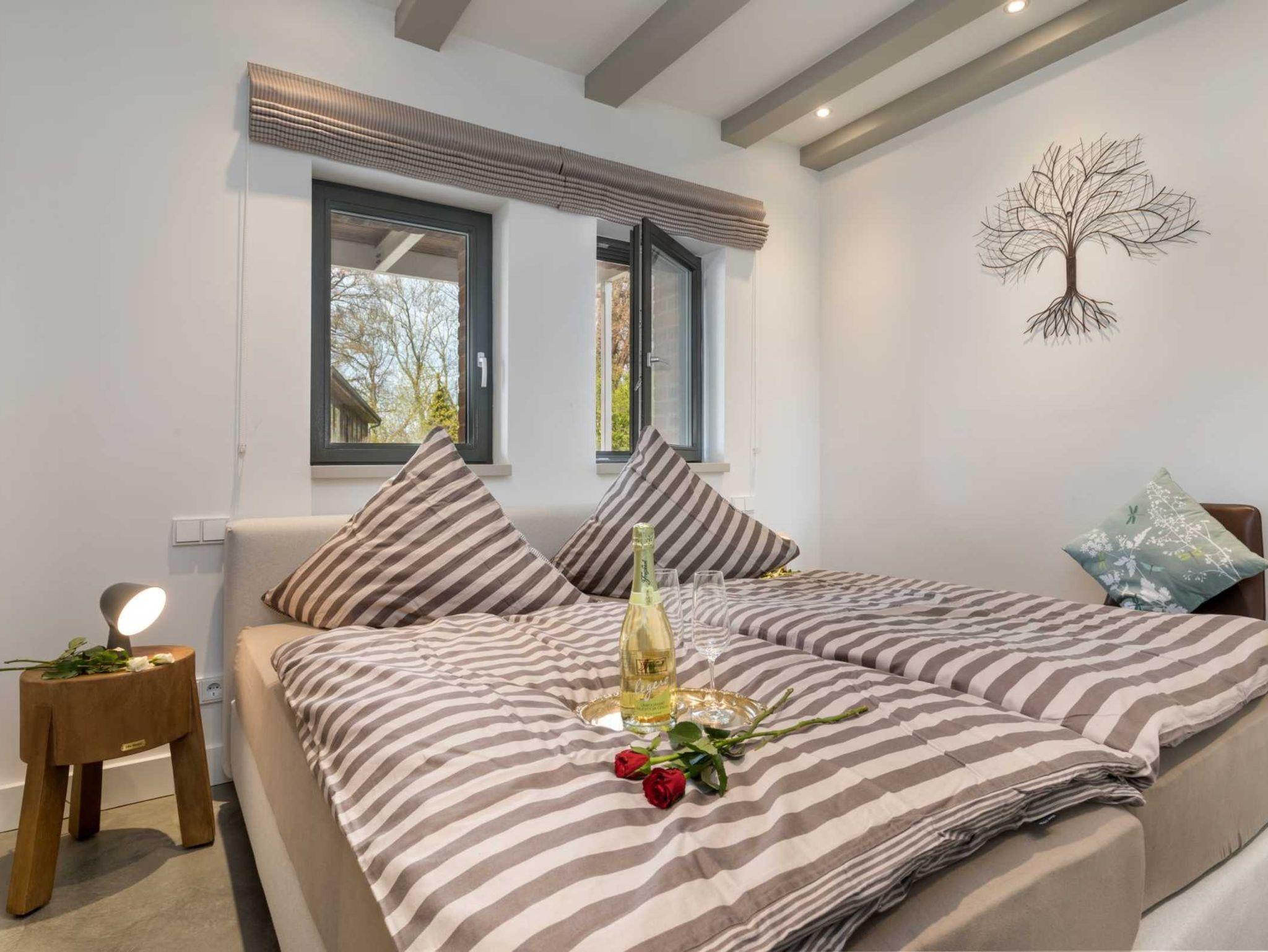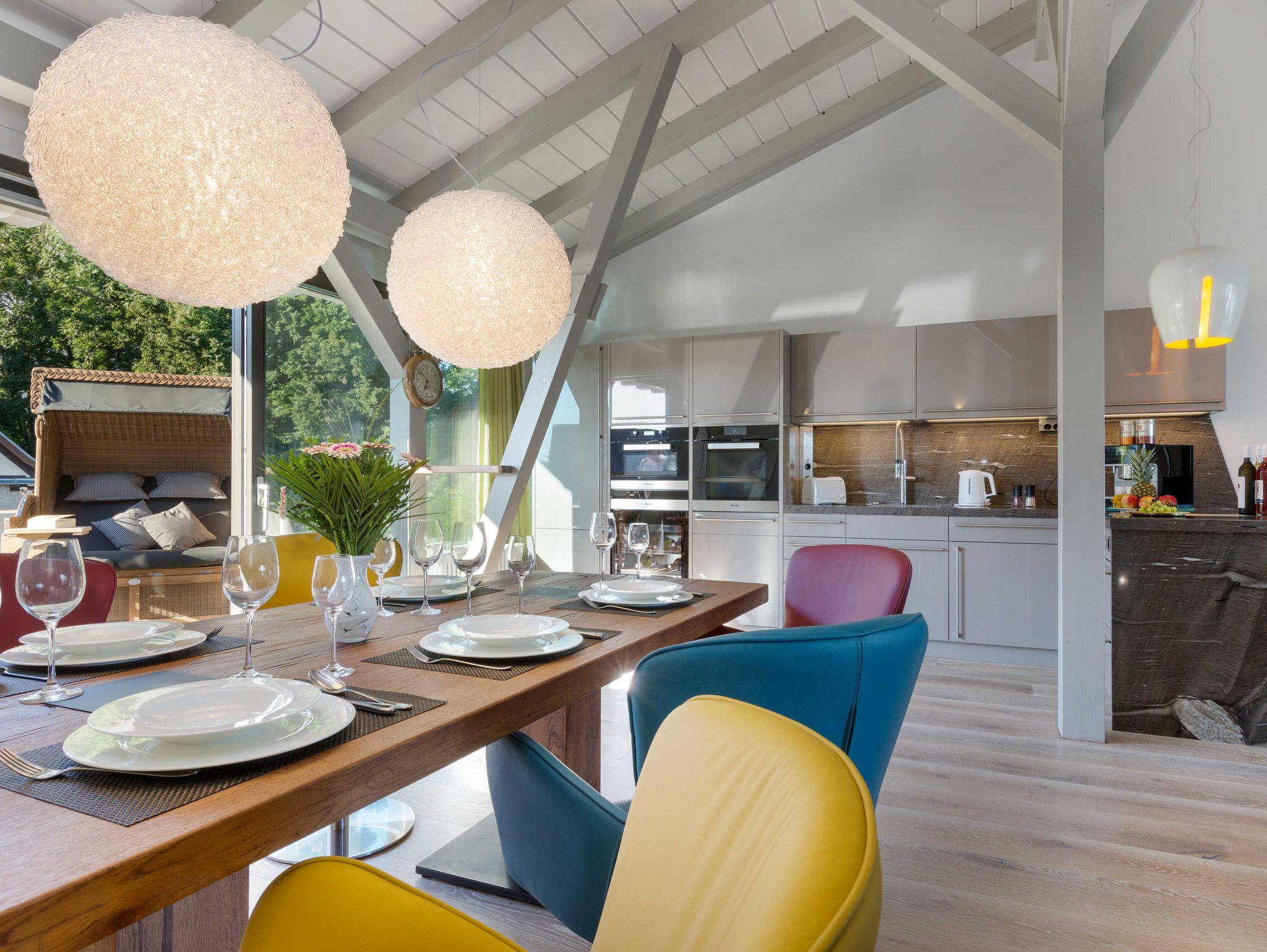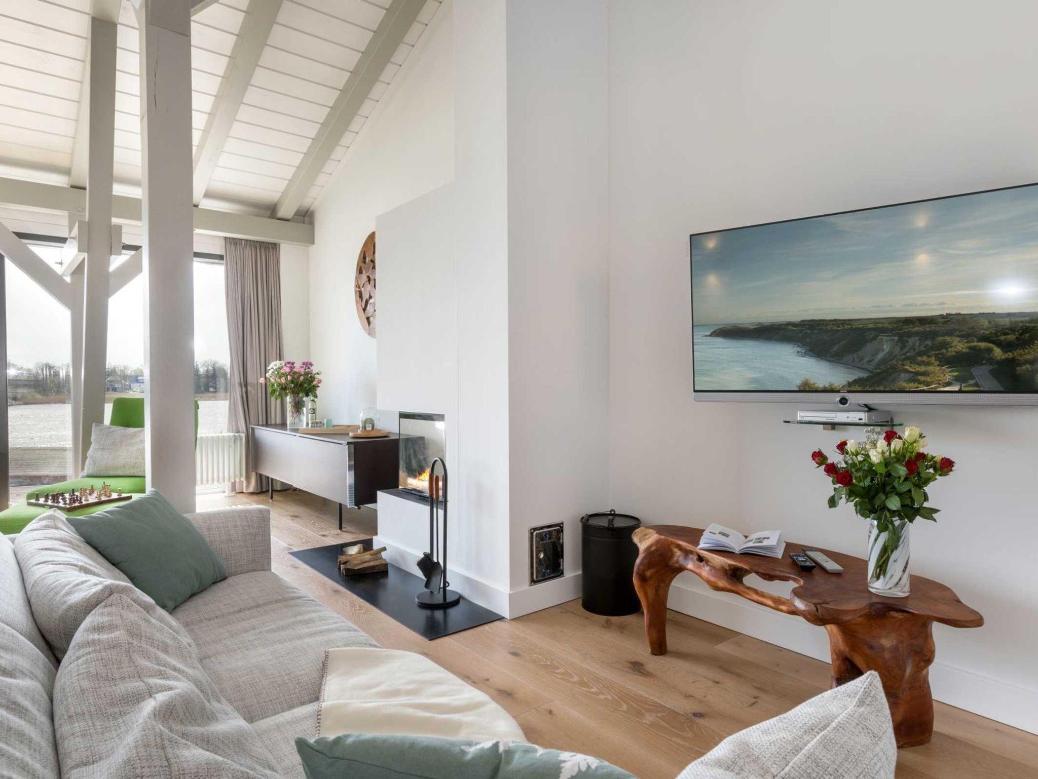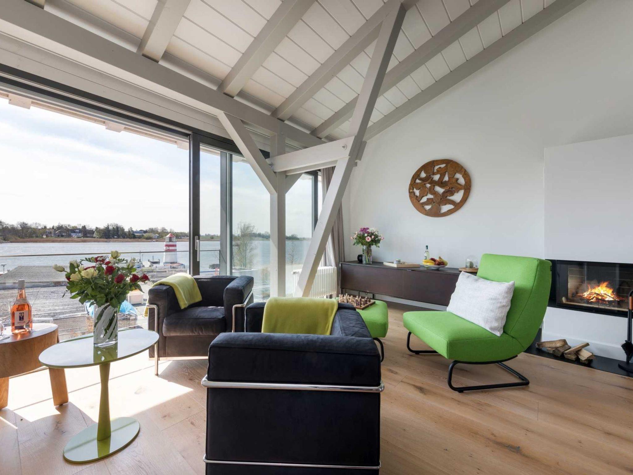Vor allem aber hat die Aussicht vom Wohnzimmer aus ihren Reiz, denn dort kann man seinen Blick über den Ausläufer der Ostsee schweifen lassen. Der Balkon auf der Westseite lädt darüber hinaus dazu ein, die Sonnenstrahlen ganz entspannt zu genießen.