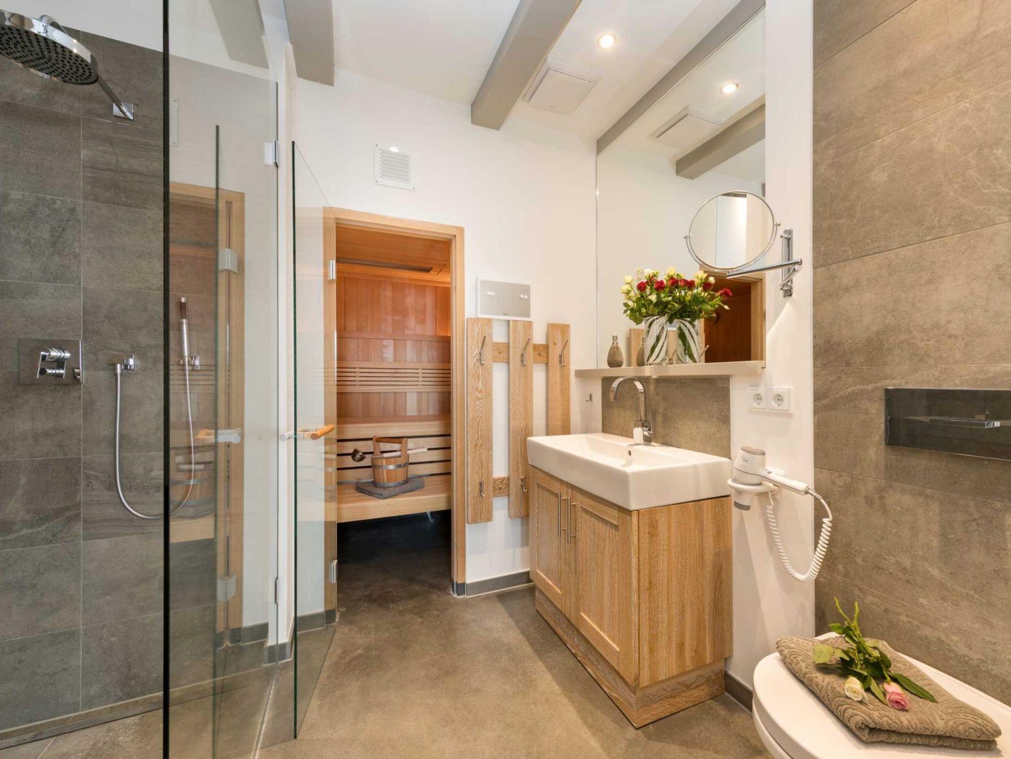 2 Bäder mit schwellenlosem Duscheinstieg und Rainshower-Kopfbrause, Sauna,