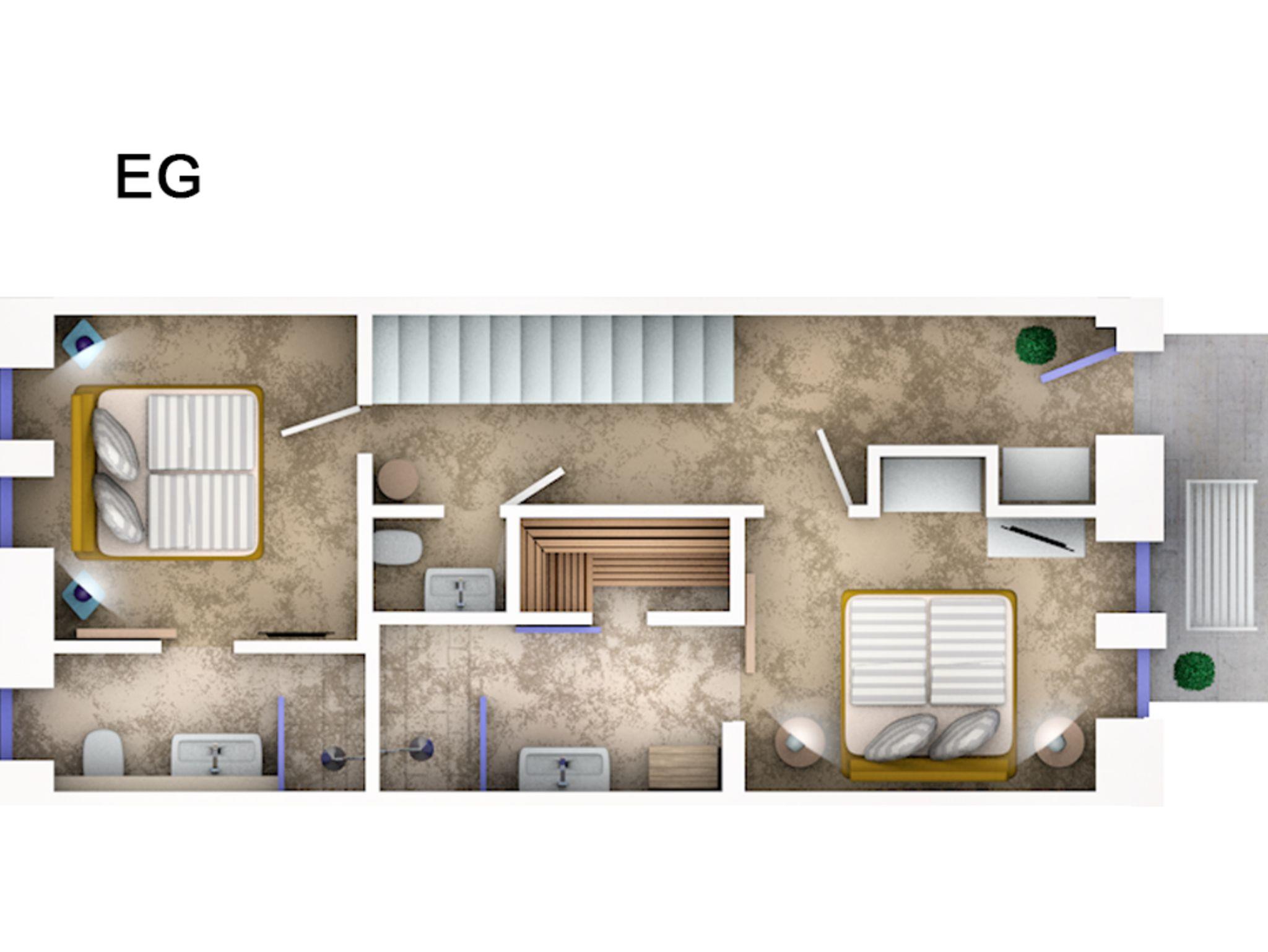 2 Bäder mit schwellenlosem Duscheinstieg und Rainshower-Kopfbrause, Sauna,