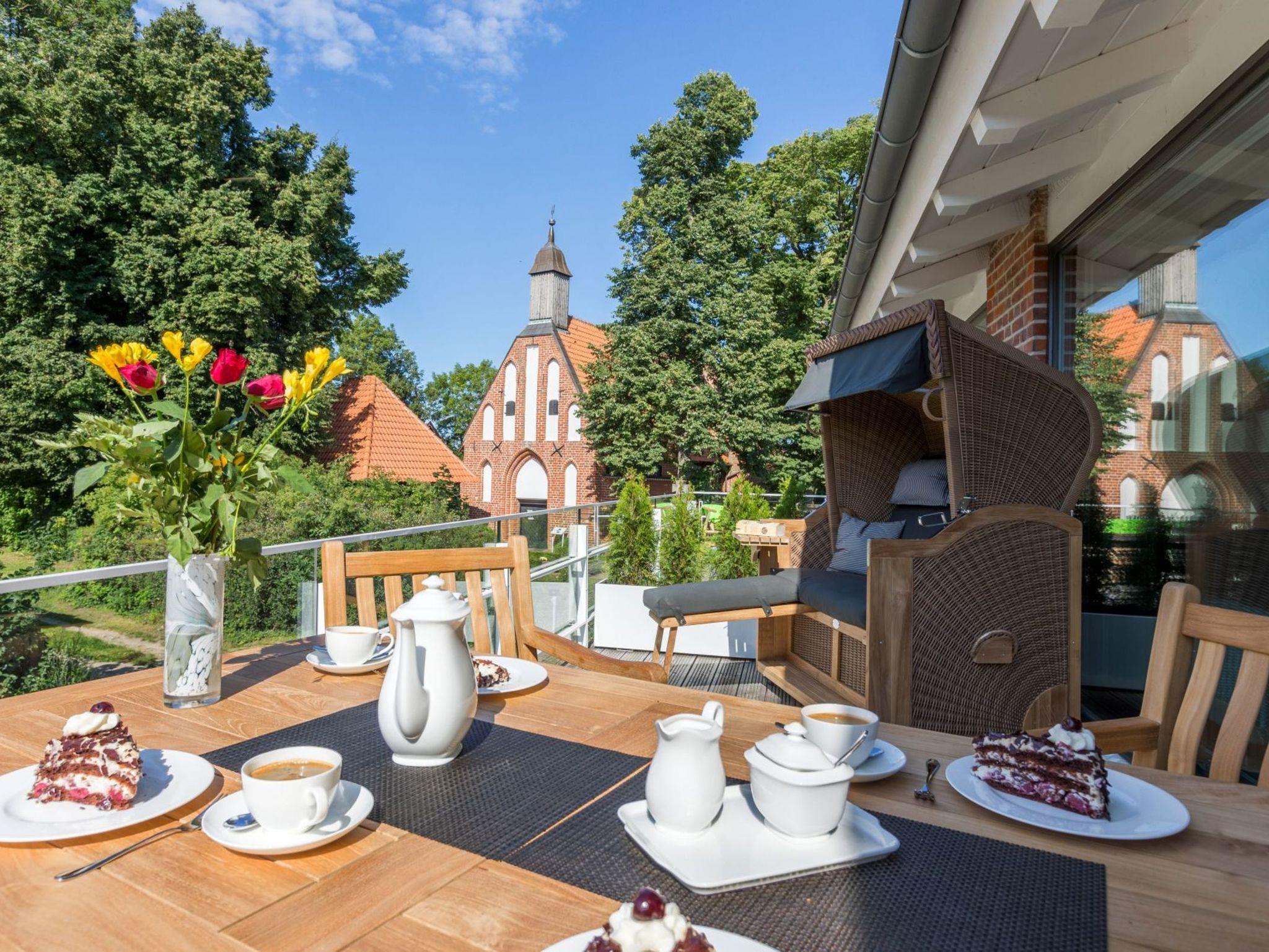 Vor allem aber hat die Aussicht vom Wohnzimmer aus ihren Reiz, denn dort kann man seinen Blick über den Ausläufer der Ostsee schweifen lassen. Der Balkon auf der Westseite lädt darüber hinaus dazu ein, die Sonnenstrahlen ganz entspannt zu genießen.