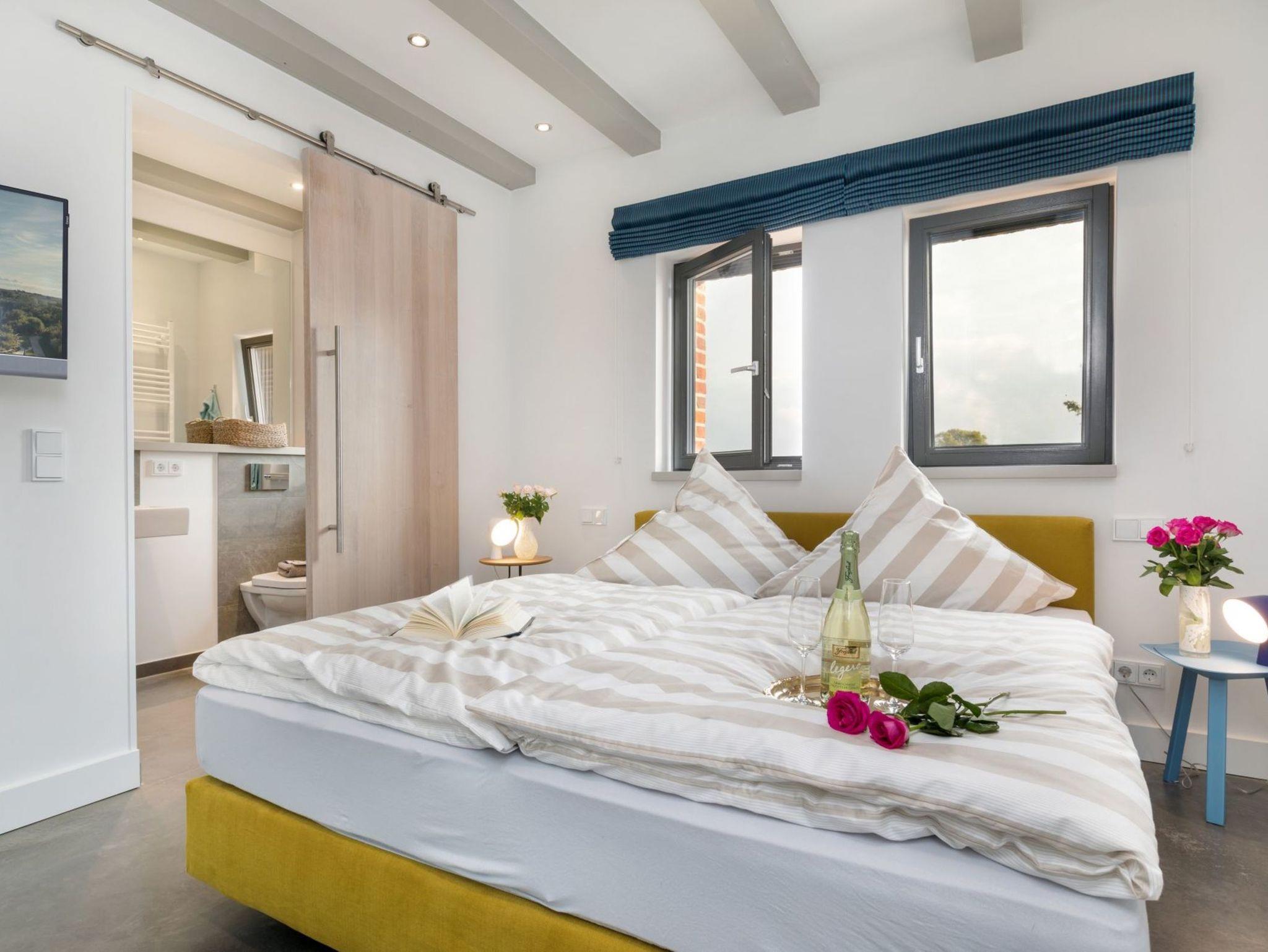 Doch auch auf die „inneren Werte“ kommt es an und diese vier Ferienhäuser mit 110 bis 130 Quadratmeter haben auf zwei Etagen eine ganze Menge zu bieten: Angefangen von den zwei Schlafzimmern und zwei Bädern mit bodentiefen Duschen bis hin zu einer Sauna und einem Kamin, womit der Aufenthalt auf Ummanz zu jeder Jahreszeit seinen Reiz bekommt. Im Sommer genießt man die sanfte Brise, im Winter macht man es sich abends kuschelig und gemütlich.