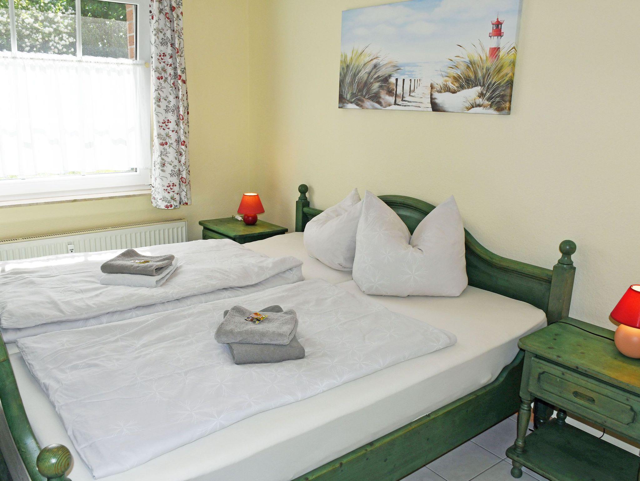 Die Ferienwohnung verfügt über ein großes Wohnzimmer mit Küchenzeile, zwei Schlafzimmer mit Insektenschutz sowie ein Badezimmer mit Dusche/WC und eine schöne Sonnenterrasse mit Strandkorb, die zum Frühstück im Sonnenschein oder zum Grillen oder einfach zum Entspannen einlädt. Ein kostenfreier WLAN-Anschluss steht Ihnen zur Verfügung! Weitere Angaben finden Sie bei der Detailbeschreibung der Wohnung. Gegen Aufpreis sind bei Ihrer Anreise die Betten bereits mit Bettwäsche bezogen und frische Handtücher liegen bereit. Bitte dann ggf. mitbuchen.