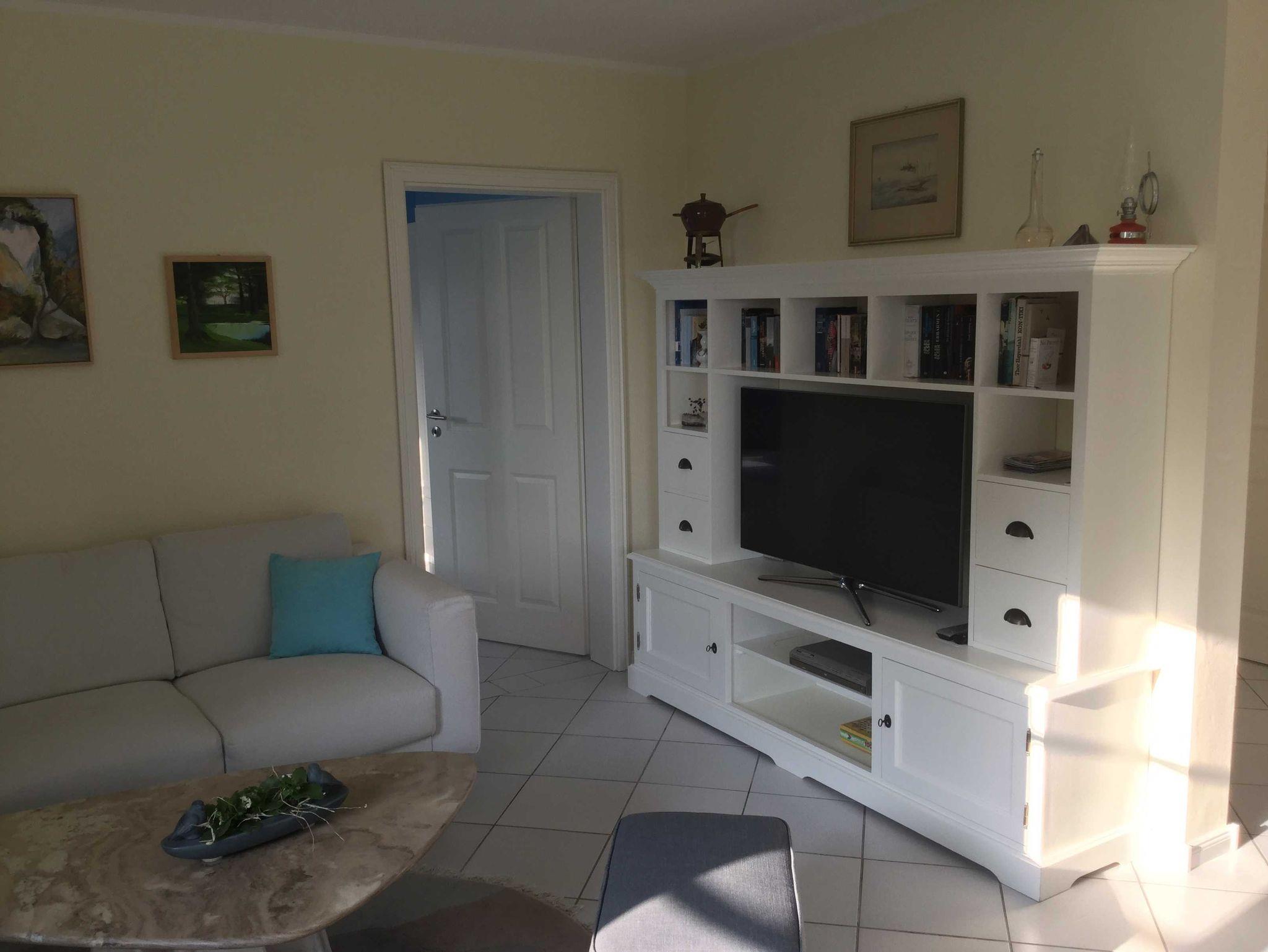 Ausstattung der Fewo: Wohnbereich mit gemütlicher Sitzecke mit Kamin, Esstisch, Sat-TV, Radio, Schlafzimmer mit Doppelbett, Bad mit Dusche, Waschbecken und WC, Küchenzeile im Wohnbereich mit E-Herd, Cerankochfeld, Kühlschrank, Geschirrspüler, Kaffeemaschine/Wasserkocher, Toaster, kompl. Geschirr, Waschmaschine.