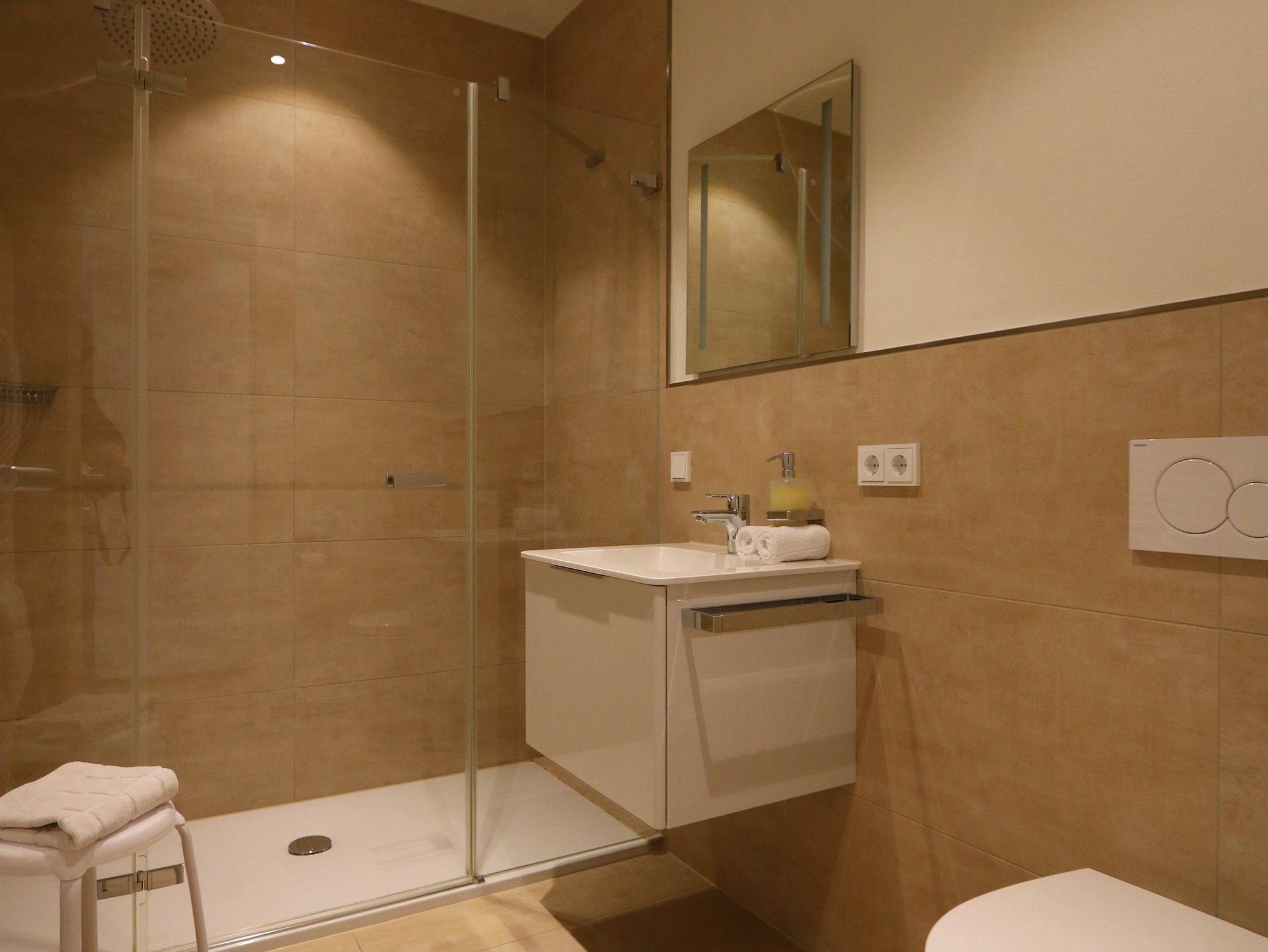 Diese Ferienwohnung für 2-6 Personen verfügt über ein zentral in der Wohnung gelegenen Wohnbereich mit integrierter Küche mit Essbereich und zwei separaten Schlafzimmern. Sie verfügt über eine Küche mit Kühlschrank, Spülmaschine, Ceran-Herd, Wasserkocher, Toaster und Kaffeemaschine sowie zwei Bädern mit Dusche und WC zudem im Hauptbad über eine Badewanne. Vom Küchenbereich gelangen Sie auf den Balkon.