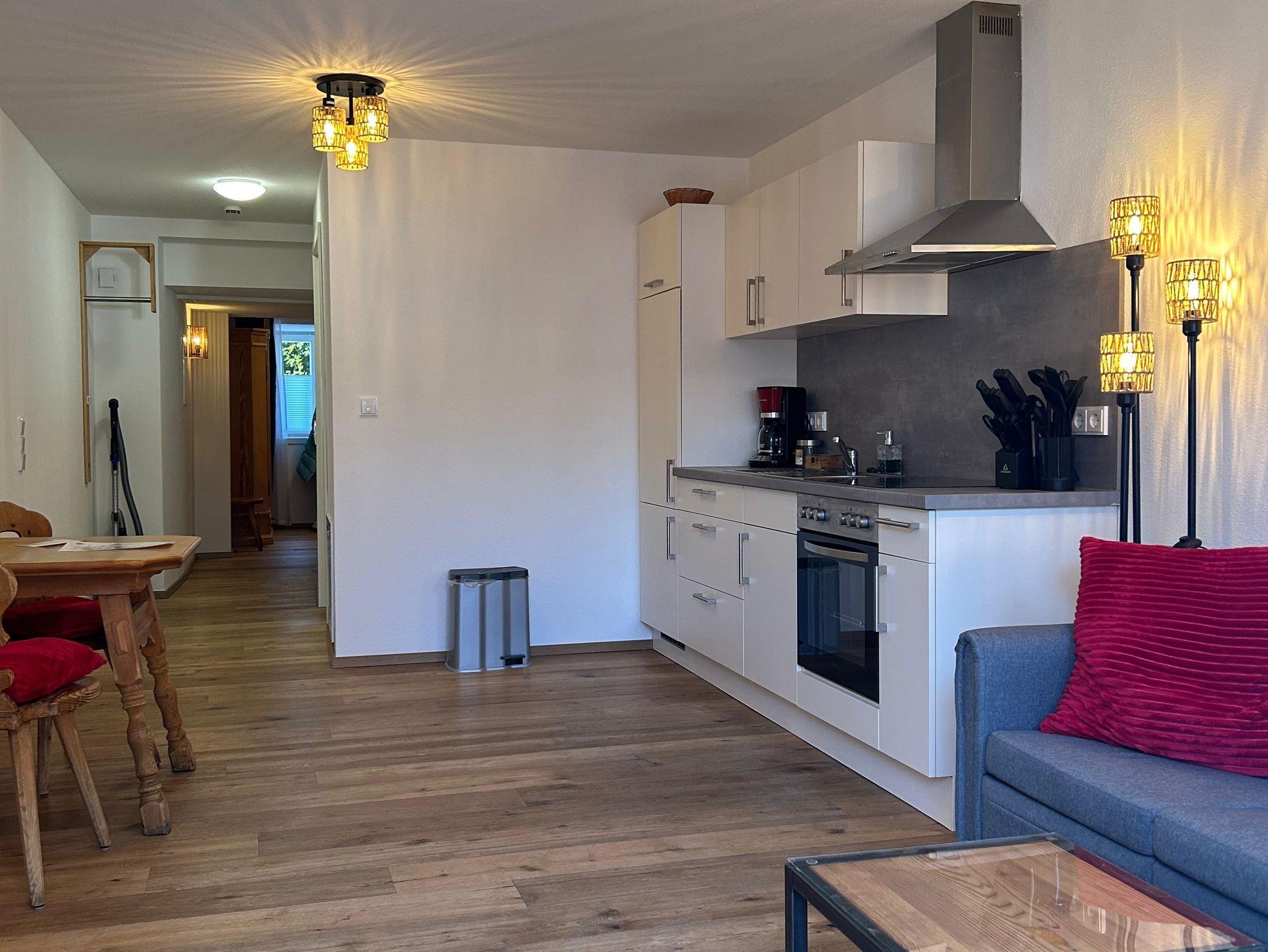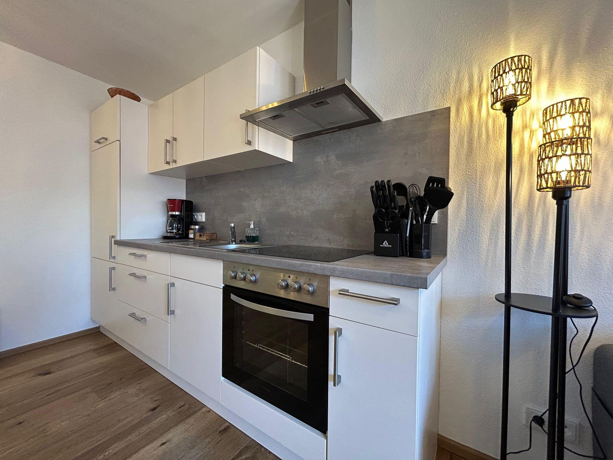 Diese Ferienwohnung für 2-4 Personen verfügt über ein zentral in der Wohnung gelegenen Wohnbereich mit integrierter Küche mit Essbereich und einem separaten Schlafzimmer. Sie verfügt über eine Küche mit Kühlschrank, Spülmaschine, Ceran-Herd, Wasserkocher, Toaster und Kaffeemaschine sowie ein Bad mit Dusche und WC.
