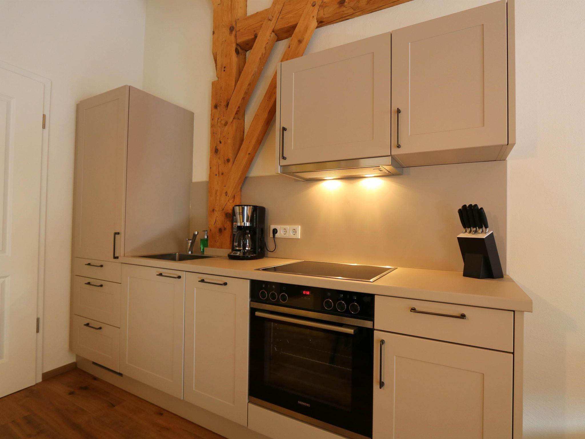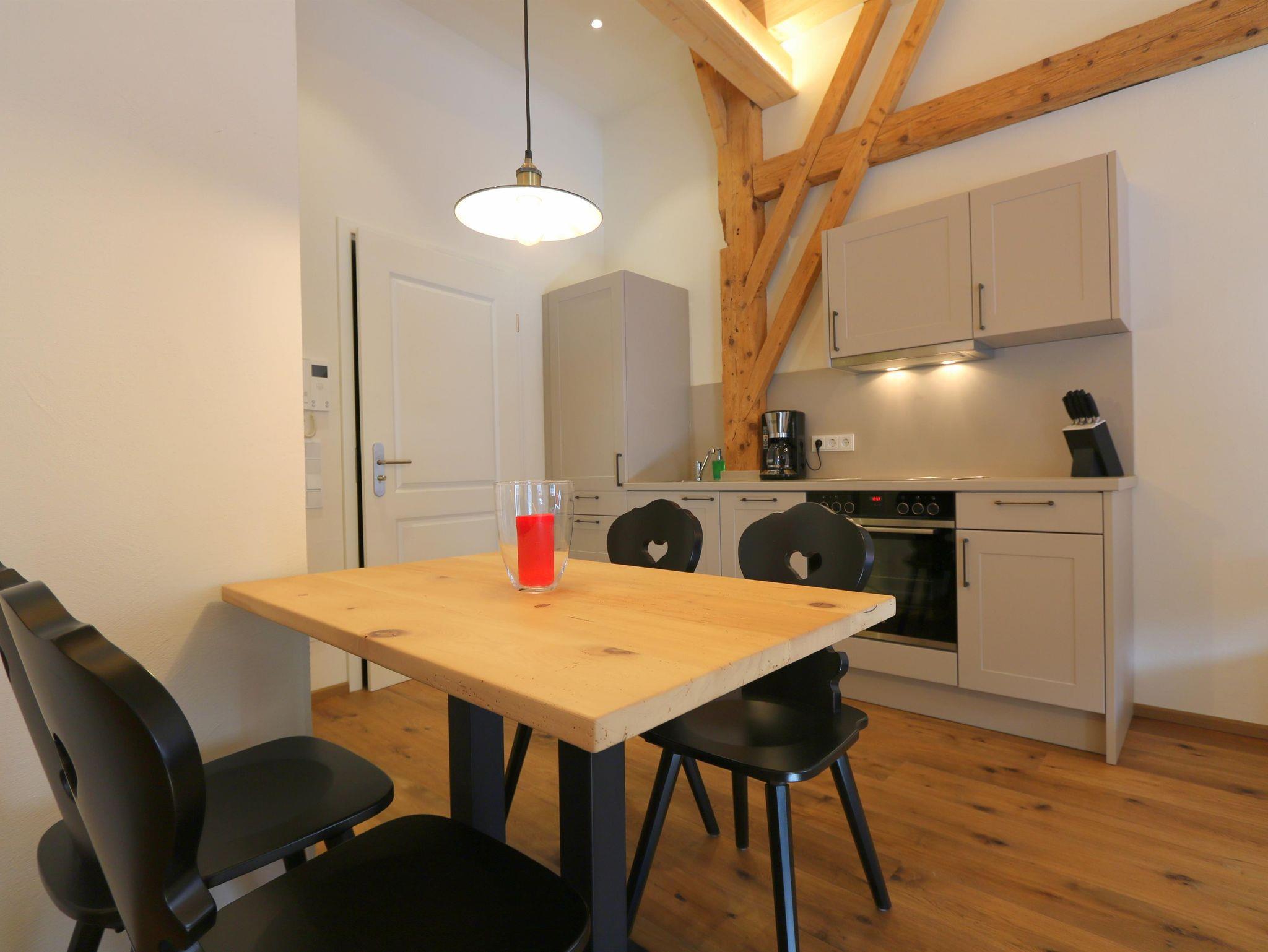 Das Apartment wurde mit viel Liebe zum Detail und sehr hochwertig im April 2019 saniert. Die Ausstattung der Wohnung ist modern und lädt zum Entspannen ein. Ein Highlight in diesem Apartment ist der sichtbare Gebälk, welches aufwendig als Blickfang der Wohnung aufgearbeitet wurde.