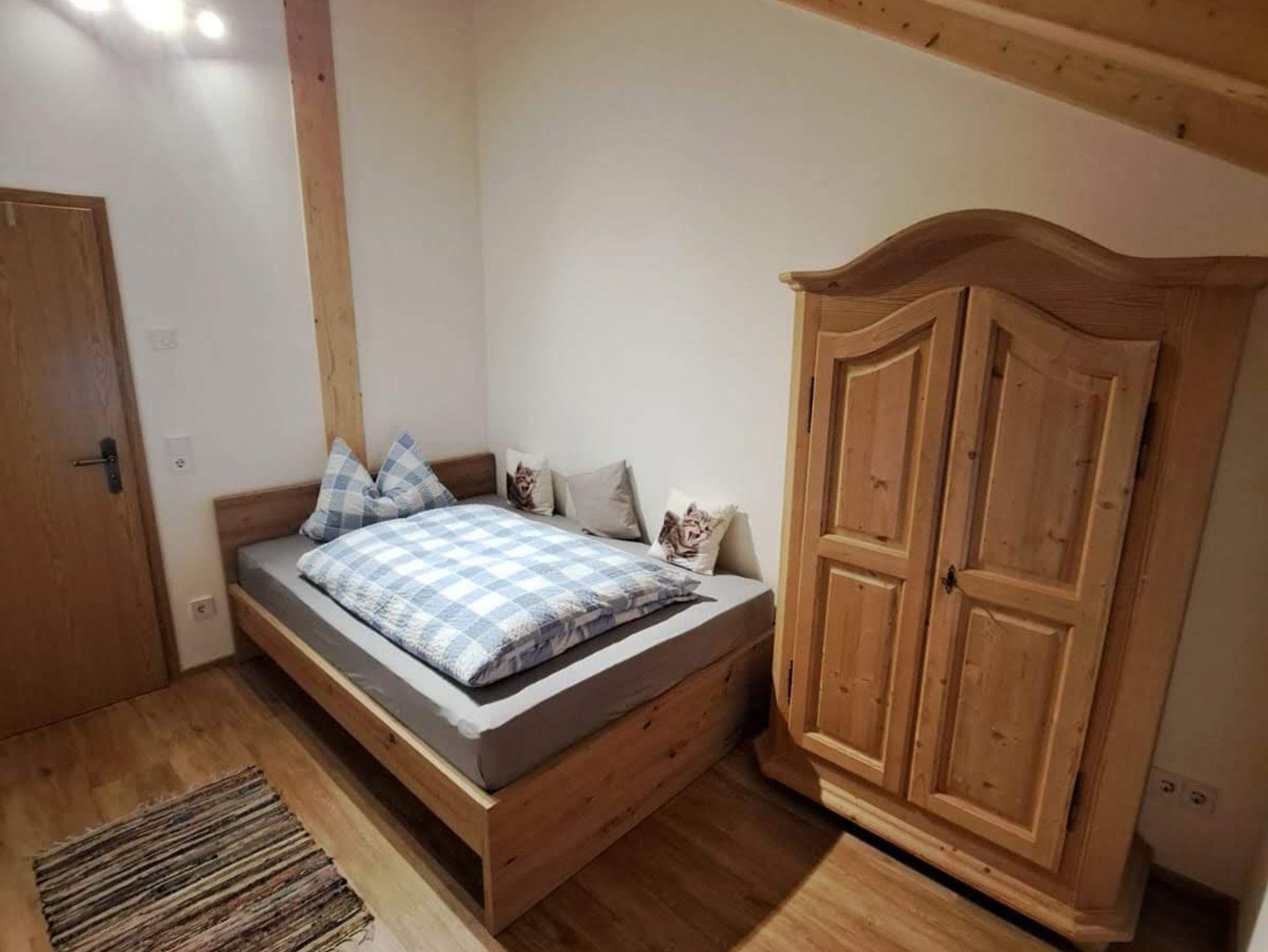 Im Schlafzimmer befindet sich ein kuscheliges Doppelbett mit einer Größe von 1,80 Meter auf 2,00 Meter. Der Kleiderschrank hat genug Platz um Kleidung für mehrere Wochen unterzubringen.