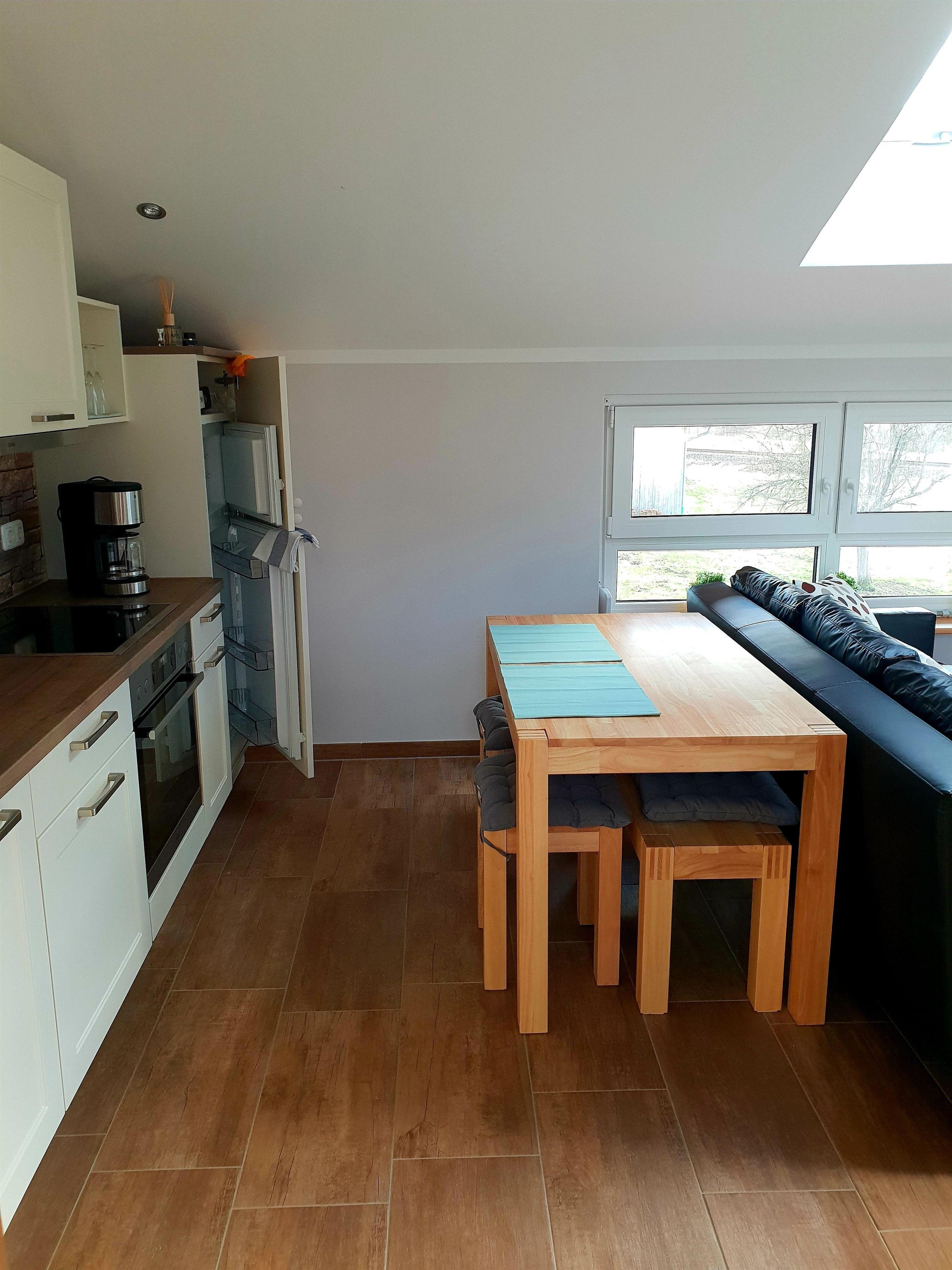 Schlafzimmer mit Doppelbett/ Wohnzimmer mit Schlafcouch, voll eingerichtete Küche