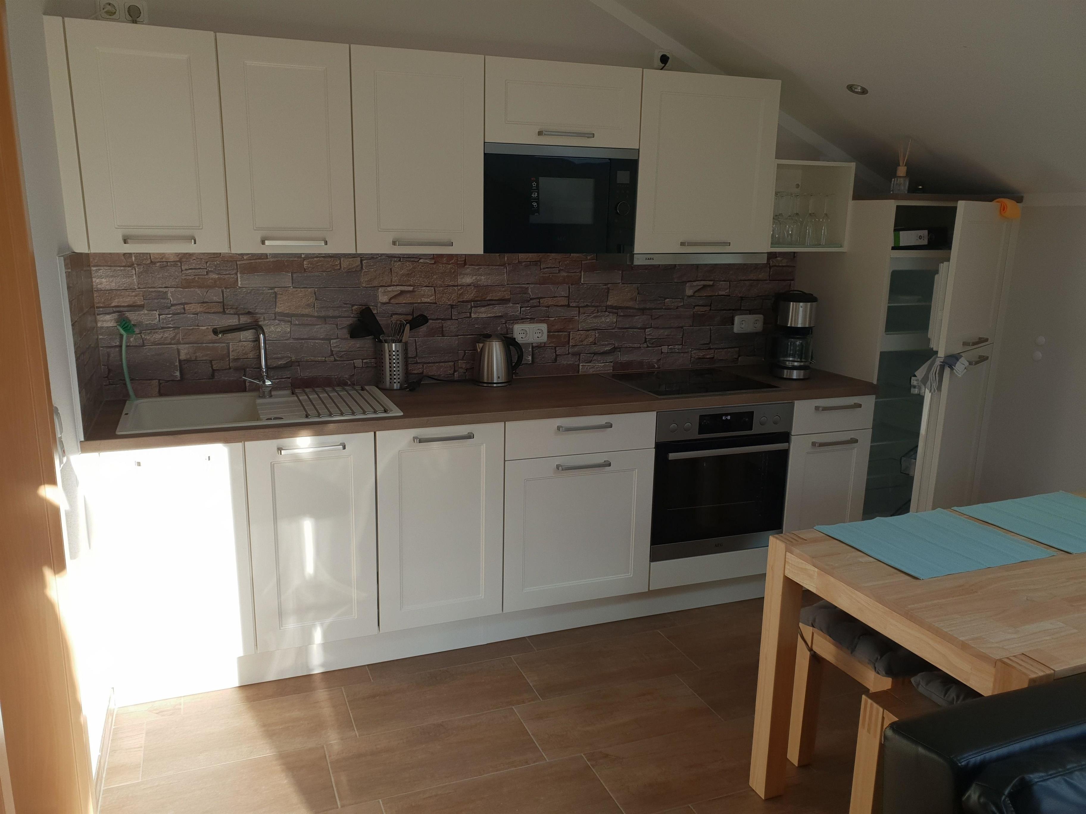 Die Ferienwohnung besteht aus Wohn/Küchenbereich, Bad und Schlafzimmer. Die Wohnung ist eine Nichtraucherwohnung. Die Wohnung verfügt im Wohnbereich eine Doppelausziehchouch, Flachbild-Tv, Kleiderständer, Tischchen. Im Küchenbereich ist eine Küchenzeile mit Mikrowelle, Ofen, Cerankochfelder, Teller, Kochuntensilien, Kaffeemaschine , Geschirrspühlmaschine, Kühlschrank, Gefierfach. Das WC/ Bad verfügt über eine Dusche und eine Badewanne. Schlafzimmer ist mit einem Doppelbett und genügend Schrankraum eingerichtet. Das Schlafzimmer hat einen eigenen kleinen Flat-Tv.