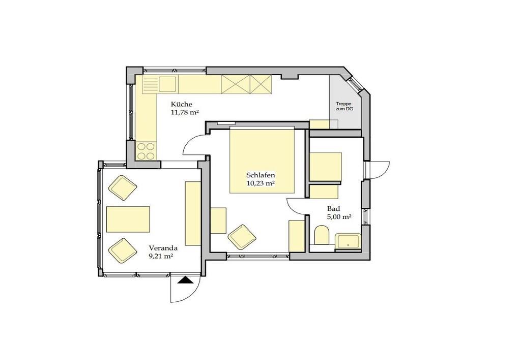 Stueetage: ((Fjernsyn), Køkken(elkedel, kaffemaskine, ovn, mikrobølgeovn, opvaskemaskine , køleskab, fryser, elektriske kogeplader), Stue/soveværelse(enkeltseng, dobbeltseng, CD-afspiller), badeværelse(toilet, bruser, håndvask)) , , Internetadgang, terrasse(grill, havemøbler, solstole), have(Grill center, grill, havemøbler, solstole), loungemøbler(Fjernsyn), tørreskab