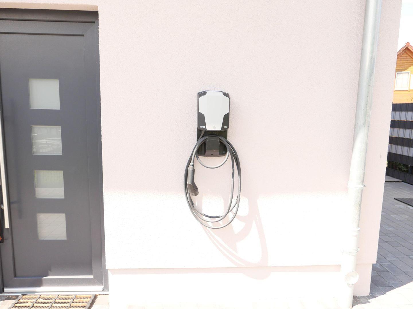 Im eingezäunten Außenbereich befindet sich ein Whirlpool, sowie eine Außendusche, eine Faßsauna, ein Fahrradabstellraum und ein Gerätehaus, sowie ein Steinaußengrill und die entsprechenden Außenmöbel. Zusätzlich vorhanden ist eine Ladestation bis zu 11 KW.