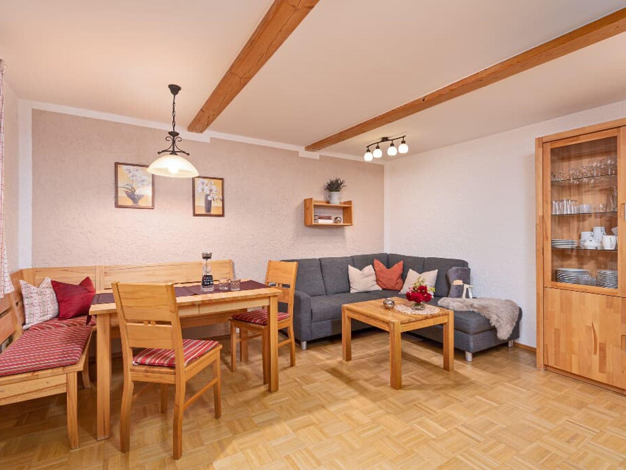 Die Wohnung befindet sich im 1. Stock und verfügt über einen Wohn- und Essbereich, eine Küche, ein Bad, ein Schlafzimmer für 2 Personen mit Doppelbett und ein Kinderzimmer für 3 Personen mit Etagenbett (2 Schlafplätze oben, 1 Schlafplatz unten).