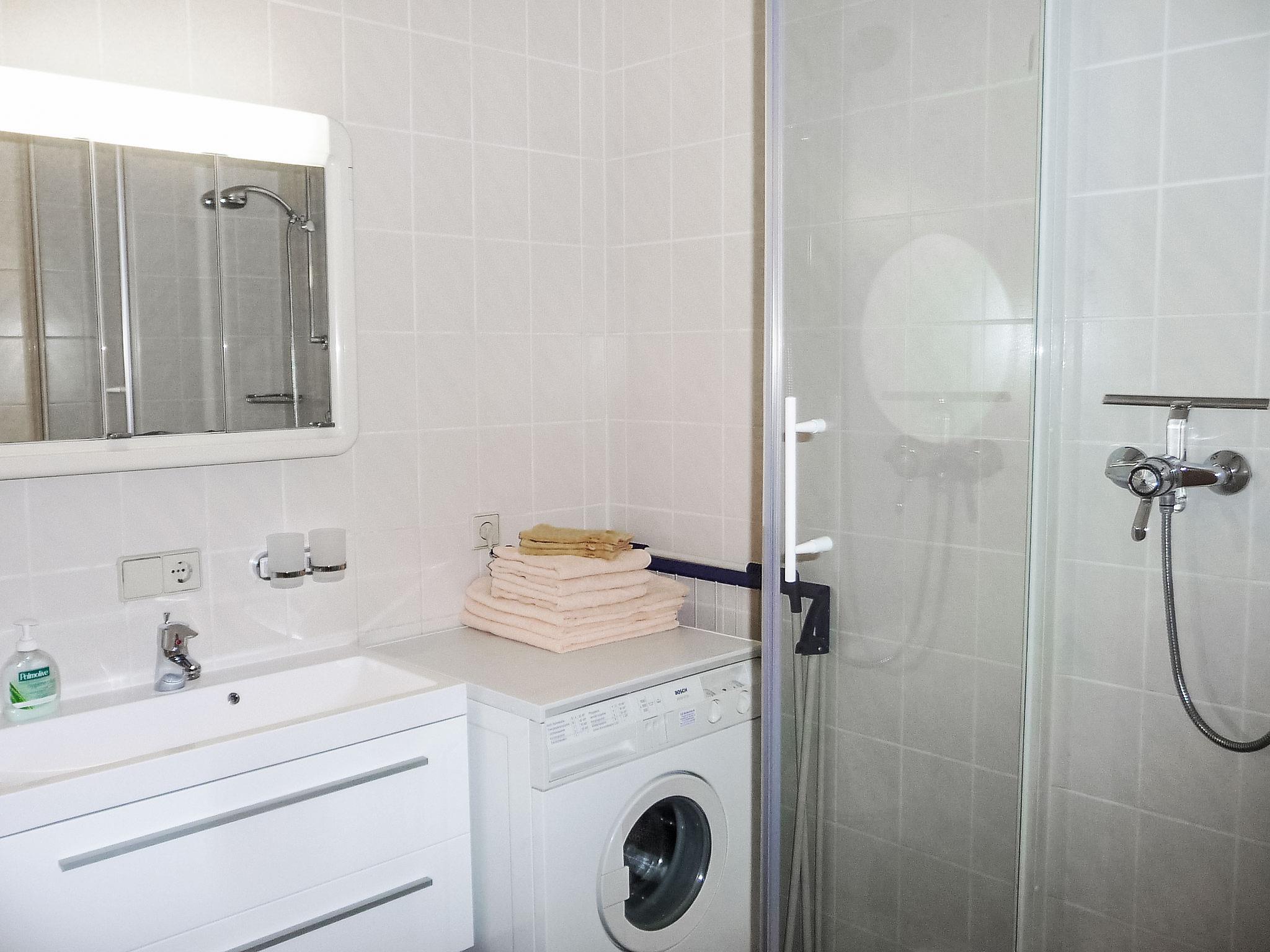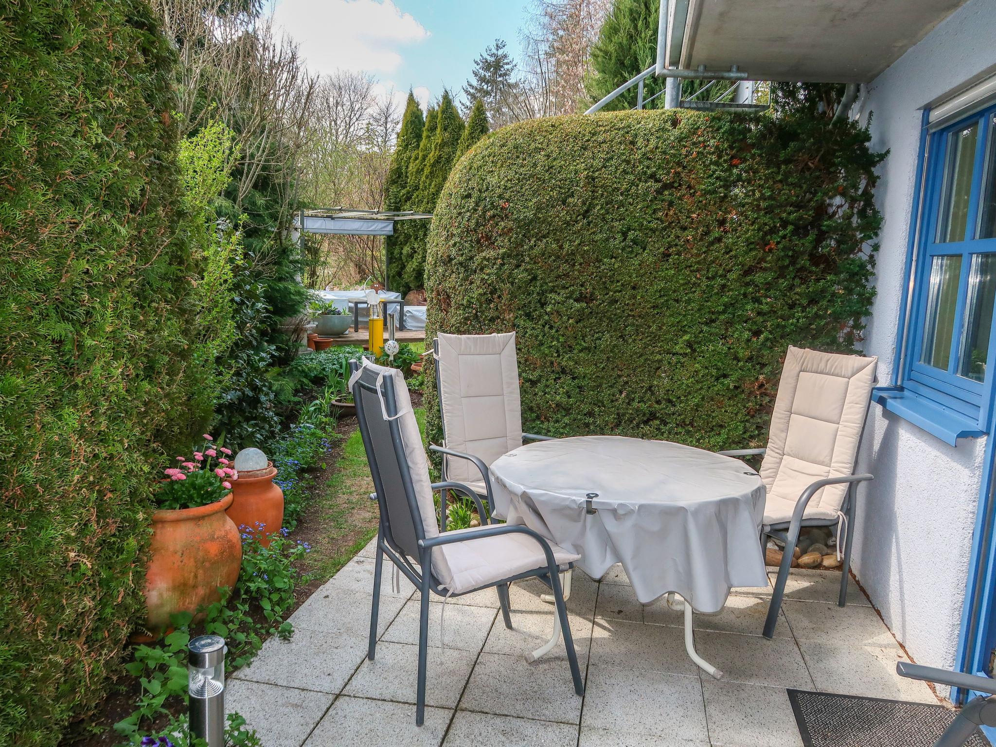 3-room granny flat 65 m2, on the lower ground floor. Comfortable and tasteful furnishings: large living/dining room with cable TV (flat screen), radio, CD-player and DVD. Exit to the terrace. 1 room with 2 beds. 1 double bedroom with cable TV. Kitchen (oven, dishwasher, 4 ceramic glass hob hotplates, microwave, electric coffee machine). Shower/WC. Underfloor heating. Terrace 8 m2. Terrace furniture, barbecue (portable), deck chairs (3). Facilities: washing machine, children's high chair. Internet (WiFi, free). Please note: fridge without freezer, non-smokers only. Maximum 1 pet/ dog allowed. There is a fully automatic coffee machine in the kitchen.