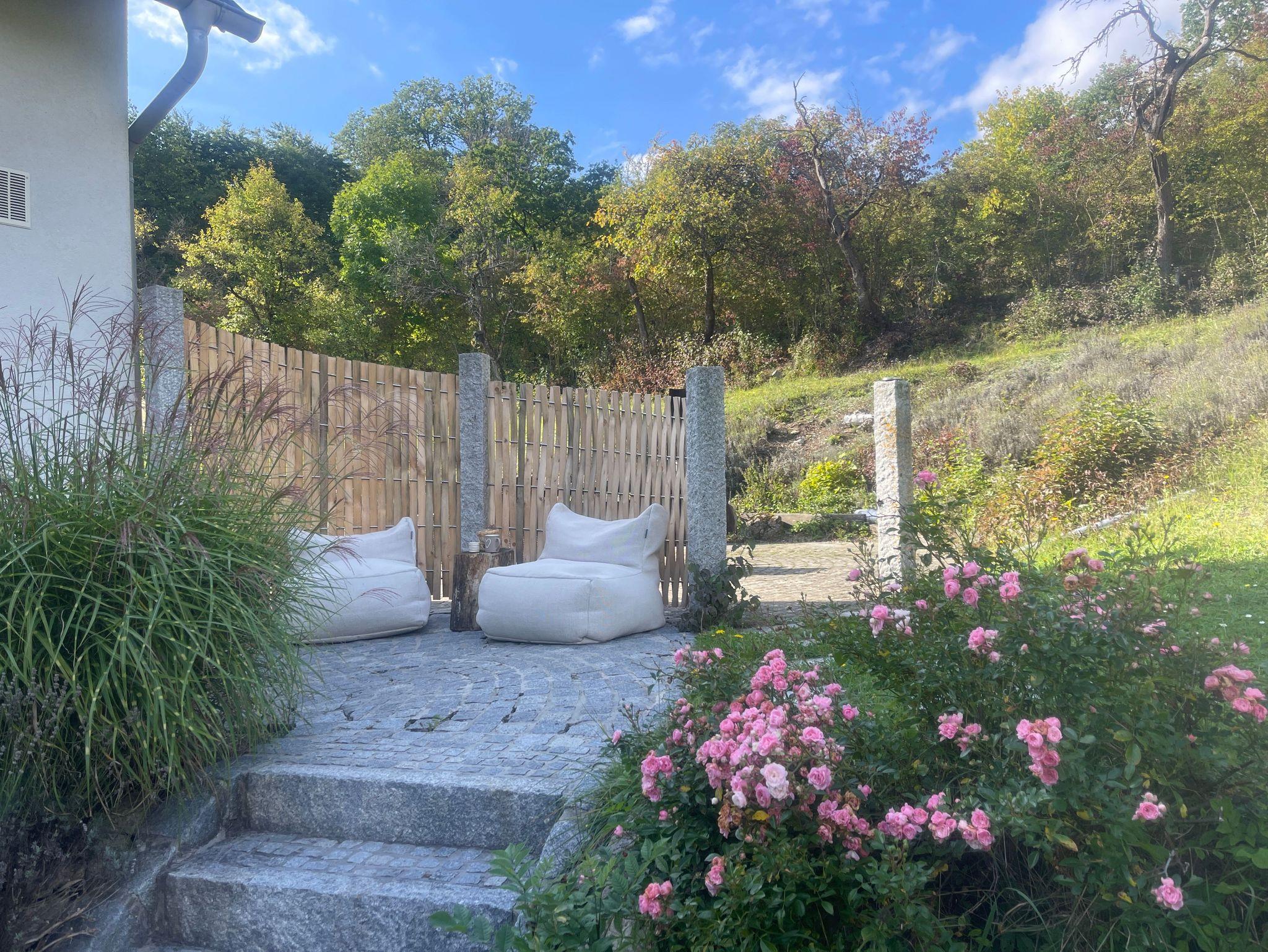 Unser Apartment verfügt zudem über einen eigenen Gartenbereich ausgestattet mit Sitzmöbeln, Liegestühlen und einer Grillstelle. Hier können Sie entspannen, die Sonne genießen oder gemütliche Grillabende in privater Atmosphäre verbringen.