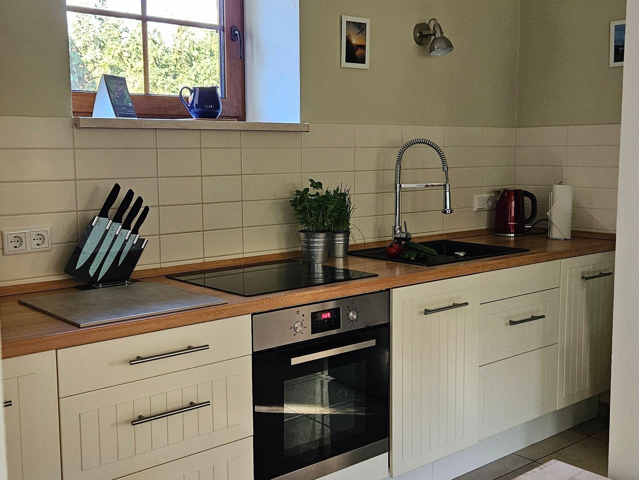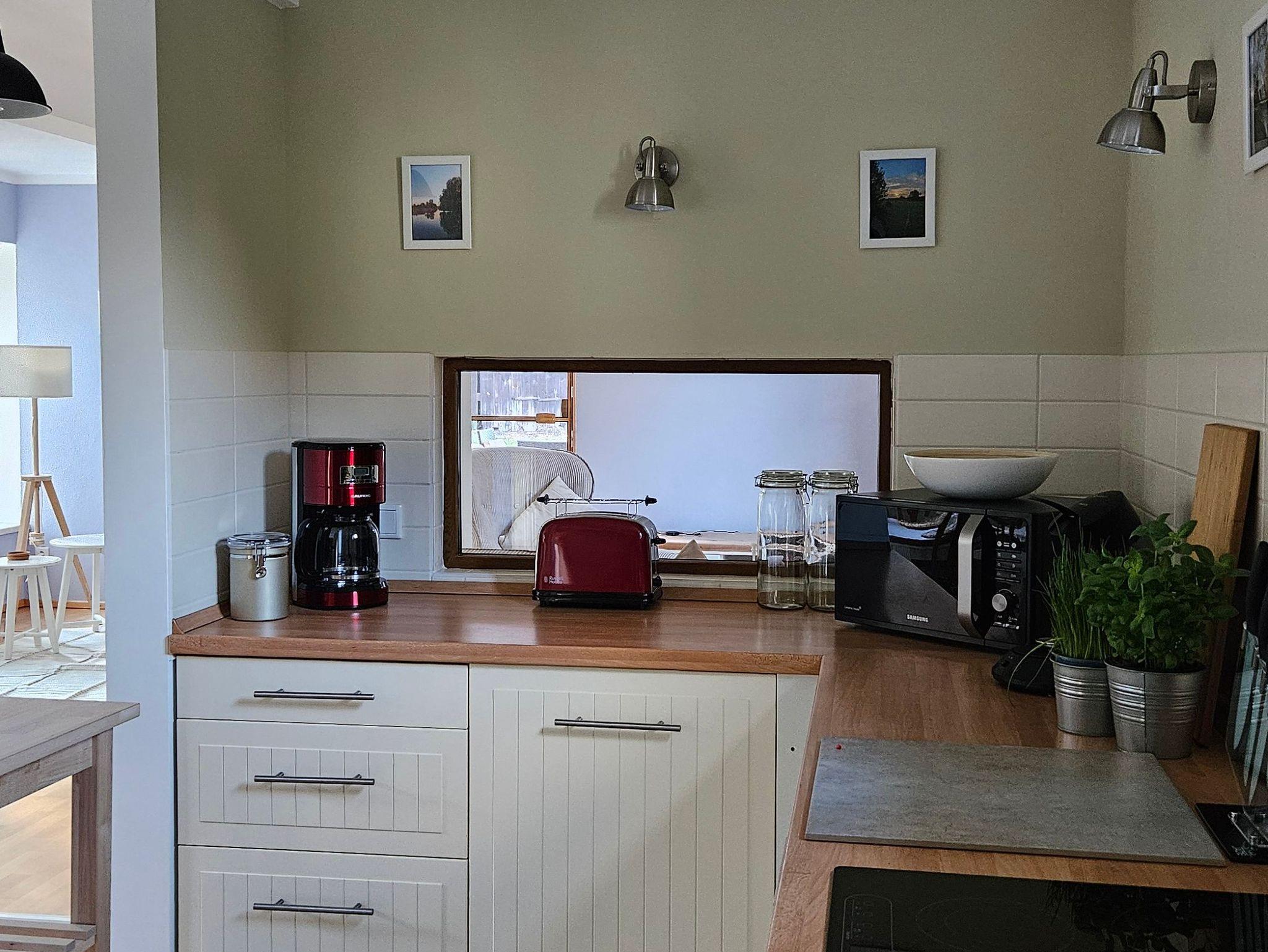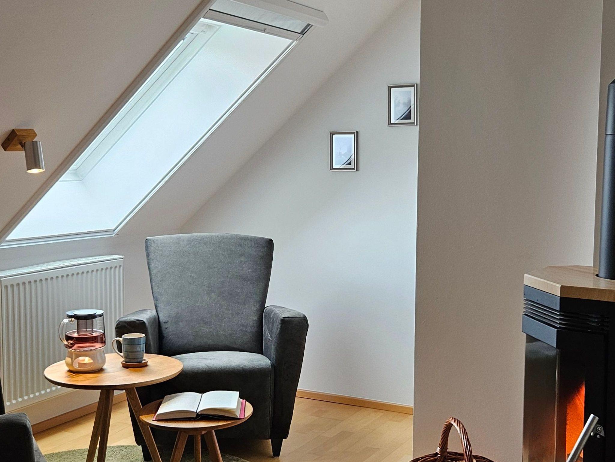 Das Ferienhaus ist ideal für 2 – 4 Personen mit 2 Schlafzimmern. Eine Aufbettung bis zu 6 Personen ist möglich. Das Haus ist kinderfreundlich eingerichtet. Im Erdgeschoss befindet sich eine geräumige offene Küche mit Essbereich, welcher direkt an den gemütlichen Wohnbereich angrenzt. Im Obergeschoss befinden sich zwei Schlafzimmer sowie eine Galerie mit einer kleinen Bibliothek, die zum Verweilen und gemütlichen Gesprächen am Kaminofen einlädt.