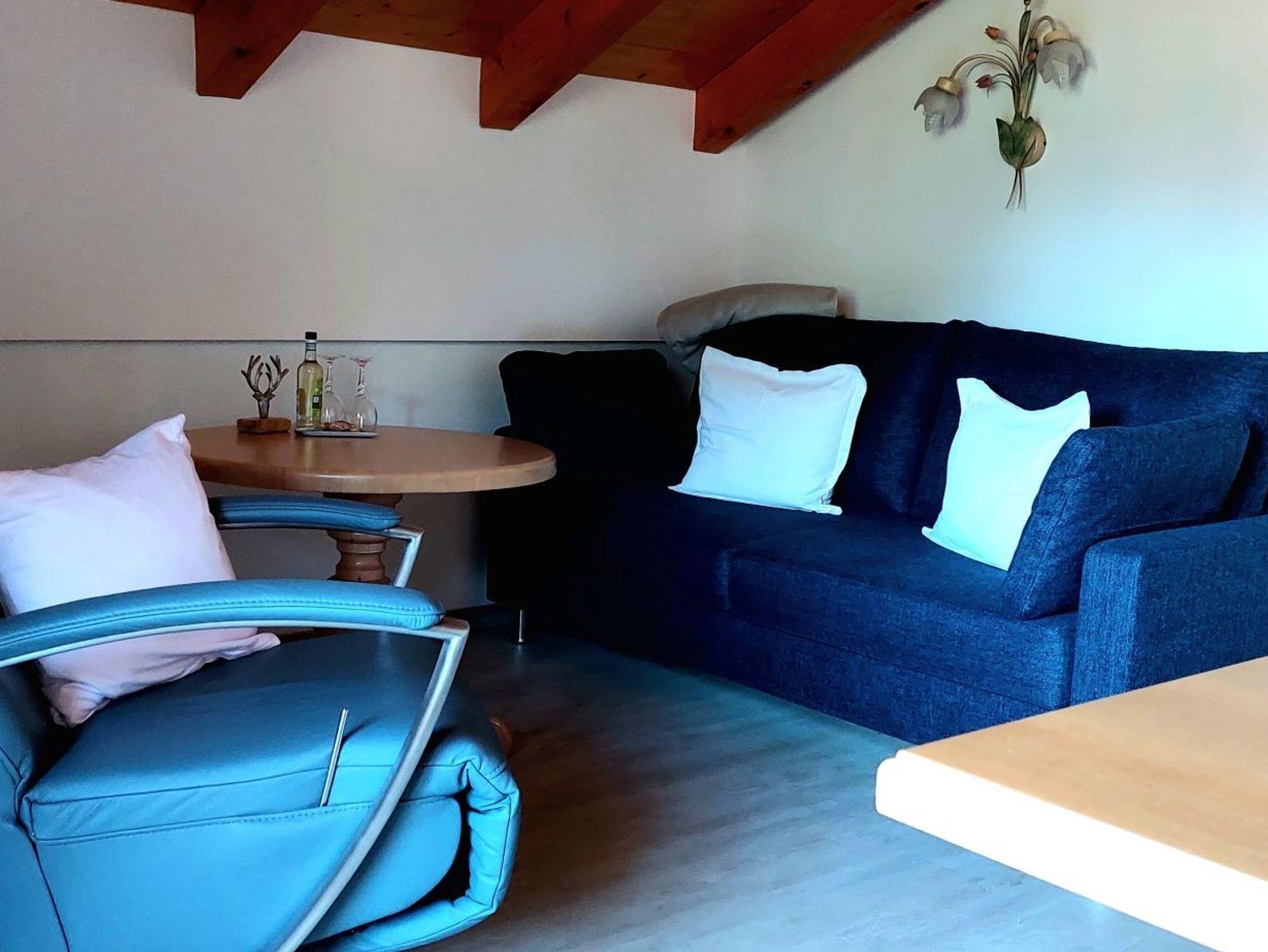 Wohnzimmer (ausziehbare Couch, Essecke, Flachbildschirm, Kabel-TV, Radio)