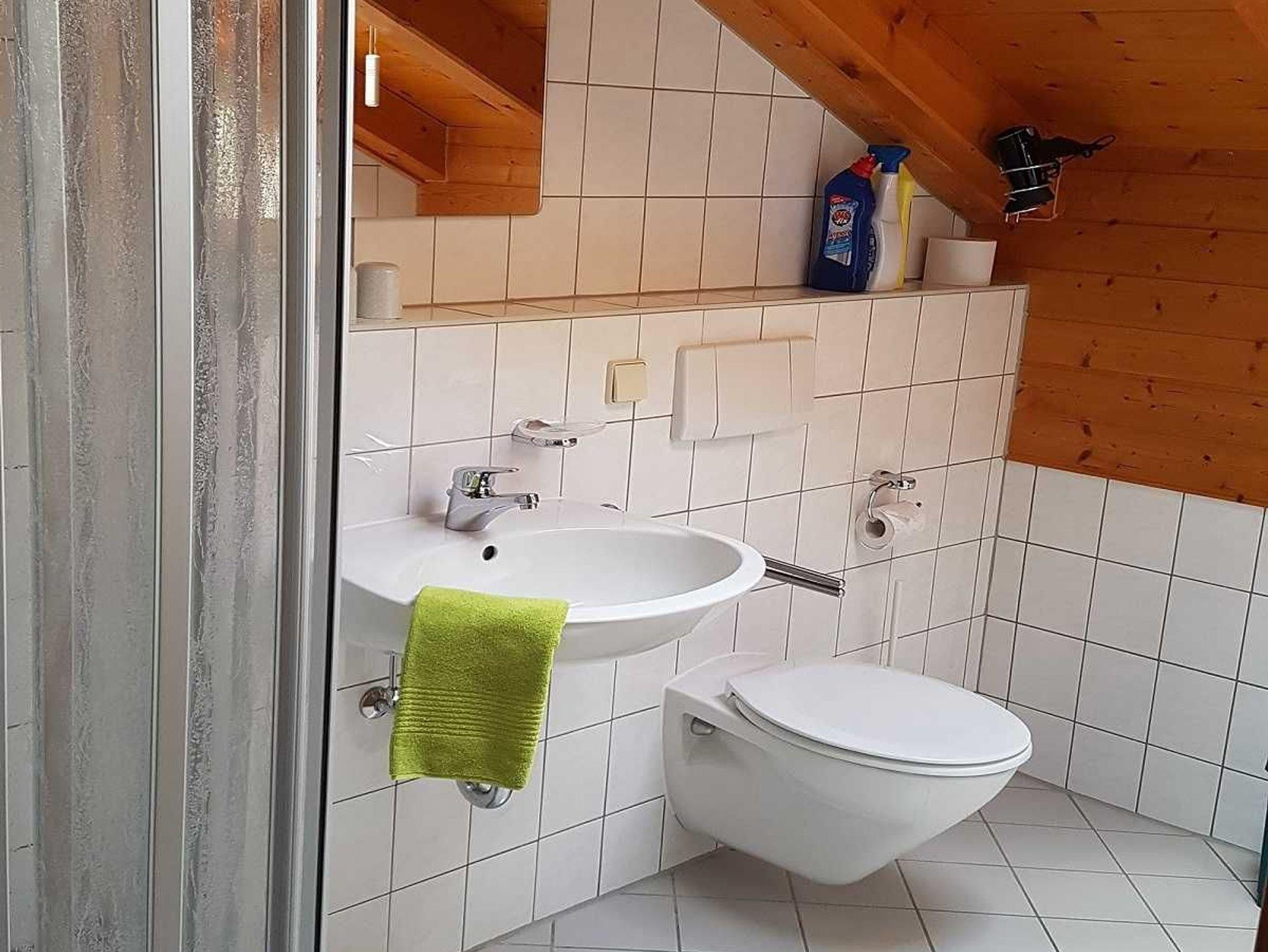 Das Badezimmer hat Tageslicht, Dusche/WC, Toilettenartikel, Hand- Badetücher stehen zur Verfügung, Haarfön, Hauspantoffel;