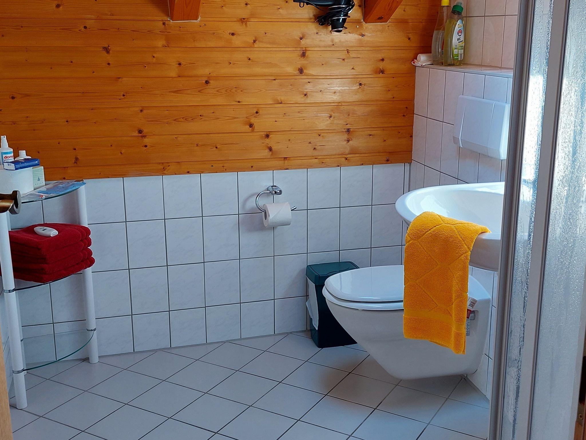 Dusche und WC mit Tageslicht, Haartrockner, Toilettenartikel, Hausschuhe. Möblierter Balkon, Wäscheständer, herrlicher Bergblick, ruhige Lage. Kostenfreies Internet, WLan. Kostenloser KFZ Stellplatz direkt am Haus.