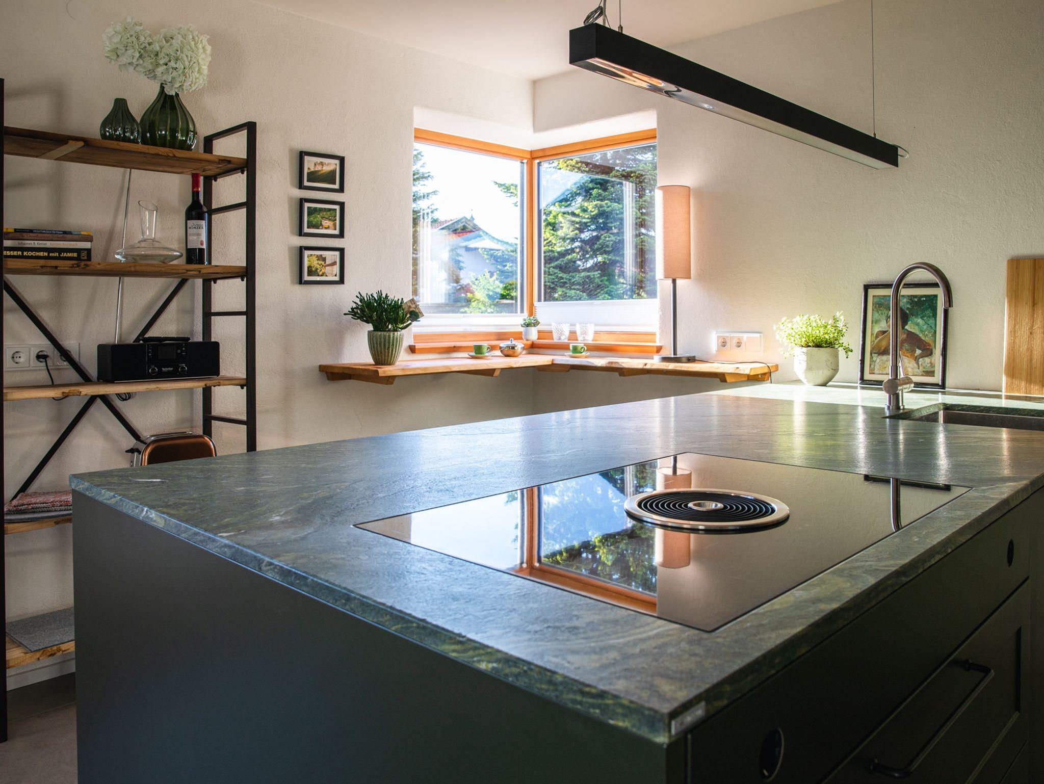Die Küche ist mit Ceranfeld/Bora-Dunstabzug, Kühl- u. Gefrierkombination, Backofen, Kaffeeautomat, Geschirrspüler komplett ausgestattet.