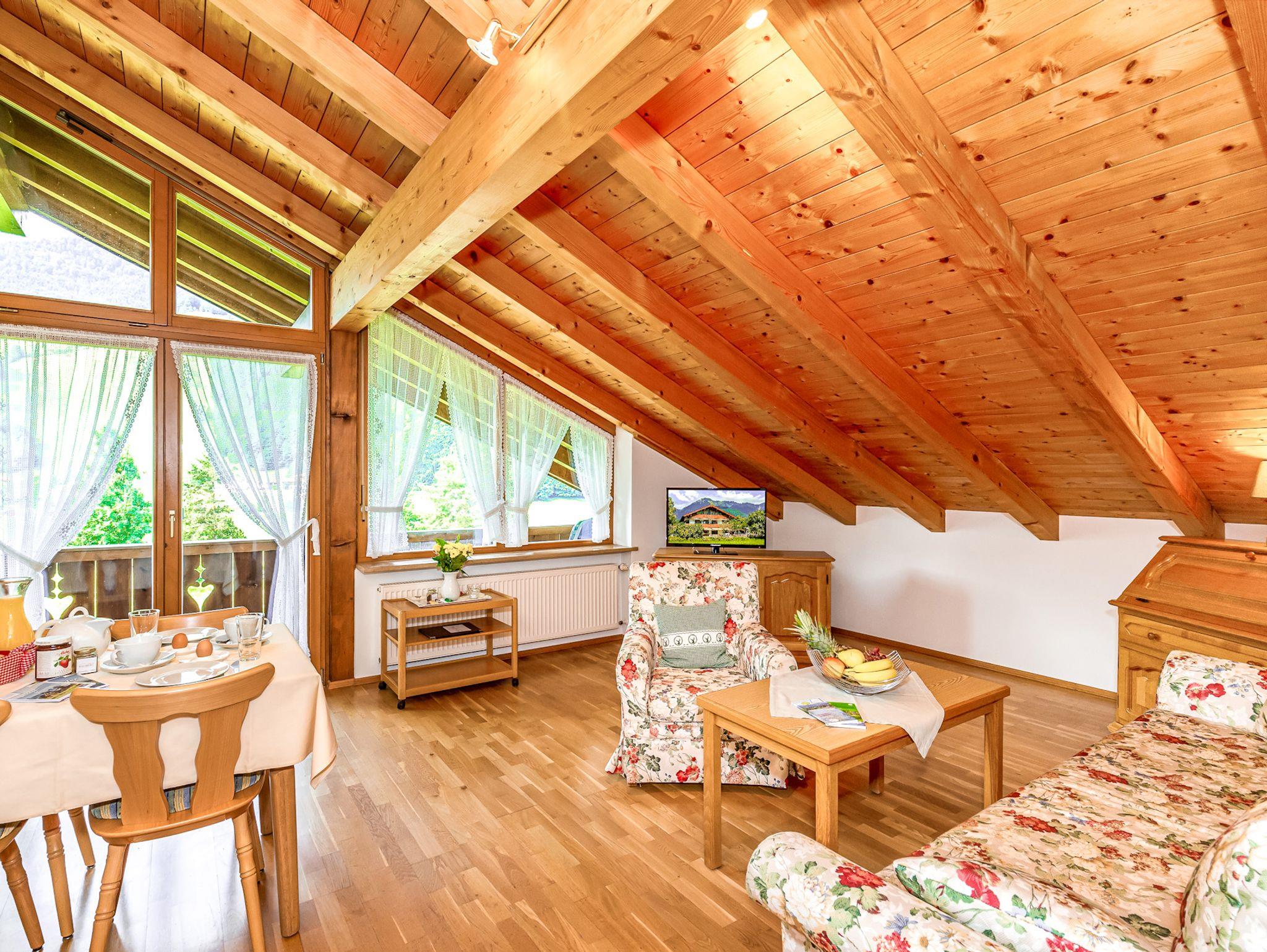 Unser Dachstudio für 2 bietet ein gemütliches Flair. Die großzügig geschnittene Wohnung überzeugt durch eine schöne Architektur und tolle Aussicht auf den Balsberg. Die verglaste Front mit südlicher Ausrichtung bietet einen ungestörten Blick auf das dortige Treiben der Paraglider und Segelflieger. Auf dem geräumigen Balkon fängt man nicht nur die Mittagssonne ein, sondern kann auch den Sonnenuntergang zwischen den Bergen in vollen Zügen ungestört genießen. Neben einem Schlafzimmer mit Doppelbett verfügt die Wohnung über eine komfortable Schlafcouch für weitere zwei Personen.