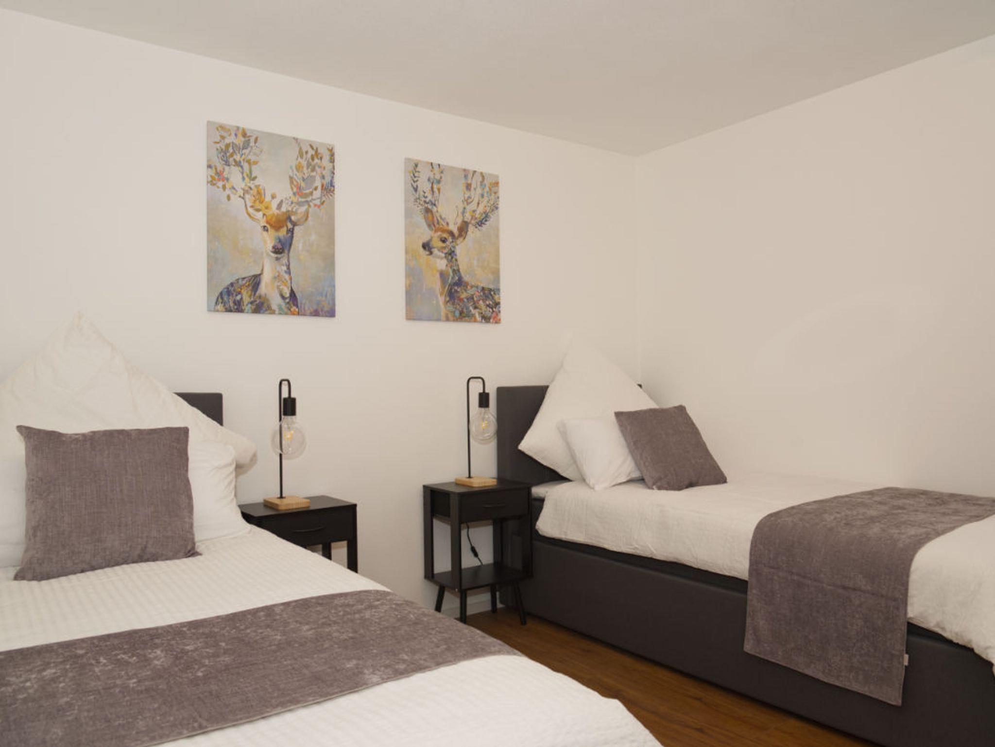 Schlafzimmer 2: Perfekt als Kinderzimmer, Jugendzimmer oder für weitere Erwachsene, ausgestattet mit zwei Einzelbetten, die jedoch auch als Doppelbett genutzt werden können.