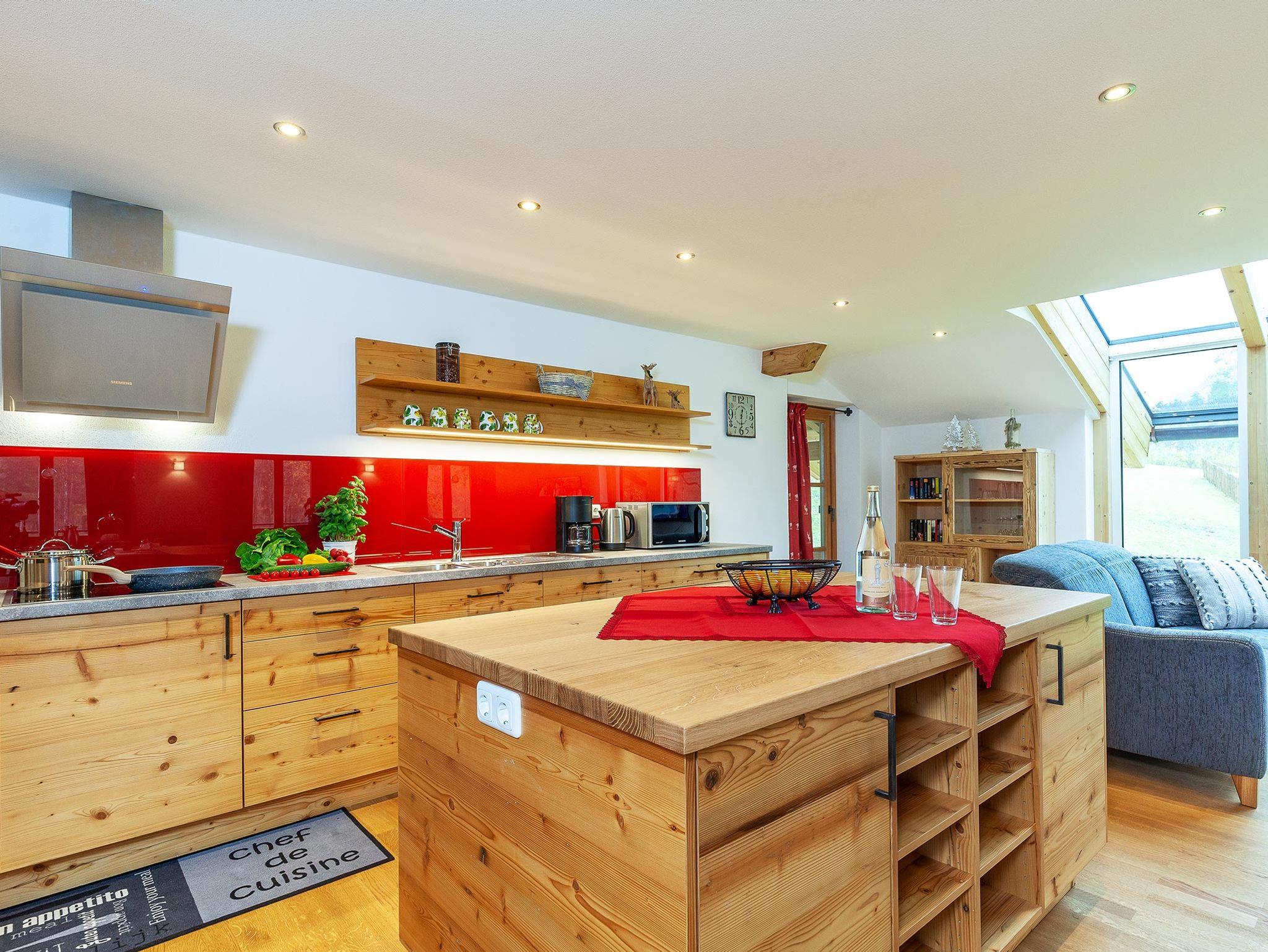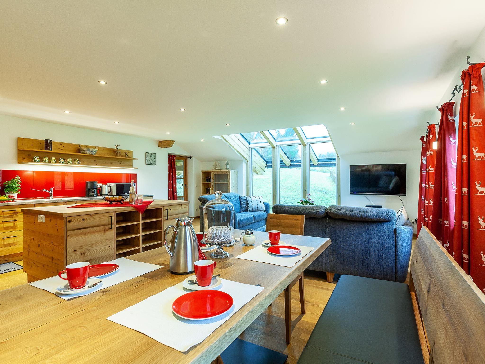 In unserer hellen und modern eingerichteten Ferienwohnung verbringen Sie Ihren Urlaub auf 103 m². Durch die großen Glasfronten haben Sie einen herrlichen Ausblick auf die umliegende Natur. Insgesamt finden in der Ferienwohnung 4-6 Personen ausreichend Platz. Besonders die große Terrasse ist der ideale Ort, um die Sonne zu genießen. Im Winter hingegen lädt die bequeme Couch im geräumigen Wohnzimmer zu gemütlichen Abenden ein.