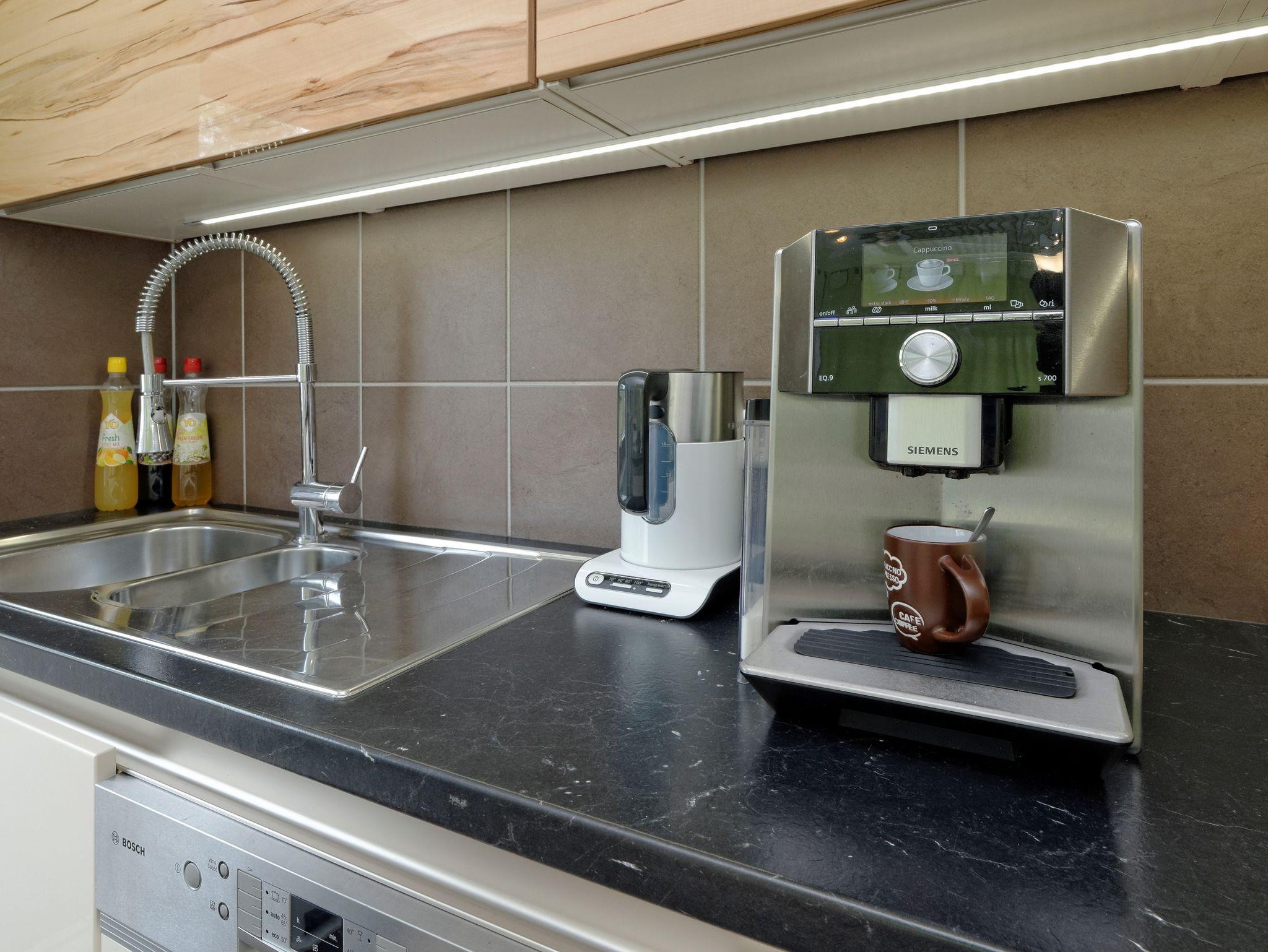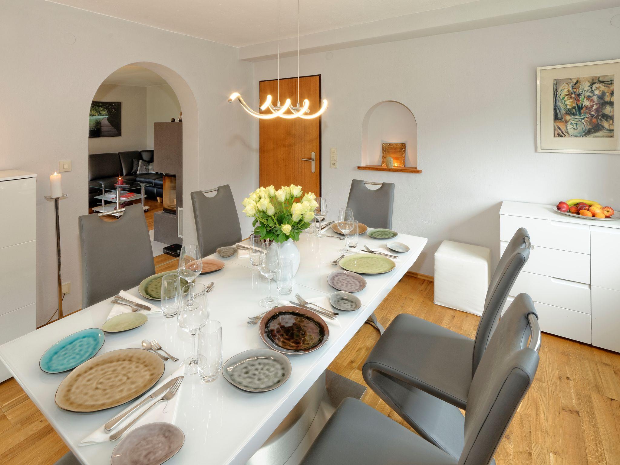 Das Ferienhaus hat im Erdgeschoß eine geräumige Diele ,eine Gästetoilette, einen Hauswirtschaftsraum mit Waschmaschine, eine voll ausgestattete Küche mit Spülmaschine, Cerankochfeld plus Gaskochfeld, Backofen, Microwelle, Kaffeevollautomat, Toaster, Mixer und Wasserkocher, ein Esszimmer und ein Wohnzimmer. An diese beiden Räume schließt der Wintergarten mit Sonnenmarkise an. Im 1. Stock finden Sie 2 Schlafzimmer, ein Kinderzimmer und ein großes Bad mit Doppelwaschbecken, einer sehr großen Badewanne, einer offenen Dusche mit Regenbrause und einer Toilette. Im Bad stehen ausreichend Hand- und Duschtücher zur Verfügung. Wir, Ihre Gastgeber Antonie und Stephan wohnen nebenan, sodass wir für Fragen und Wünsche jederzeit für Sie erreichbar sind.