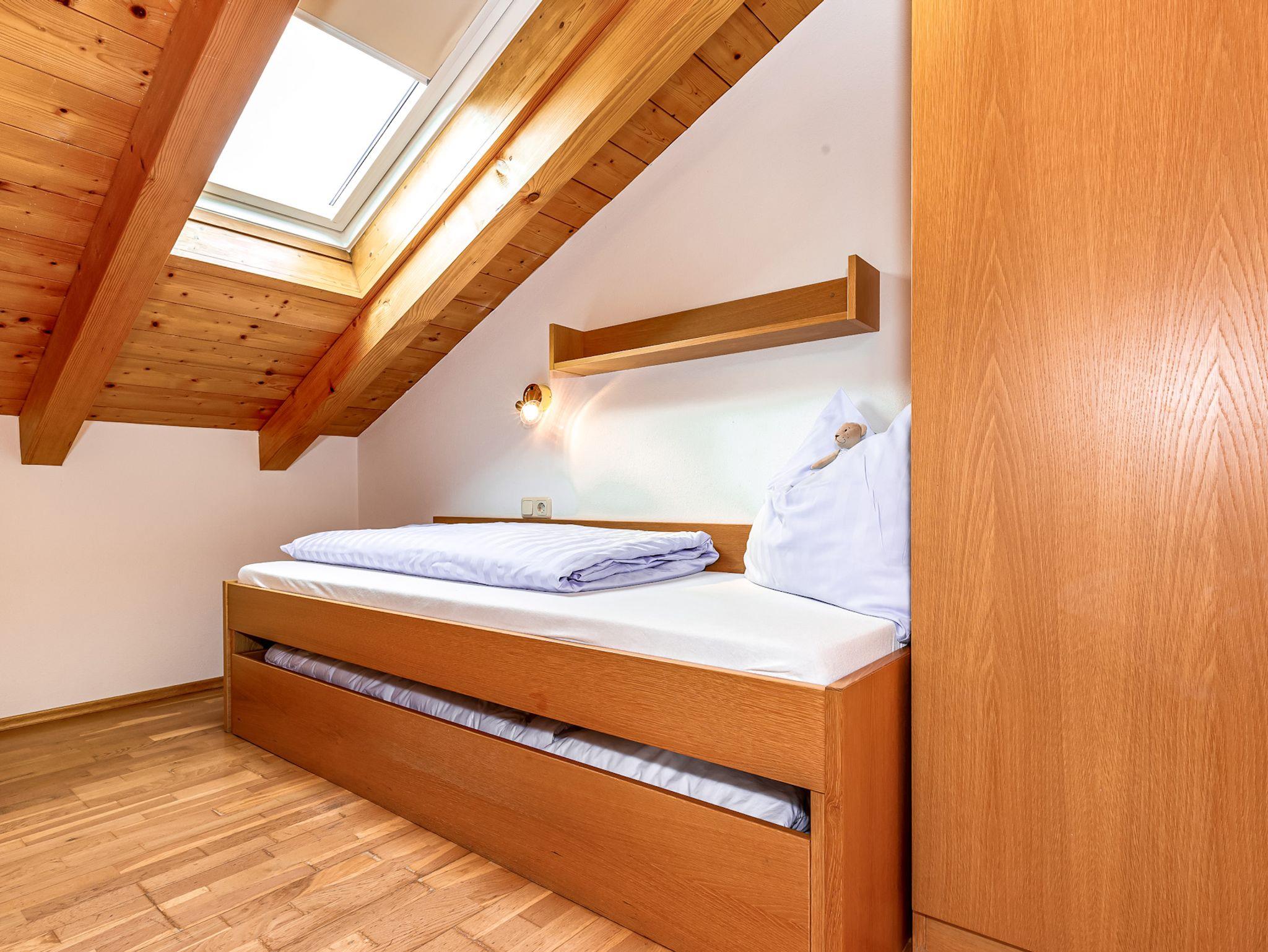 Unsere Ferienwohnung Hochfelln im Dachgeschoss bietet neben einem großzügigen Raumgefühl einen wunderbaren Blick auf die Berglandschaft um Unterwössen herum. Die Aussicht lässt sich am Besten auf dem großen Balkon genießen. Die Wohnung verfügt über zwei separate Schlafzimmer mit Doppelbett bzw. Einzelbett mit Ausziehmöglichkeit. Zusätzlich steht im Wohnraum ein komfortables Schlafsofa zur Verfügung.