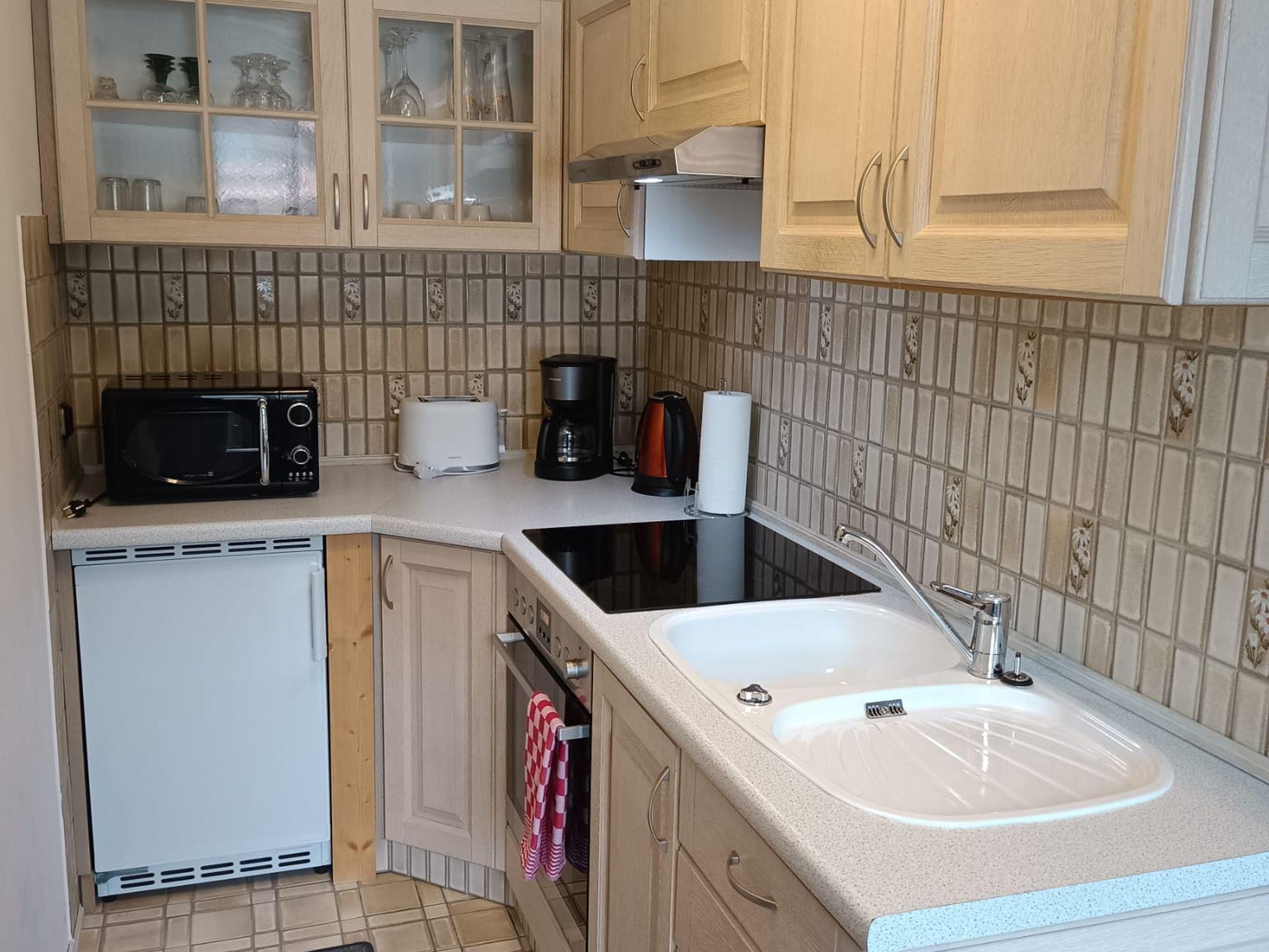 Ferienwohnung für 2 Erwachsene und 1 Kind bis 12 Jahre mit herrlichem Blick auf Umgebung und Berge. Wohnschlafraum, Küche, Dusche und WC, Balkon, TV und WLAN erwarten Sie. Haustiere können wir nicht aufnehmen, die Ferienwohnung ist eine Nichtraucherwohnung.