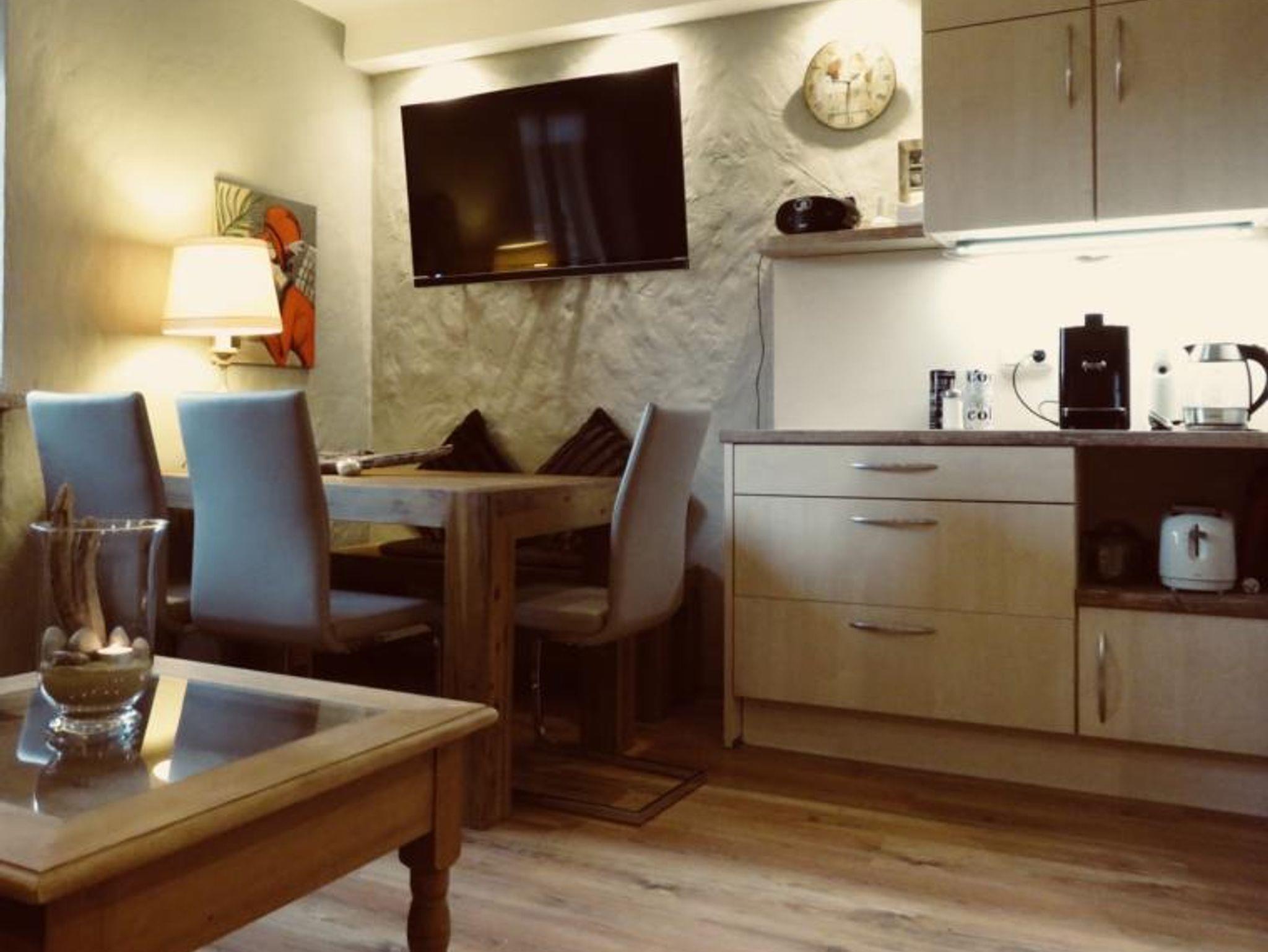 Die Ferienwohnung „Moments“ ist für bis zu 4 Personen ausgelegt. Sie verfügt über drei Räume, Flur und WC. Im Schlafzimmer 1 steht ein großes „Himmel-Doppelbett“ mit Ablagen, eine kleine Sitzgruppe, großer Einbauschrank mit eingebauter Dusche und Waschtisch und ein großer Flat-TV. Zugang zum eigenem überdachten SW- Balkon mit 2 Stühlen und Tisch. Das Schlafzimmer 2 hat ebenfalls ein Doppelbett, jedoch in Boxspring- Ausführung, eine kleine Sitzgruppe und einen großen Einbauschrank mit eigener Dusche und Waschtisch. Einen kleinen TV finden sie im Schrank. Direkter Zugang zum überdachten SW- Balkon mit 2 Stühlen und Tisch. Die Wohnküche ist voll ausgestattet, zusätzlich neben dem Essplatz mit Bank und Stühlen gibt es hier noch eine gemütliche Couch. Weiter finden Sie hier auch einen XXL-Flat TV. Küchenausstattung: Vollwertiger Herd mit Ceranfeld, Spülmaschine, Kaffee-Pad Maschine, Geschirr/Kochgeschirr etc. in ausreichender Anzahl.