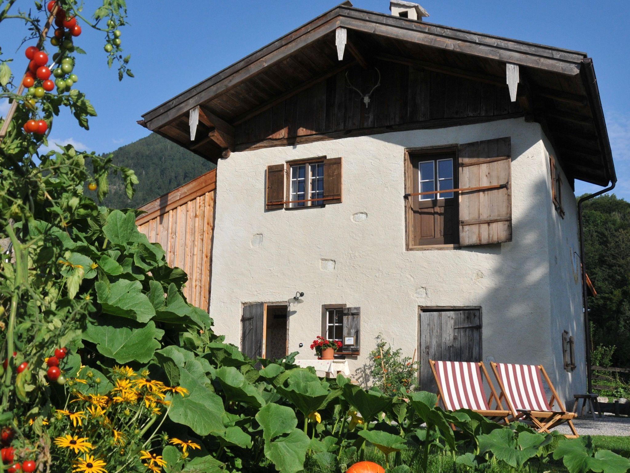 Für Gäste, die das Besondere zu schätzen verstehen: ein denkmalgeschütztes Zuhäusl auf einem uralten Bauernanwesen mit Blick über den Bauerngarten und die weitläufige Streuobstwiese auf die umliegenden Berge. Historische Bausubstanz, die kürzlich aufwändig restauriert und mit allem modernen Komfort versehen wurde, bildet den Rahmen für stilvoll und dabei funktionsorientiert eingerichtete Räume: im Erdgeschoß ein kleiner Eingangsflur und die Wohnküche, dazu ein neu angebautes Bad mit Wanne; über eine steile historische Kastentreppe gelangt man ins Obergeschoß mit Wohnraum sowie einem Schlafzimmer mit Doppelbett 180x200 cm. Handgemachte Fliesen, hochwertige Textilien, schreinergefertigte Einbaumöbel, bäuerliche Antiquitäten, Daunenbetten, Battistwäsche, edles weißes Frottee ergänzen das Ensemble. Fußbodenheizung, freies WLAN, Bose-Lautsprecher. Dazu alle Serviceangebote unserer Lohei-Anlage vom absperrbaren Fahrradraum, dem Hofladen, dem Waschmaschinenraum und dem Carport bis zum Grillplatz.