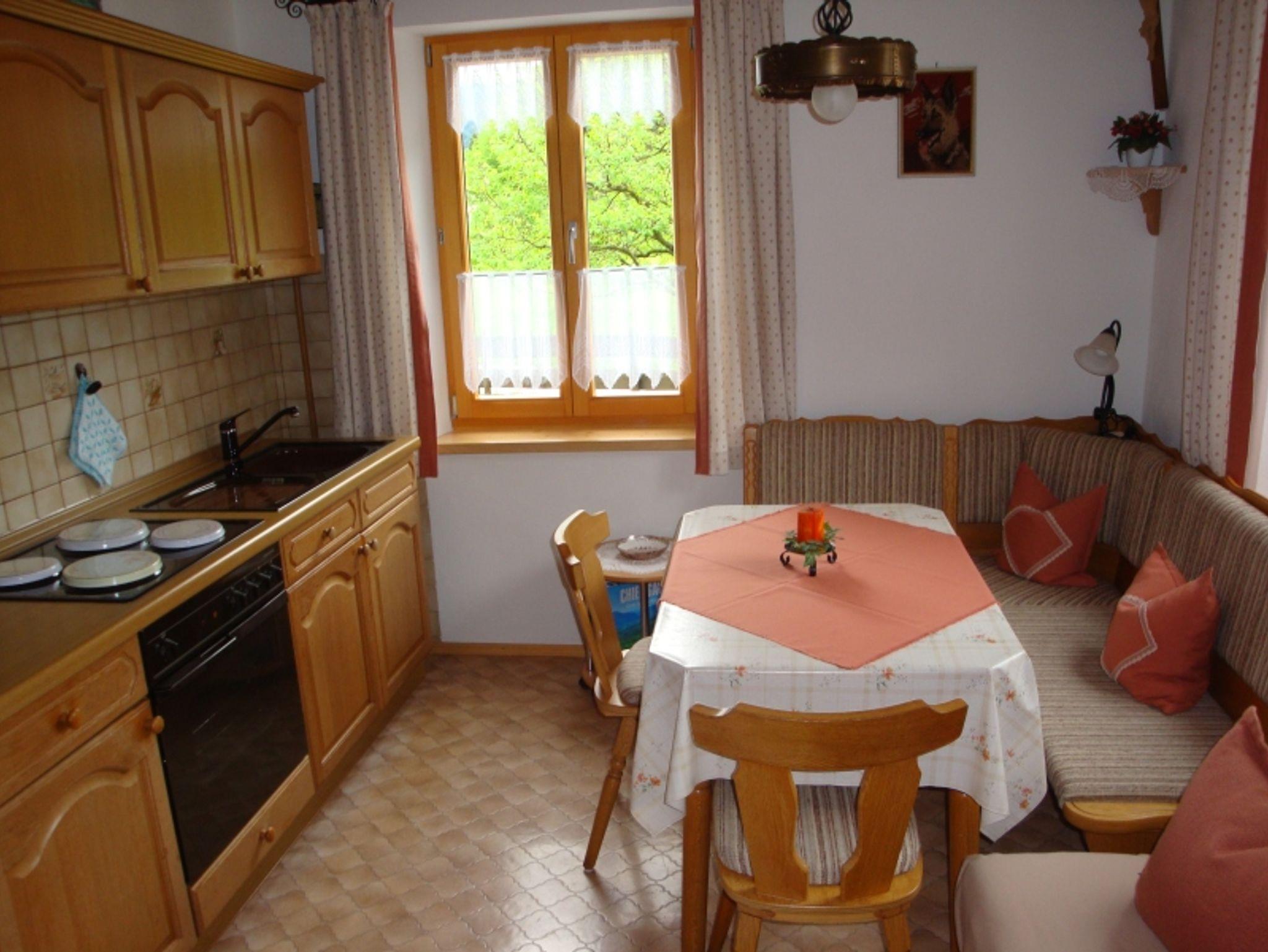 Die Ferienwohnung für 2-4 Personen und das Doppzimmer - beide mit Terrasse - liegen ruhig und zentrumsnah mit herrlichem Bergblick. Ein gemütlicher Aufenthaltsraum mit Kaffeeküche, Sat-TV und Mikrowelle stehen für das Doppelzimmer zur Verfügung. Das Nichtraucherhaus verfügt über WLAN. Ins Zentrum zu Bäckerei und Lebensmittelmarkt sind es nur 150 bzw. 400 Meter.