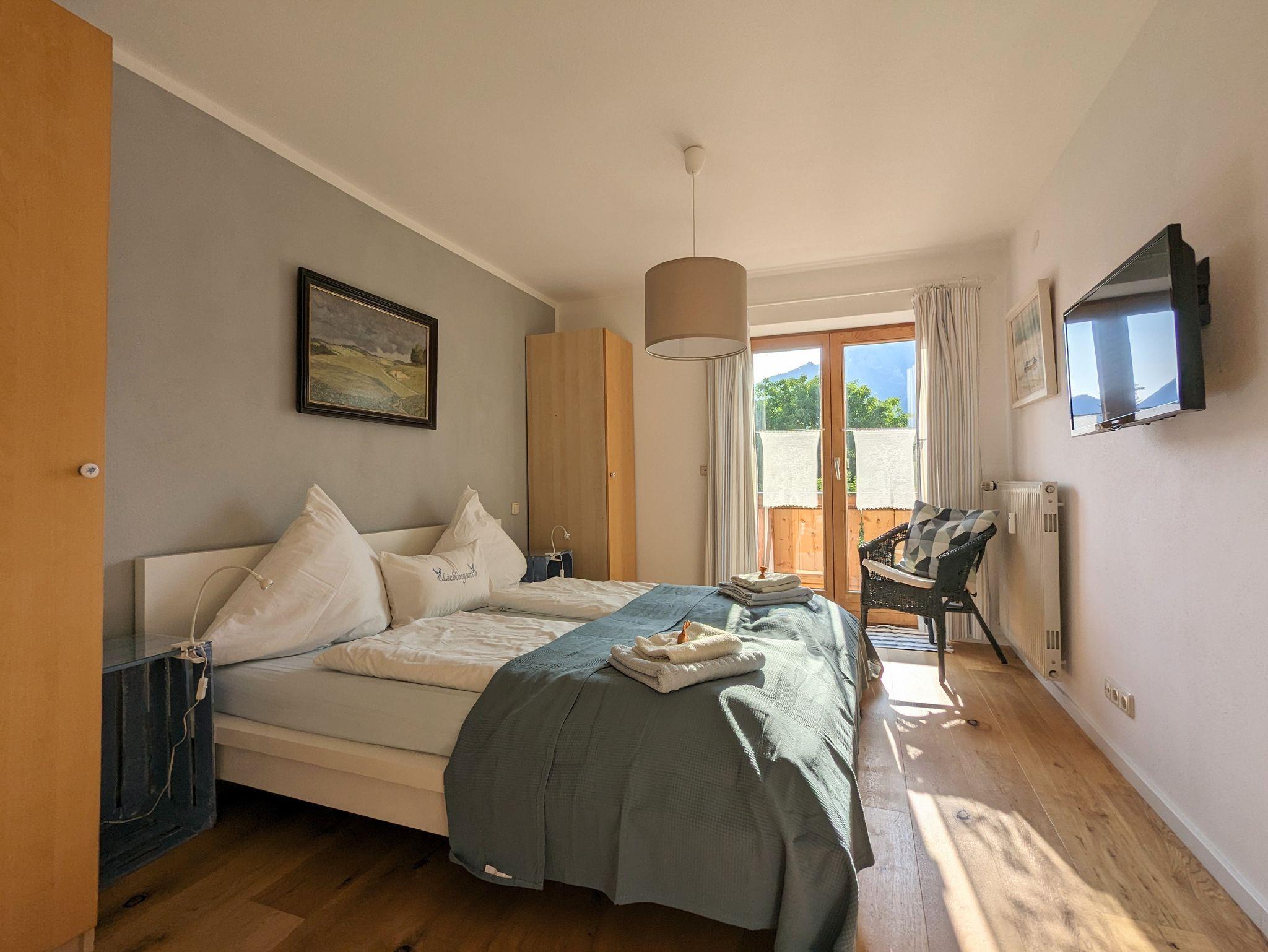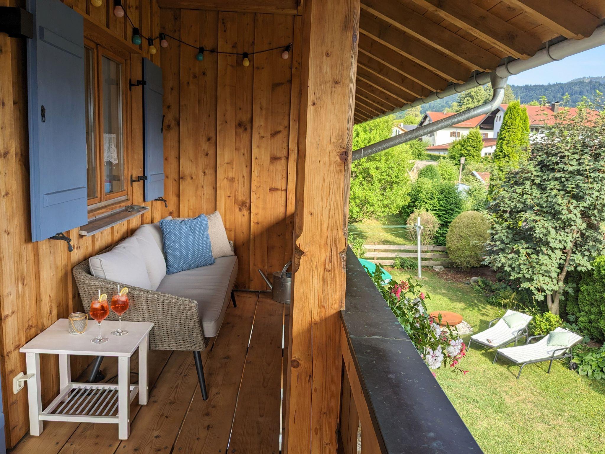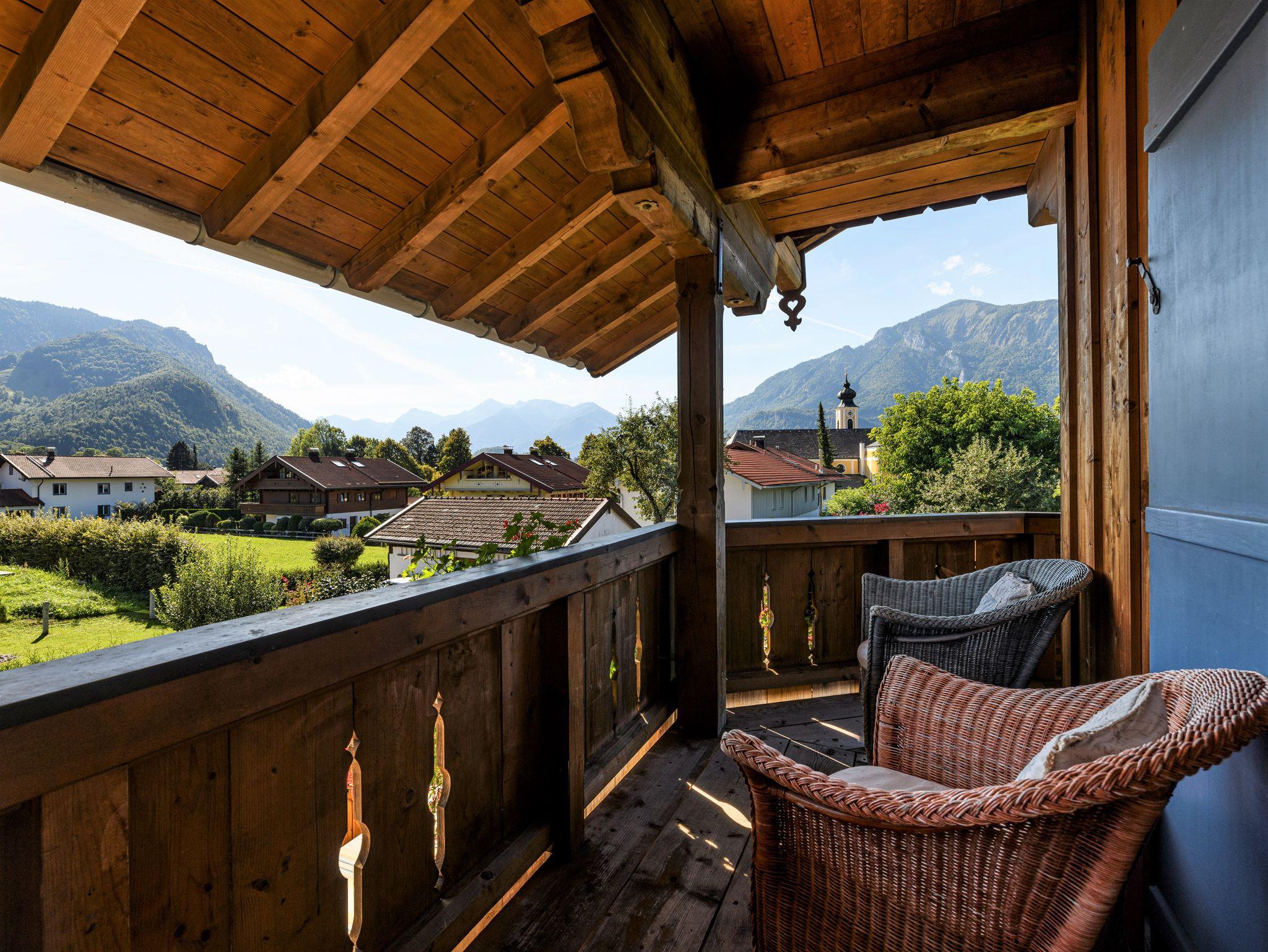 Von allen Zimmern haben Sie Zugang zu einem großen umlaufenden Süd-West-Balkon (22 qm) mit verschiedenen Sitzmöglichkeiten, Loungesofa und herrlichem Berg- und Gartenblick. Zusätzlich steht Ihnen ein eigener südseitiger Garten mit neuer Lärchenholzterrasse, Liegewiese, Gartenmöbeln, Grillmöglichkeit und Feuerschale zur Verfügung.
