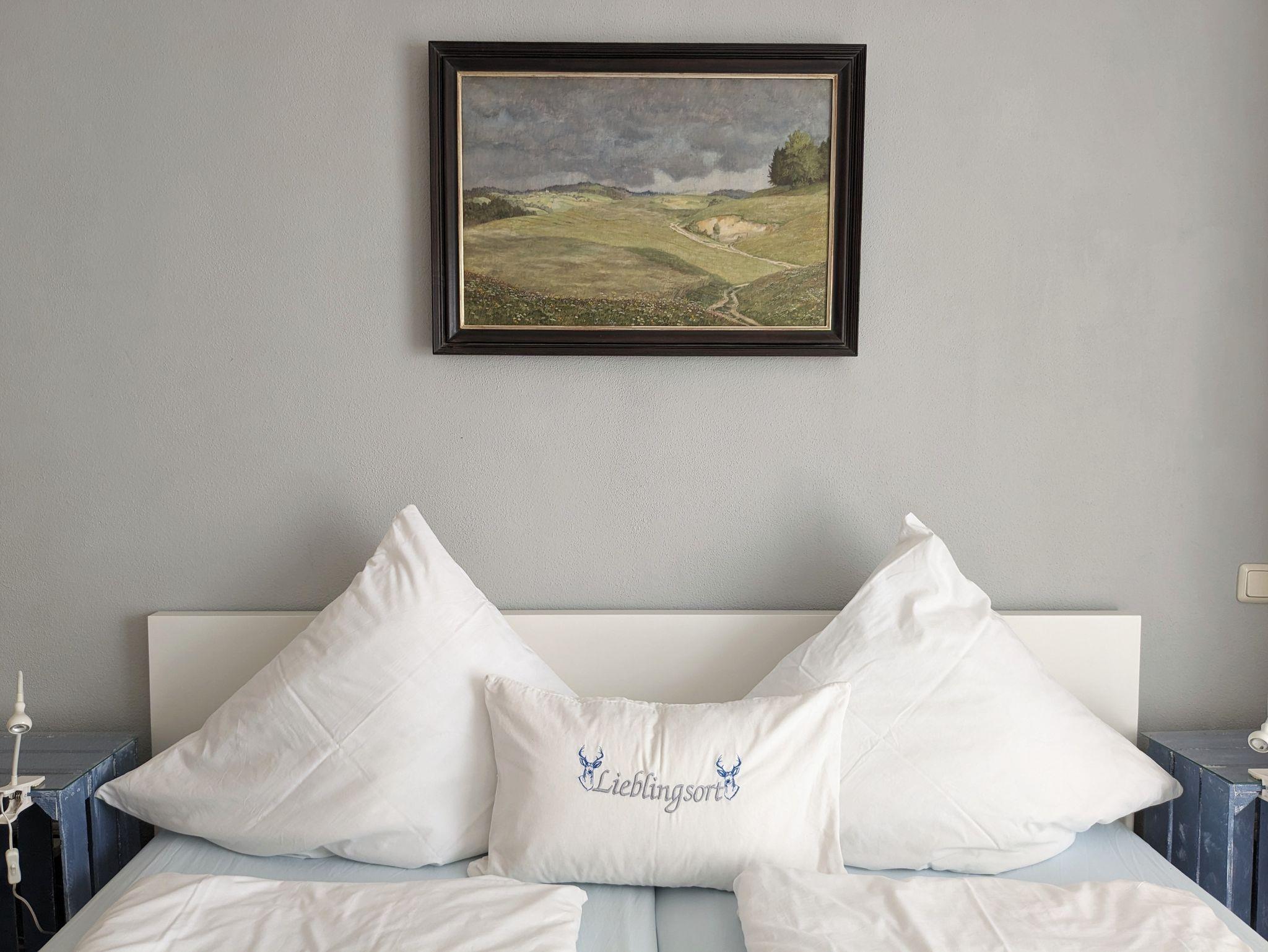 Unsere mit viel Liebe eingerichtete Ferienwohnung befindet sich im 1. Stock. Die Räume sind mit hochwertigem Echtholzparkett ausgestattet. Originalgemälde bekannter Chiemseemaler runden das geschmackvolle Ambiente ab.