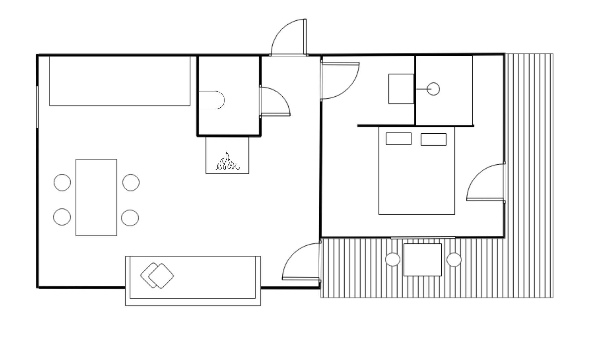 Die Ausstattung lässt keine Wünsche offen: Eine voll ausgestattete Küche mit Cerankochfeld, Backofen, Geschirrspüler und weiteren Annehmlichkeiten ermöglicht die Zubereitung Ihrer Lieblingsgerichte. Der Wohnbereich mit Kamin und Panoramafenstern schafft eine gemütliche Atmosphäre. Das Schlafzimmer verfügt über ein komfortables Doppelbett (1,60 x 2,00 m), das Badezimmer bietet eine erfrischende Regendusche und ein separates WC erhöht den Komfort.