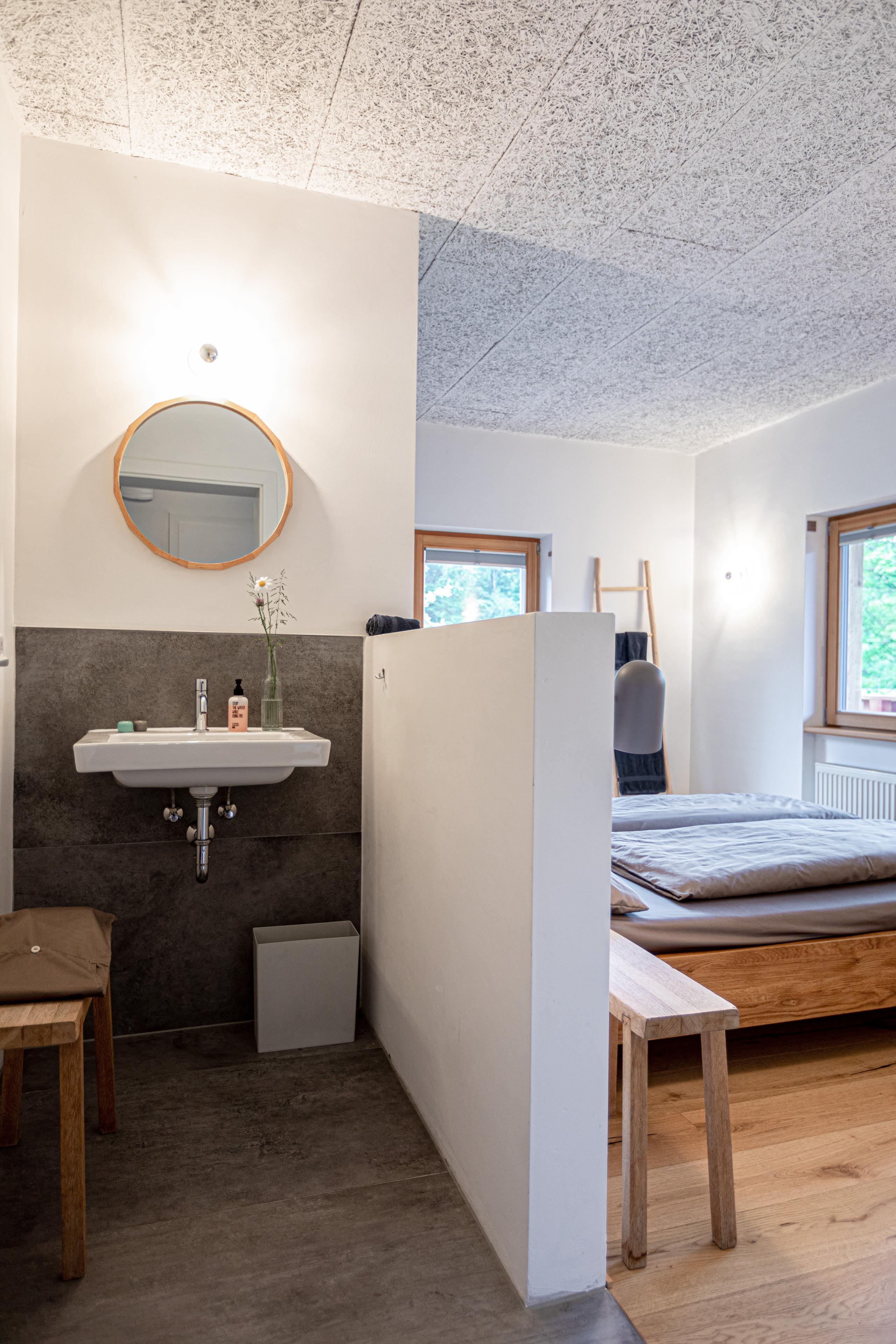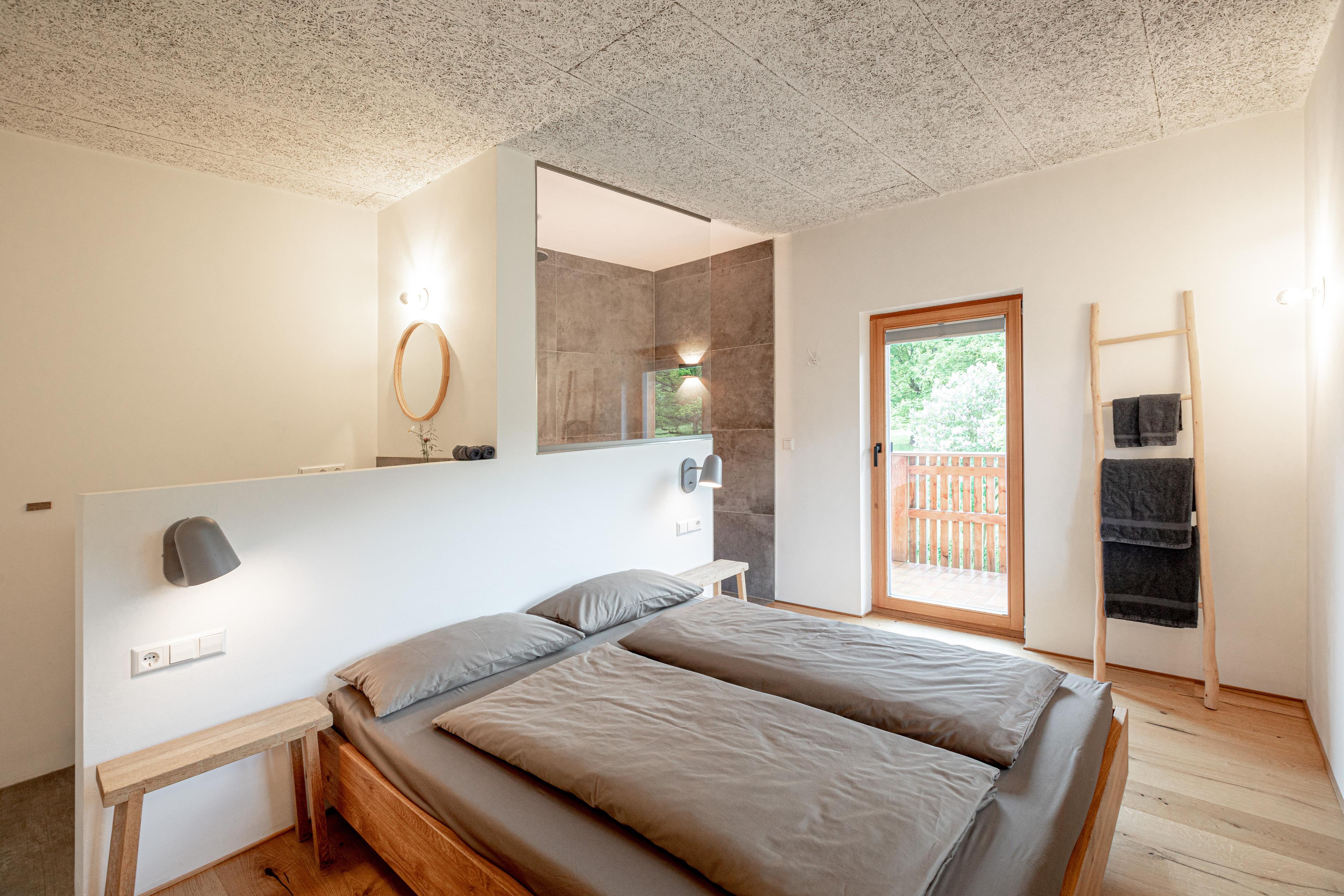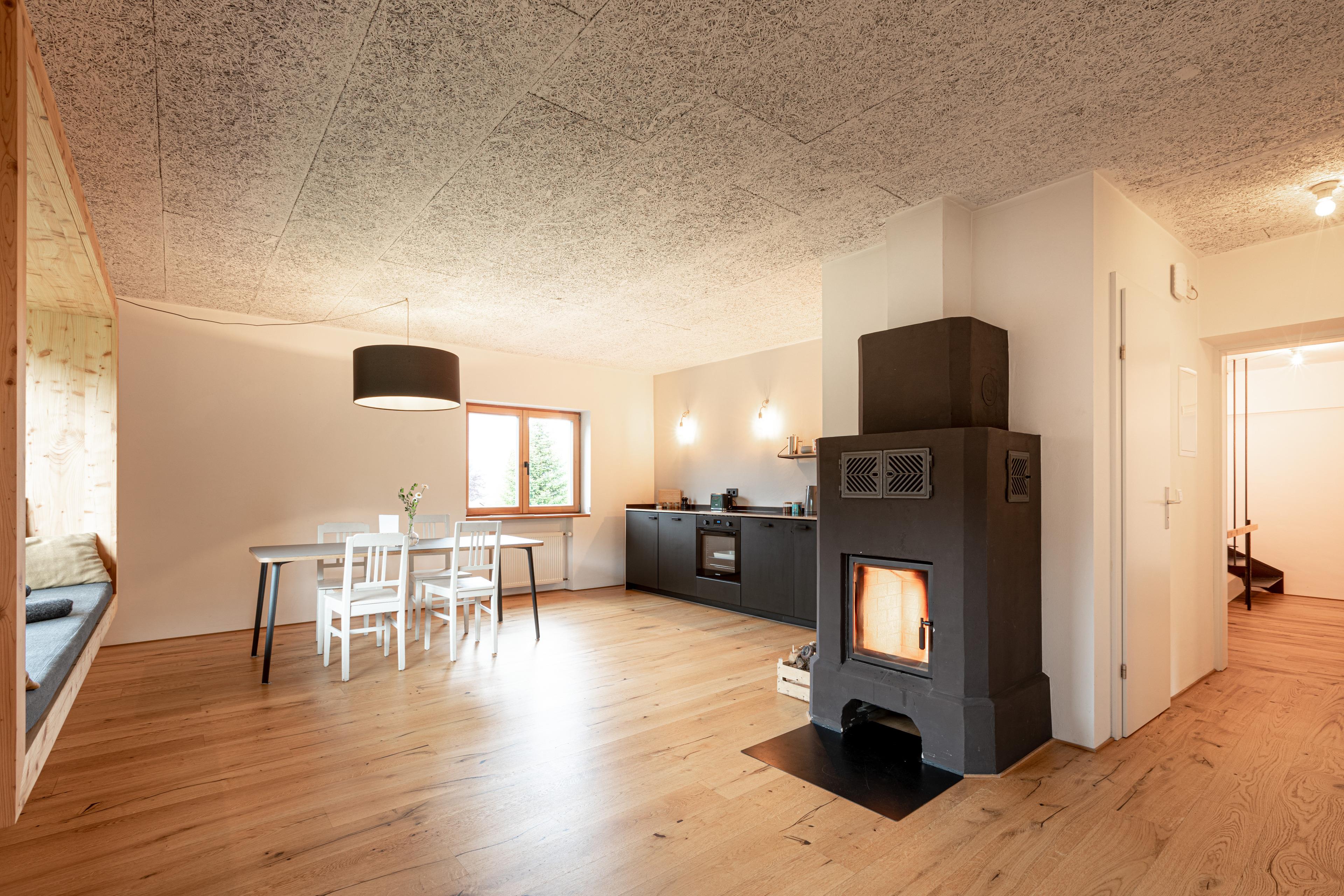 Nachhaltigkeit spielt eine zentrale Rolle: Die Wohnung wurde mit natürlichen Baustoffen saniert, beheizt wird sie mit einer Pelletheizung und Ökostrom. Die Außenanlage ist bienen- und insektenfreundlich gestaltet.