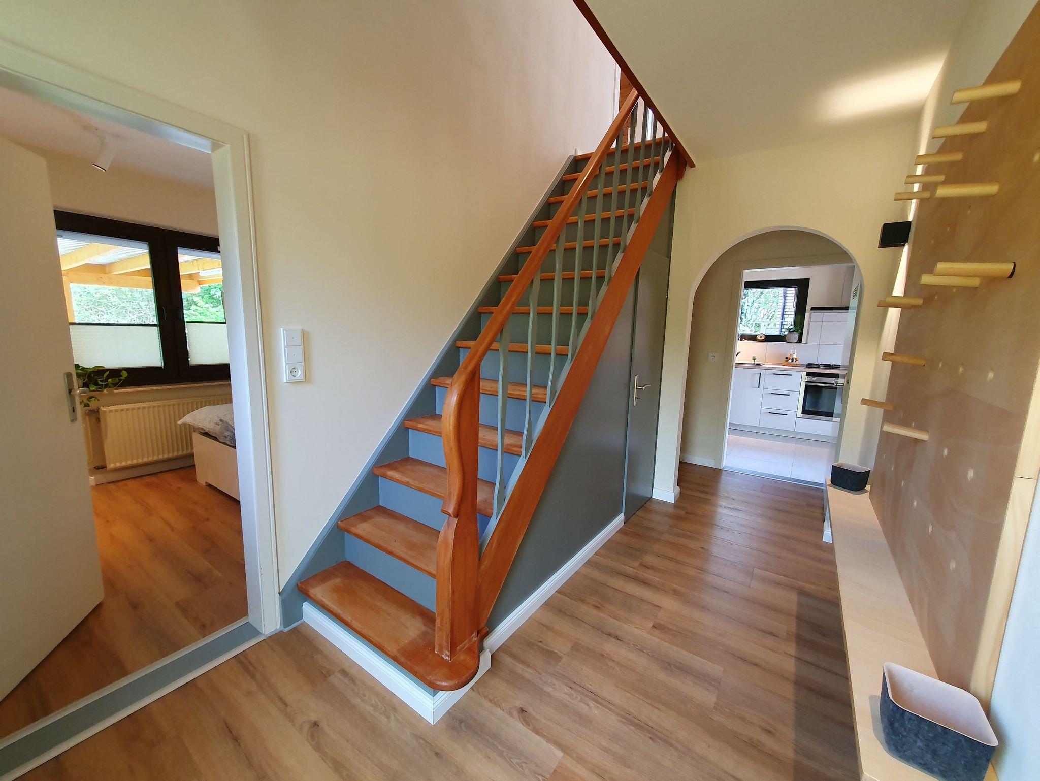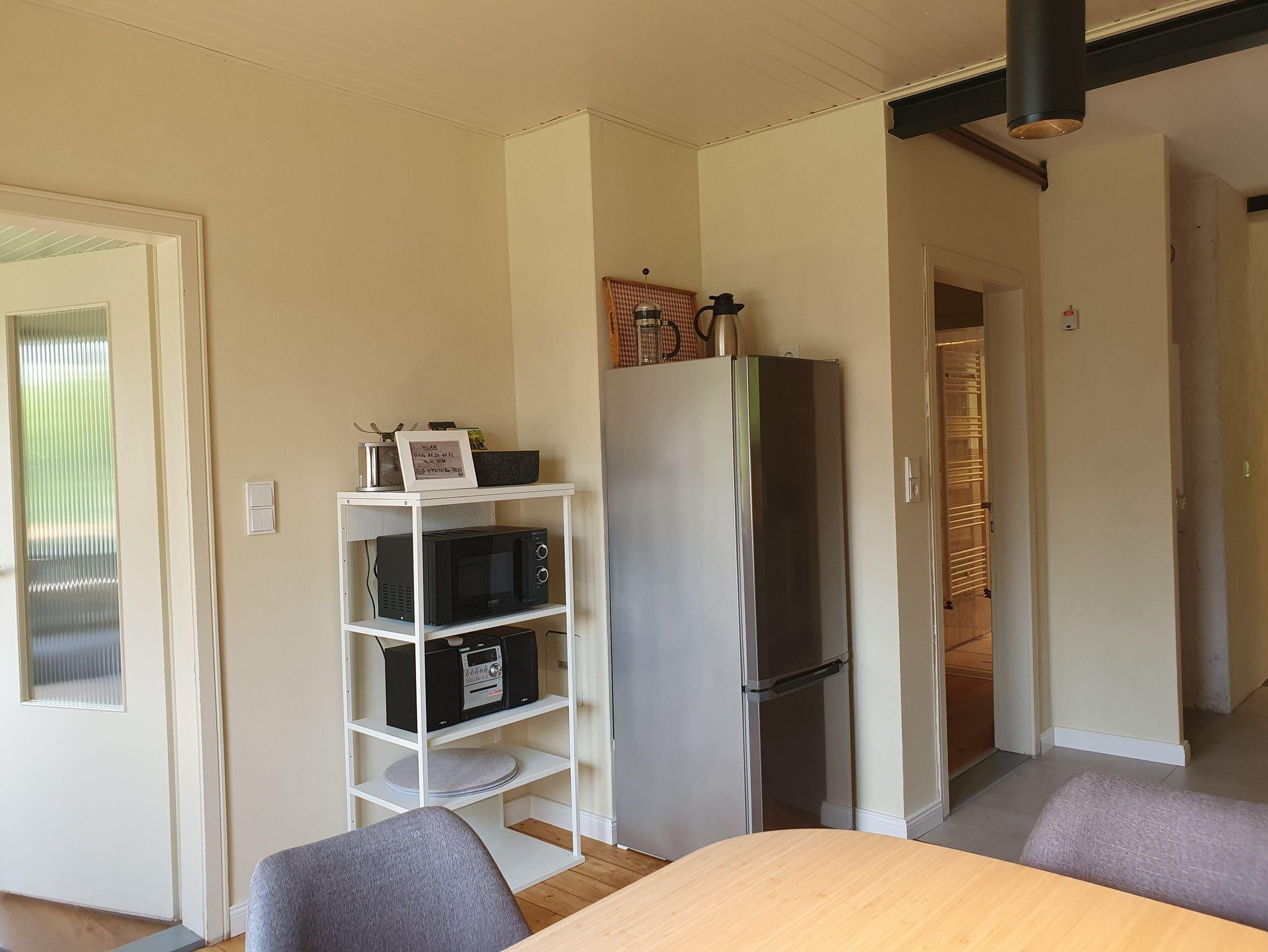 Zentral gelegenes, renoviertes Ferienhaus in Remels für 2-6 Personen. Am Nordgeorgsfehnkanal in beruhigter Straßefinden Sie das 100m² Ferienhaus mit Parkmöglichkeit und kleinem Garten. Vom Eingang gelangen Sie direkt in die offene,vollausgestattet Küche mit Geschirrspülmaschine, Backofen und Mikrowelle. Von der Küche gelangen Sie mit Flügeltürausgestattetes Wohnzimmer mit TV. Im Eingansbereich links befindet sich die Toilette.