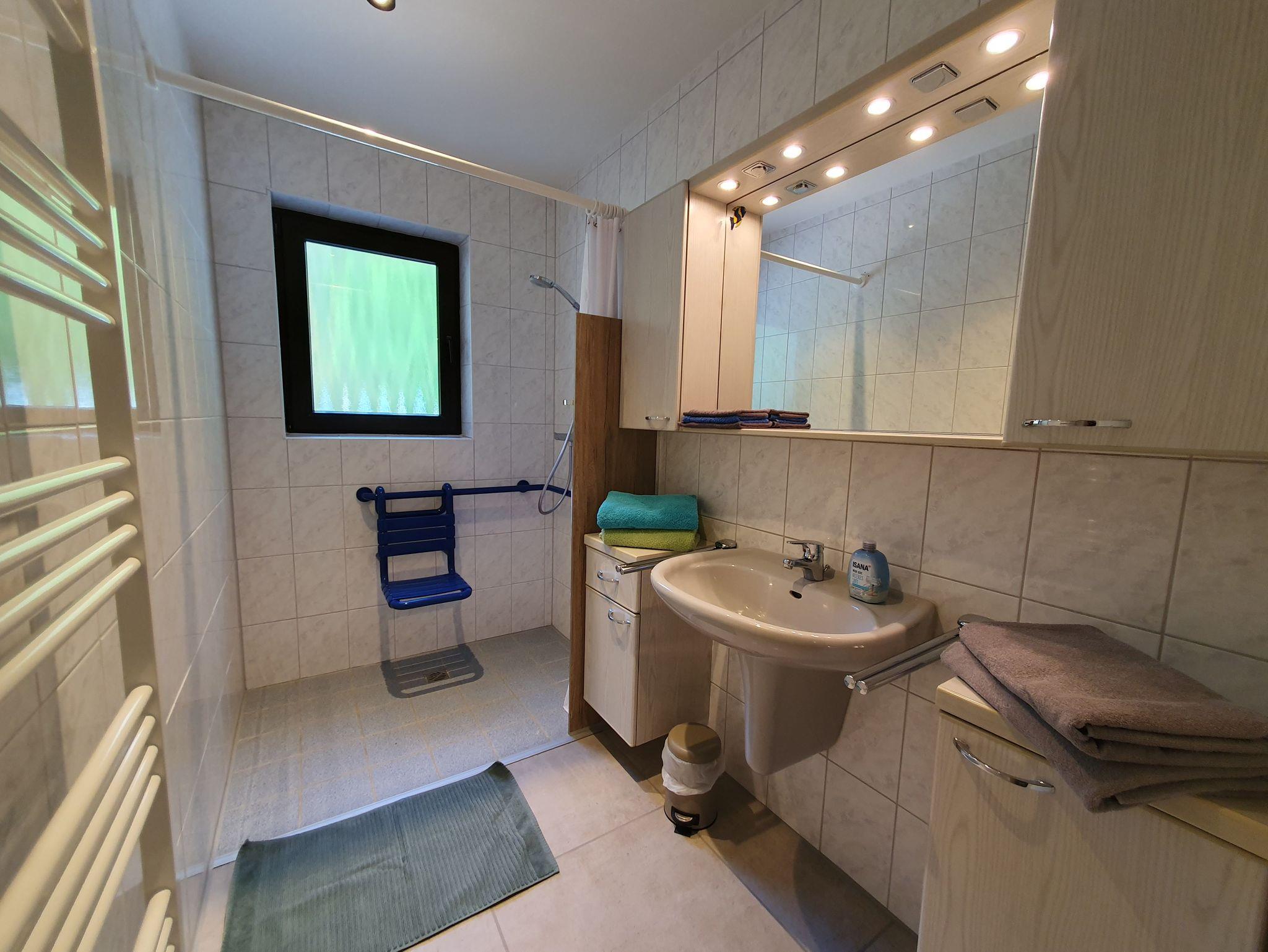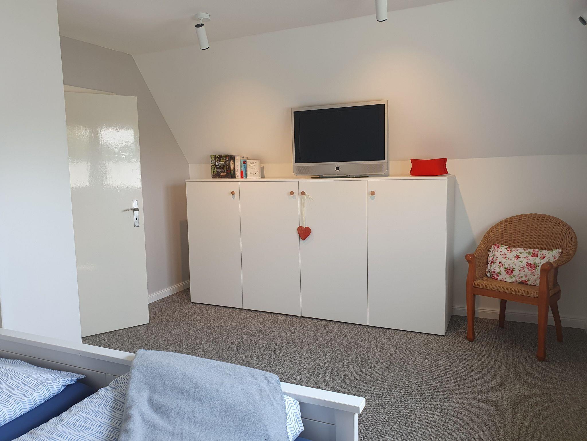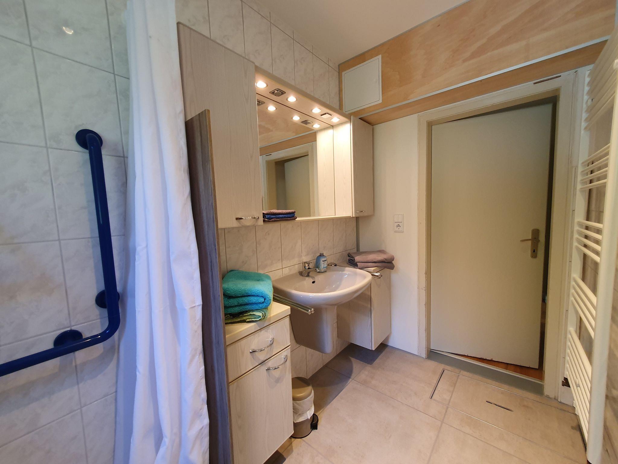 Das Ferienhaus verfügt über ein Badezimmer mit Dusche und Waschbecken und vier Schlafzimmer, die wie folgt augeteiltsind: ein Doppelzimmer mit 1,60x2,00 m Bett und TV im Erdgeschoss und drei Schlafzimmer mit Obergeschoss (einDoppelzimmer mit 1,80x2,00m Bett und TV, sowie zwei Einzelzimmer mit 0,90x2,00m Betten). Waschmaschine kanngenutzt werden. WLAN vorhanden.