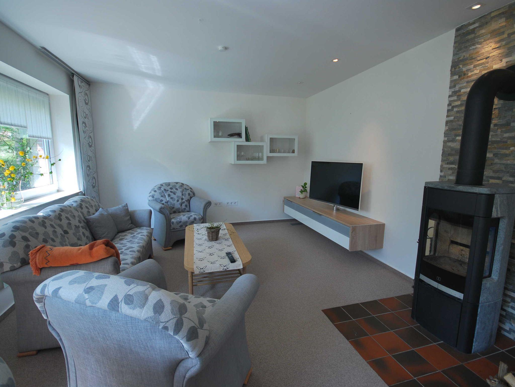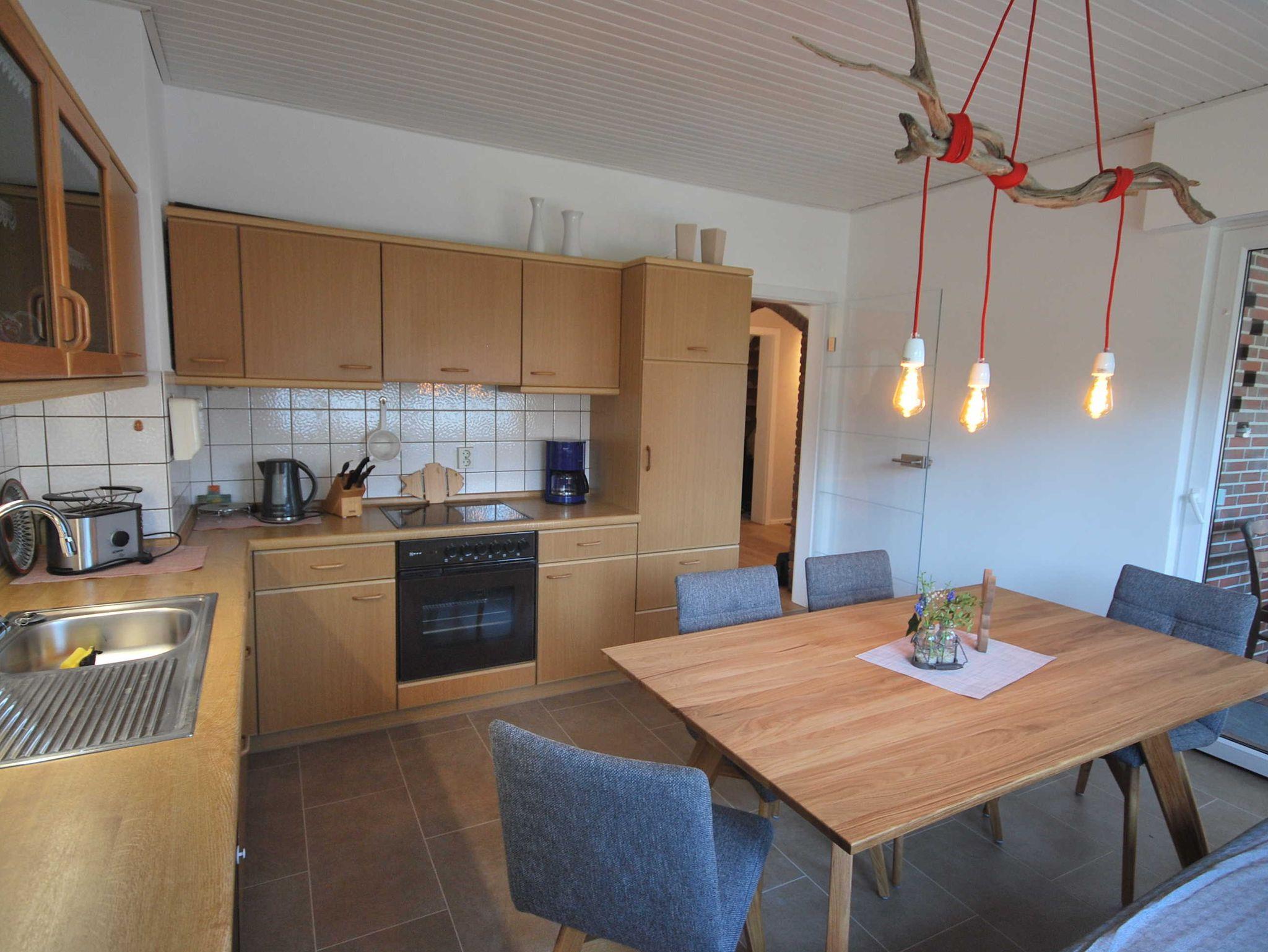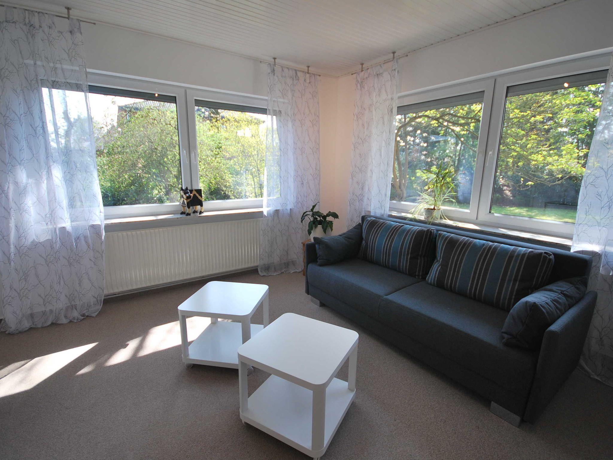 Wir begrüßen Sie in unserer mit viel Liebe zum Detail renovierten, lichtdurchfluteten 95m² Erdgeschosswohnung mitten inRemels. Die Wohnung ist barrierefrei und verfügt über einen separaten Eingang sowie einen großen Garten mitTerrasse.Schlafzimmer mit Doppelbett, Wohnzimmer mit Kamin, zweites kleineres Wohnzimmer mit Schlafcouch (welchesmit einer Schiebetür abgetrennt werden kann), komplett ausgestattete Küche mit Geschirrspülmaschine und Backofen,Bad mit Dusche und WC, separates WC, Hauswirtschaftsraum m. Waschmaschine + Trockner.