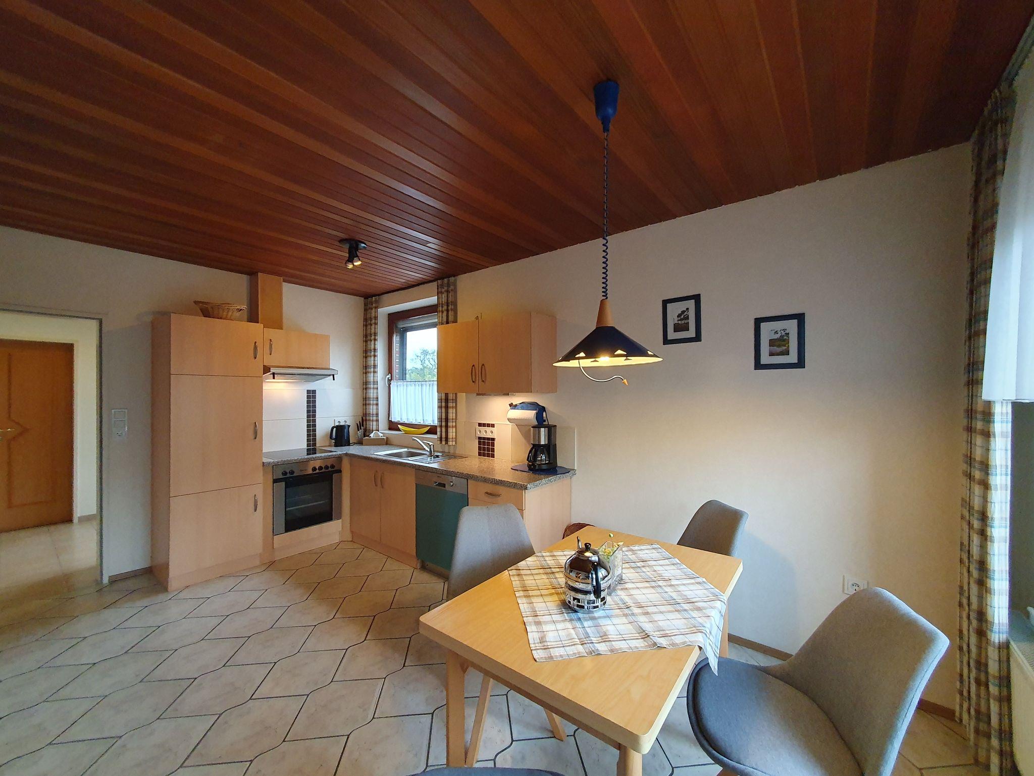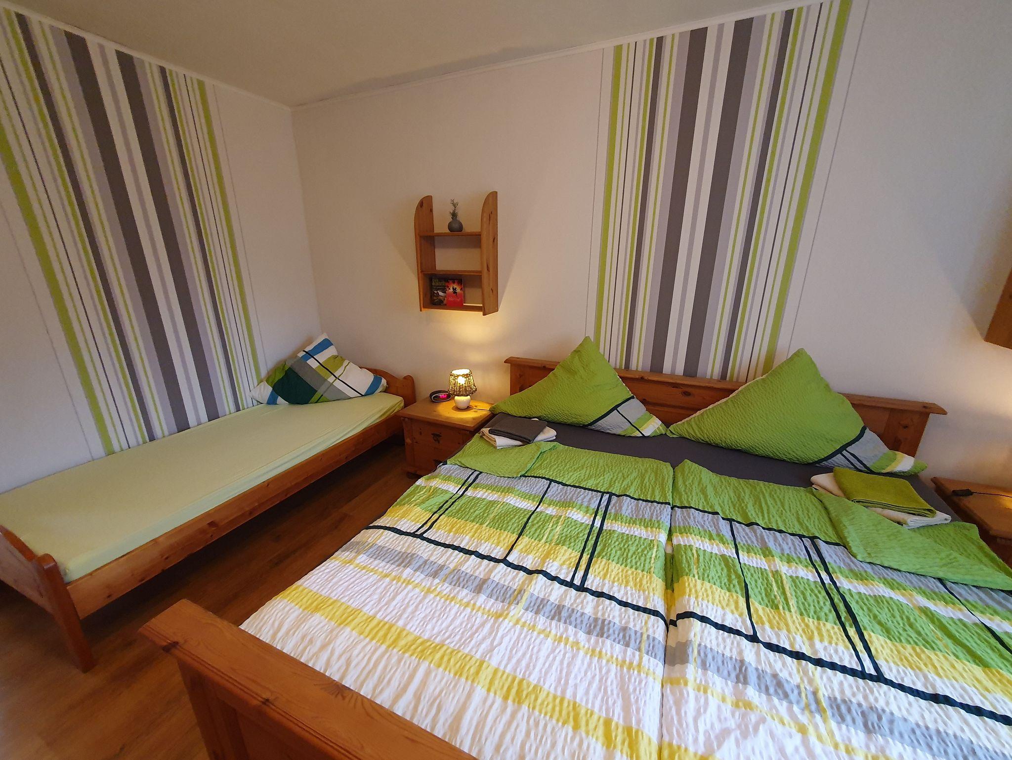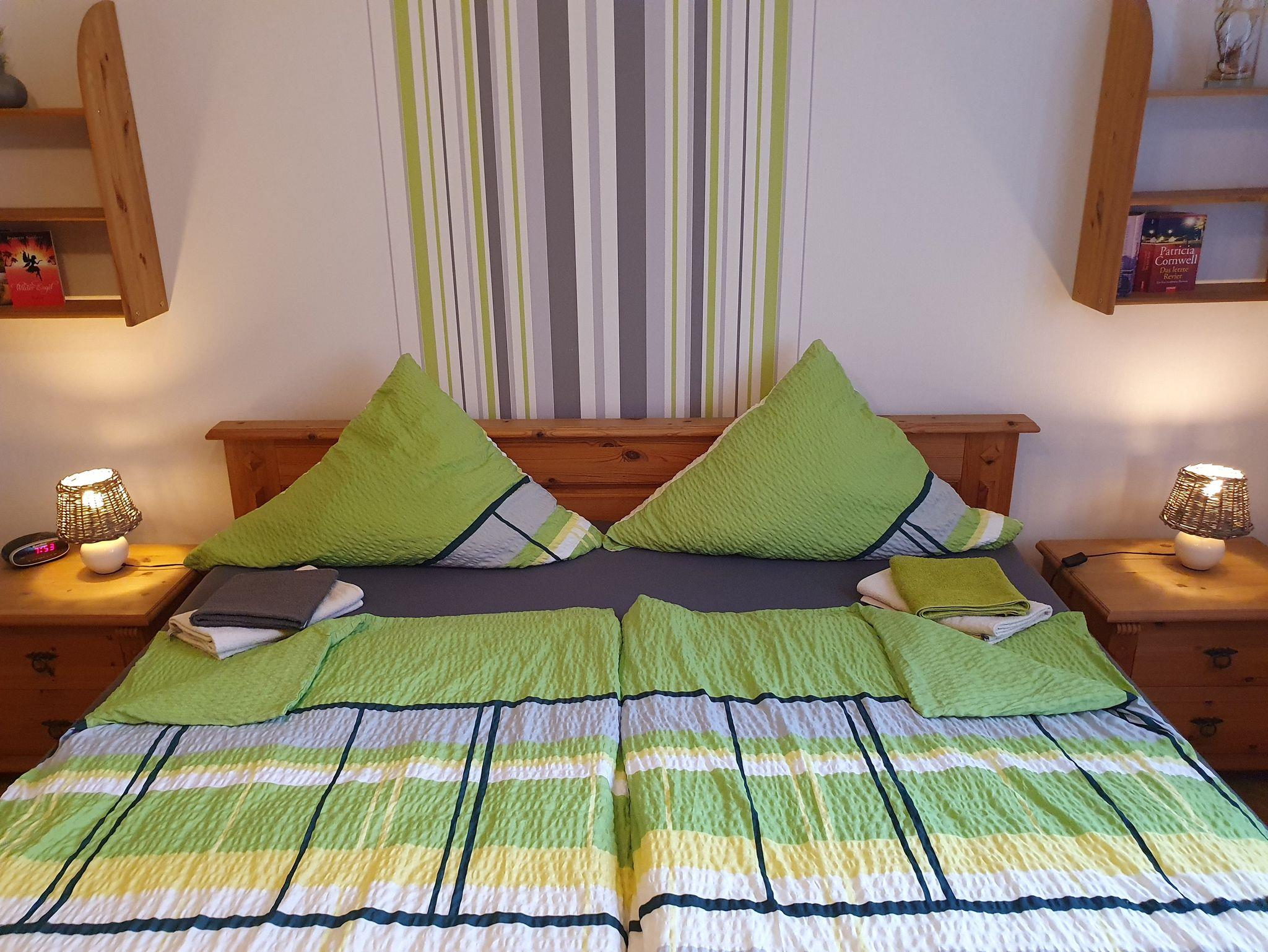 Die Unterkunft verfügt über eine separate vollausgestattete Küche, einem gemütlichen Wohnzimmer und einem Doppelzimmer mit einem zusätzlichen Einzelbett. Die Betten sind selbstverständlich bezogen. Zusätzliche Decken und Kissen sind auf Wunsch kostenfrei erhältlich. Ein modernes Bad mit Dusche und WC sowie einen Haartrockner steht Ihnen ebenfalls zur Verfügung. Bei einem längeren Aufenthalt steht Ihnen eine Waschmaschine zur Mitbenutzung zur Verfügung. Wir freuen uns auf Ihren Besuch.