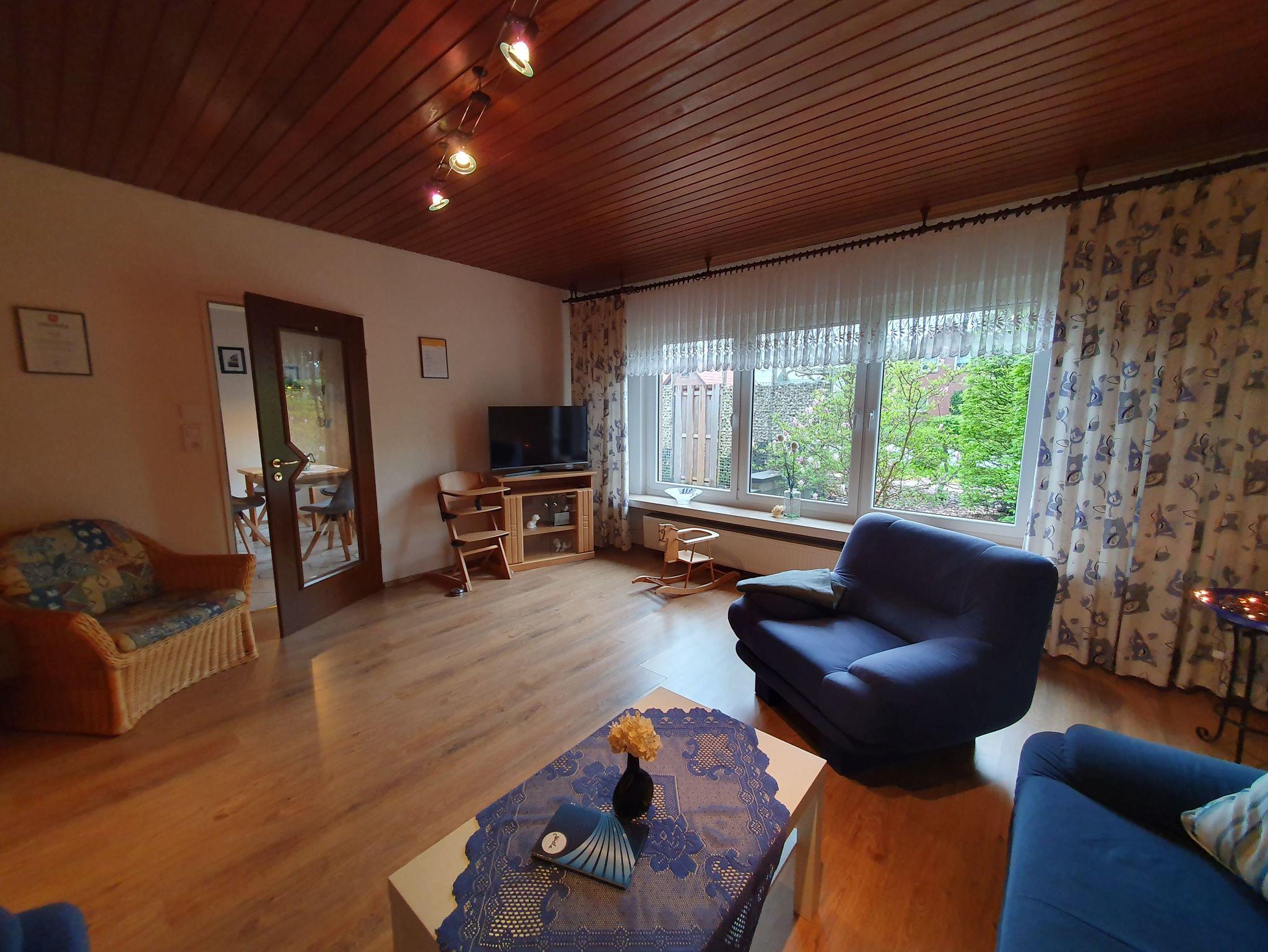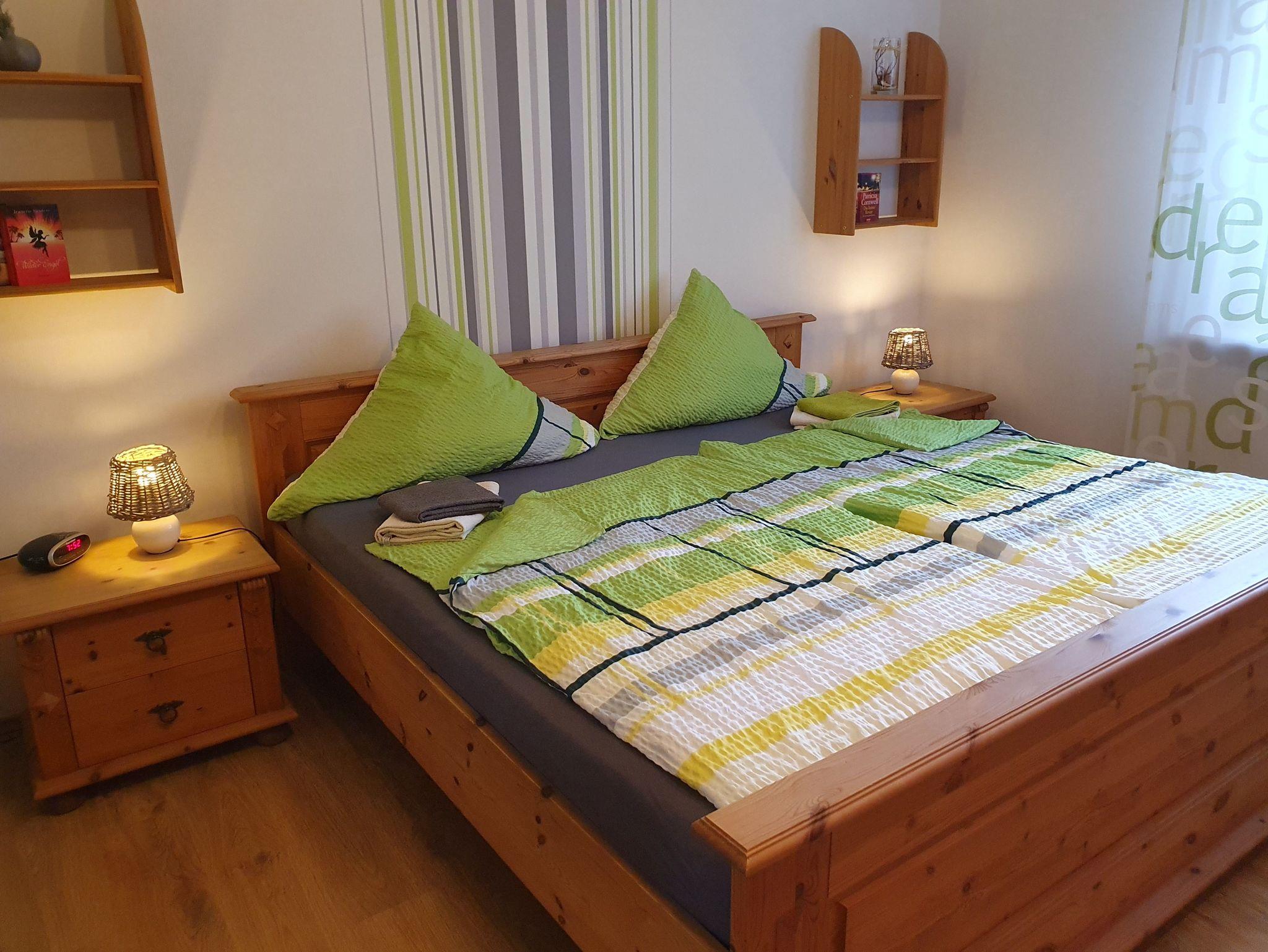 Gemütliche, ebenerdige Ferienwohnung für 2-4 Personen. Die Terrasse und ein Blockhaus laden im großen Garten zum Verweilen ein. Die Ferienwohnung verfügt selbstverständlich über einen separaten Eingang und Fahrräder können auf Wunsch ausgeliehen werden. Reinigungsservice während des Aufenthalts auf Anfrage möglich. Ein Hausprospekt ist vorhanden, sowie aktuelle Informationen über die Region und Veranstaltungen.