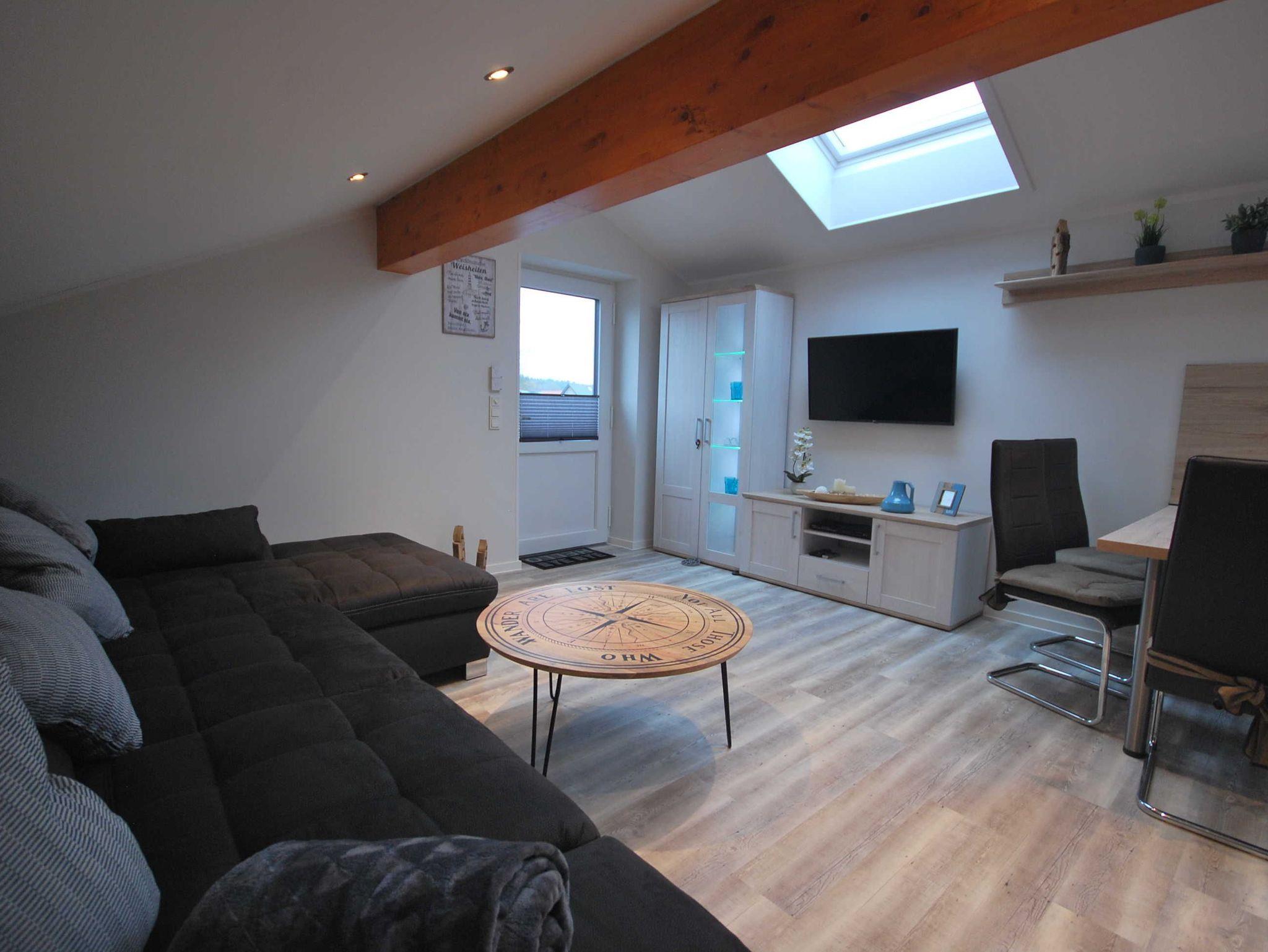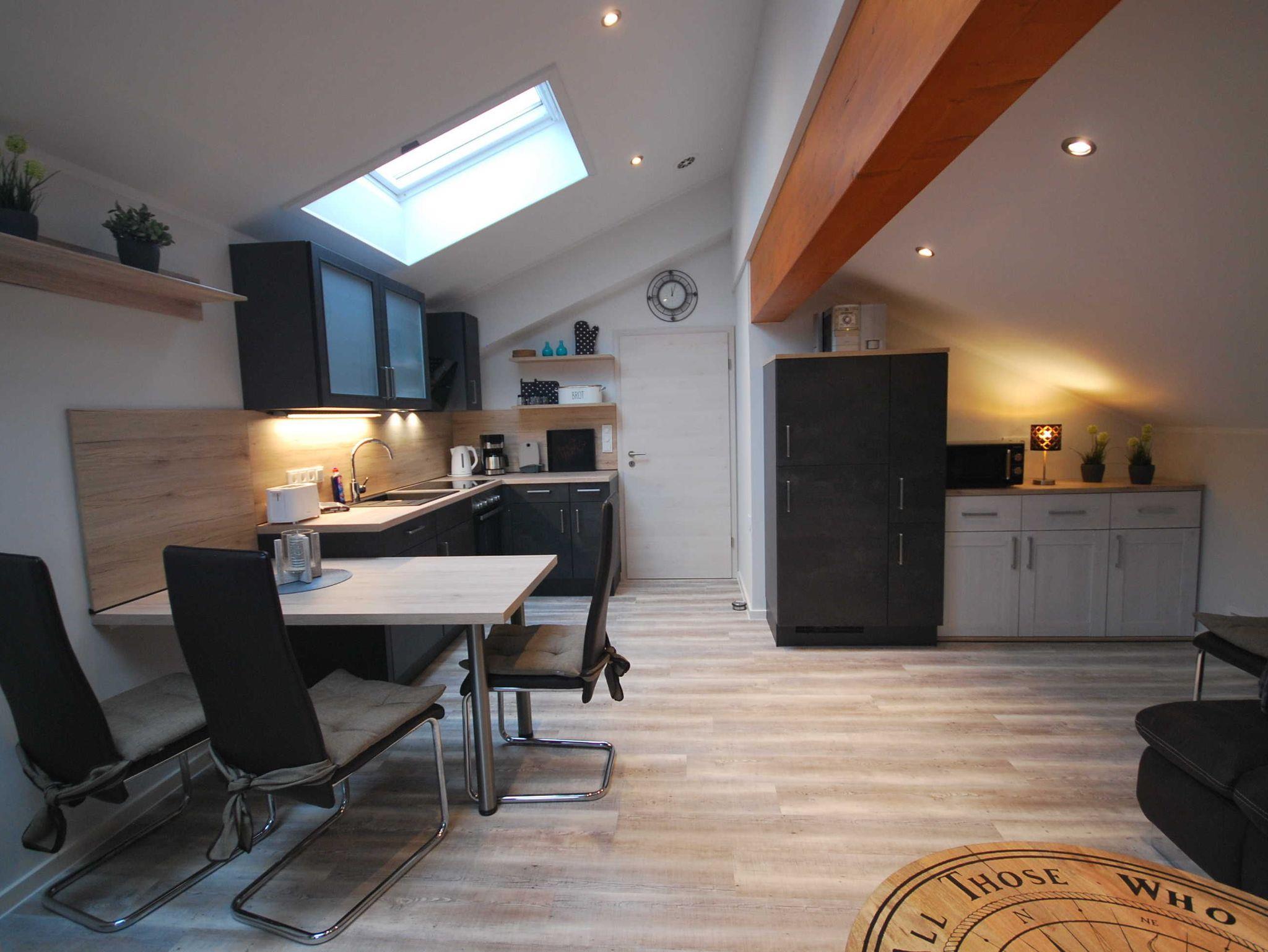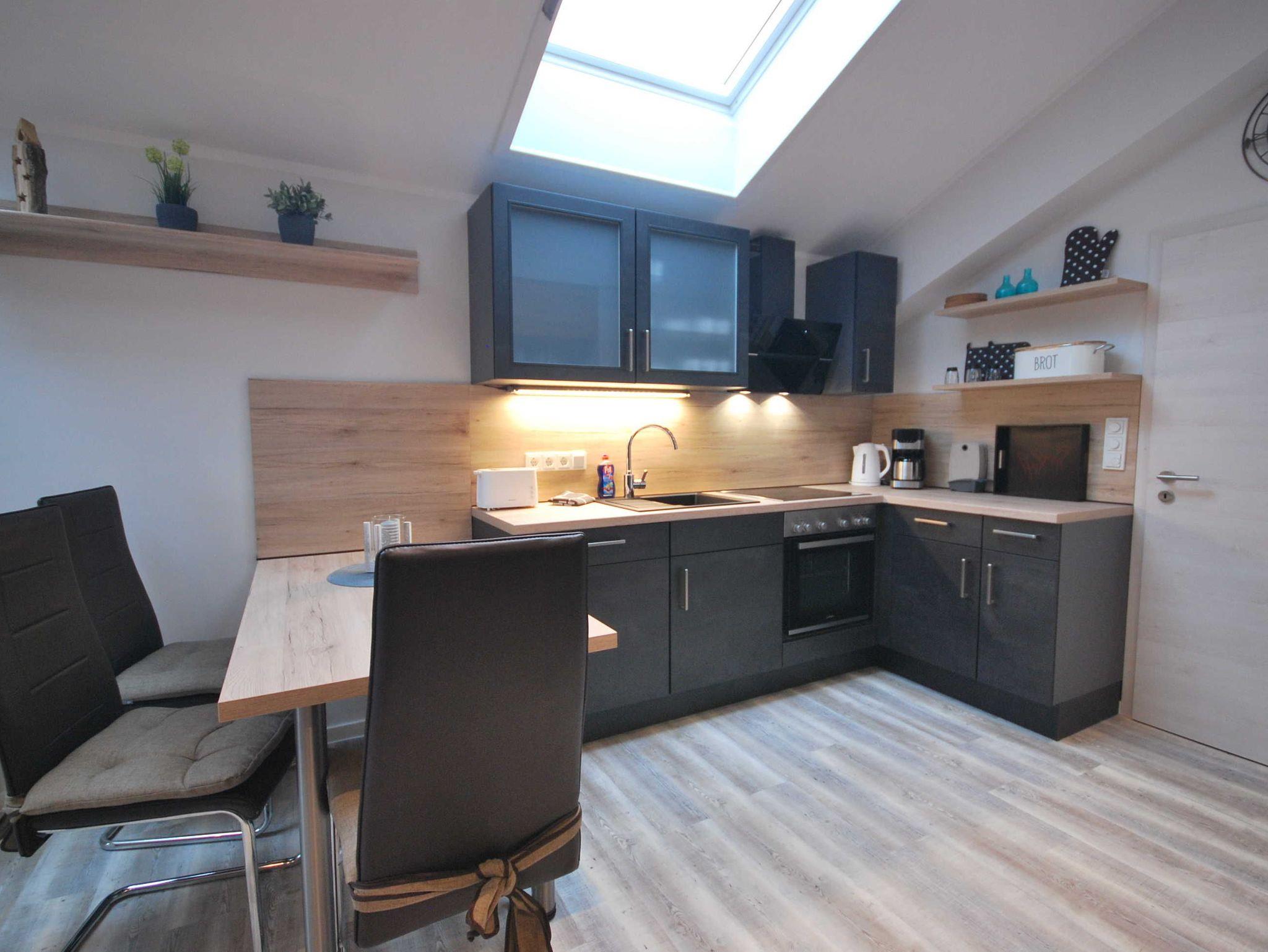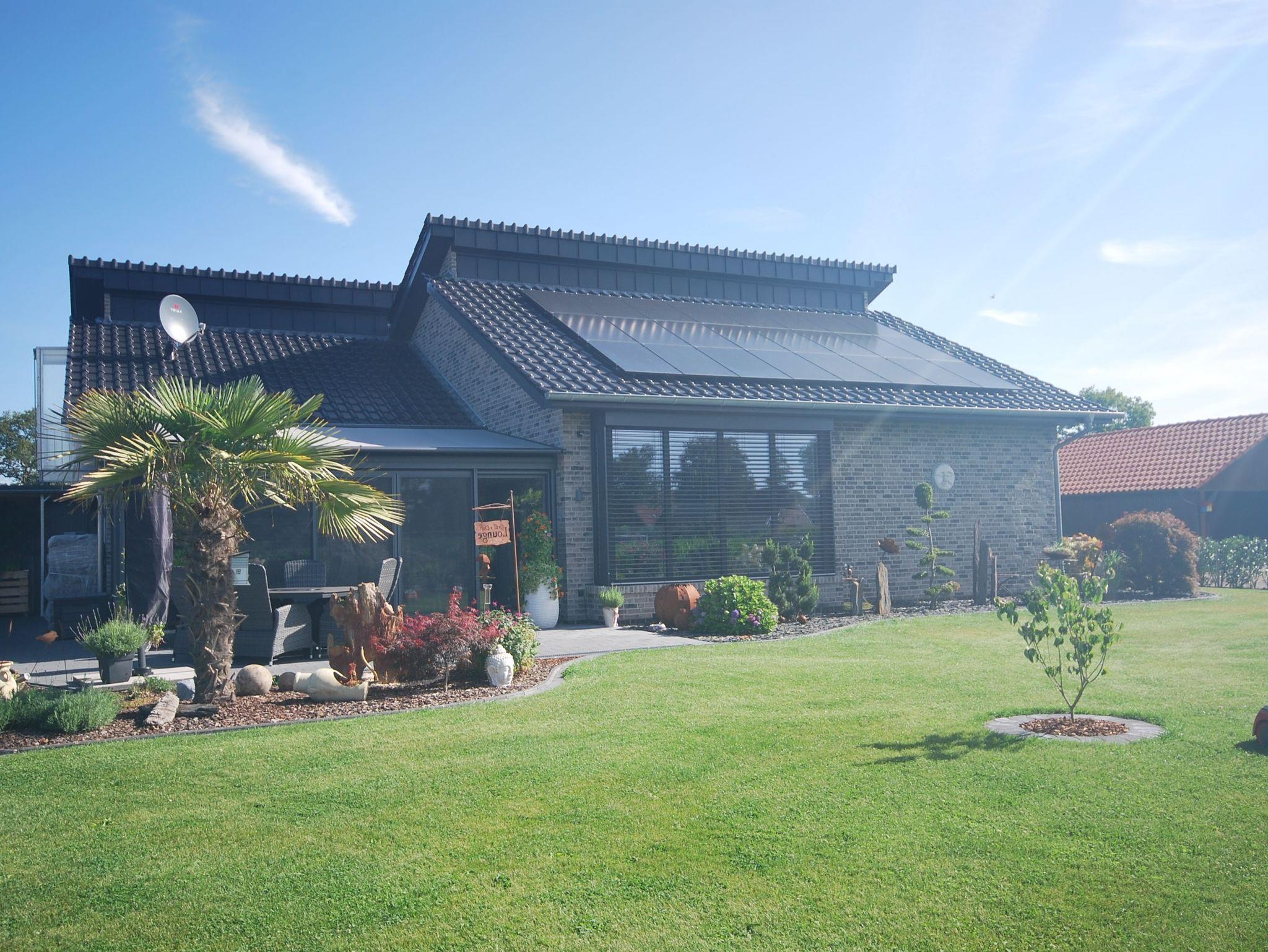 Ihre Ferienwohnung finden Sie im Obergeschoss eines modernen Neubaus mit separetem Eingang. Alle Räumlichkeiten sind mit Liebe zum Detail eingerichtet. Die voll ausgestattete Wohnküche verfügt zusätzlich über einen Geschirrspüler, Gefrierschrank und Mikrowelle. Den Wohnbereich zeichnet eine große Sofalandschaft mit Flachbild-TV aus. Durch den Flur mit Spielecke für Kinder gelangen Sie in die zwei komfortablen Schlafräume. Die Schlafzimmer sind jeweils mit gemütlichen Boxspringbetten (180 x 200 und 140 x 200), Nachtkommoden, Kleiderschränke und Flachbild-TV ausgestattet. Durch den Flur gelangen Sie auch zum modernes Badezimmer mit Dusche/WC. Zusätzlich finden Sie im Badezimmer eine Waschmaschine und einen Trockner.